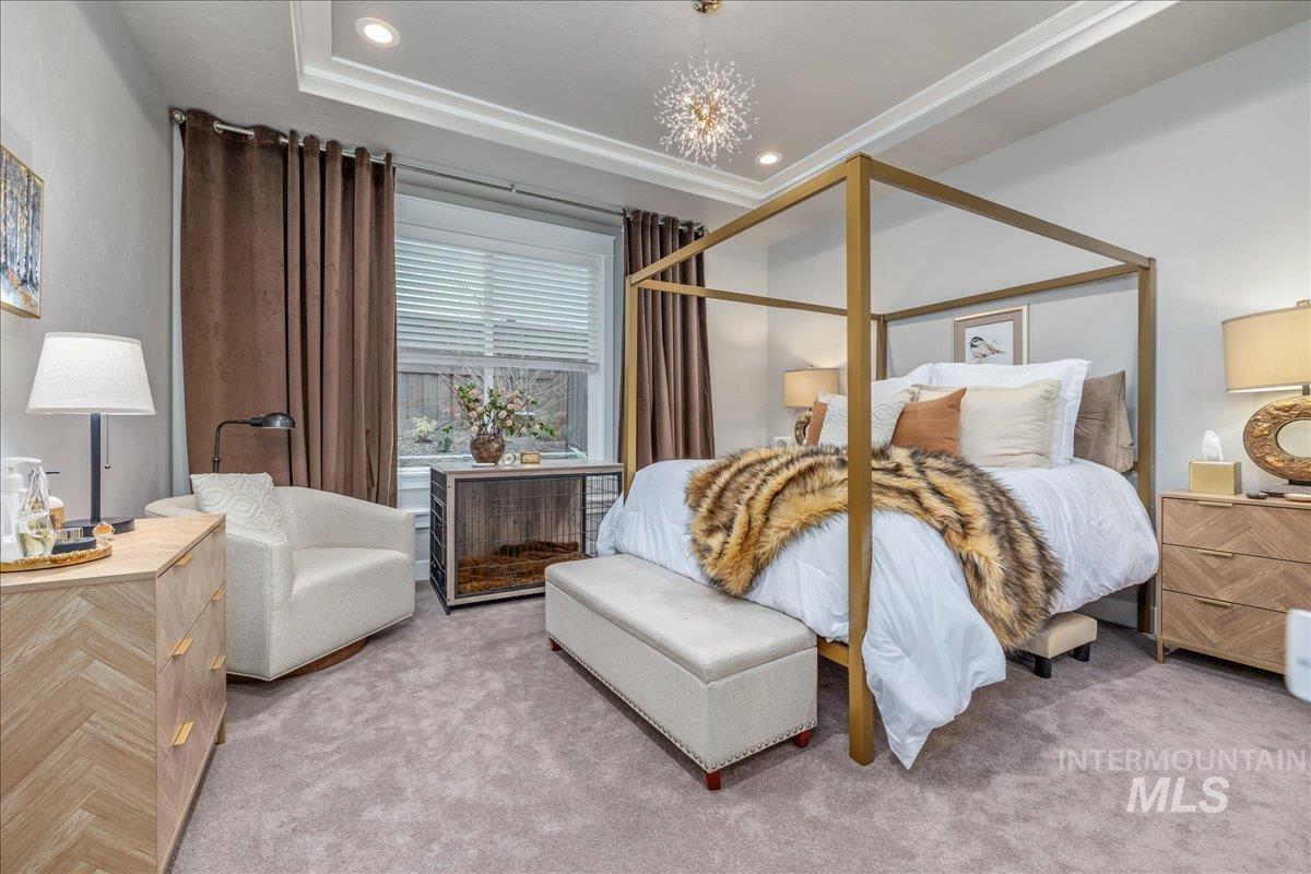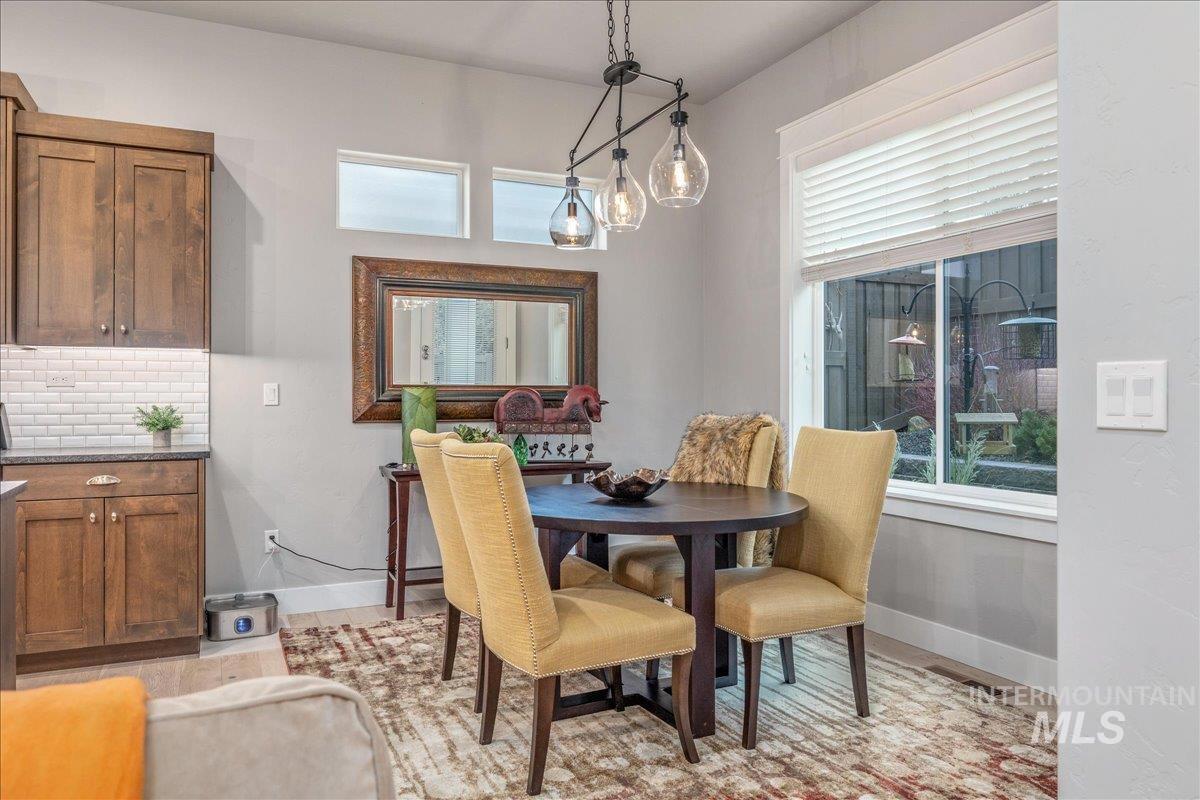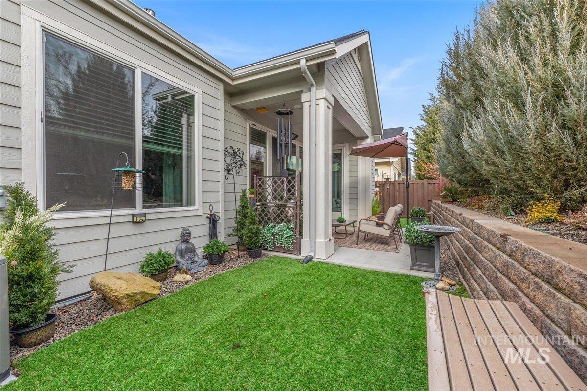 Wrap yourself in Luxury & Warmth in this One-Owner Single Level Cottage residing in Meridian`s Premier 55+ Gated Community, Cadence of Paramount. Built in 2020 and meticulously maintained, this inviting home offers an effortless lifestyle centered on comfort, connection, and ease. Light-filled living spaces are elevated by new Karastan carpet, custom built-in cabinetry with accent lighting, and a well-appointed kitchen featuring custom glass backsplashes (negotiable) with refrigerator included—ideal for everyday living or casual entertaining. Thoughtful details continue with washer and dryer included, pristine garage cabinetry, and a convenient dog door. Step outside to a private backyard finished with artificial turf, creating a peaceful space for morning coffee, gentle evenings, and low-maintenance enjoyment year-round. Cadence of Paramount encourages active, social living with walking paths, gazebos, pickleball and bocce ball courts, and welcoming gathering spaces. The community clubhouse enhances daily life with an indoor pool and spa, locker rooms, fitness equipment, group exercise room, sports TVs, pool table, tech office, gathering hall, and a patio with fireplace. Enjoy the gentle Cadence of living with low home maintenance with snow removal, yard & sprinkler maintenance provided, and make friends with organized community social activities. Luxury Ease in Cadence Living.