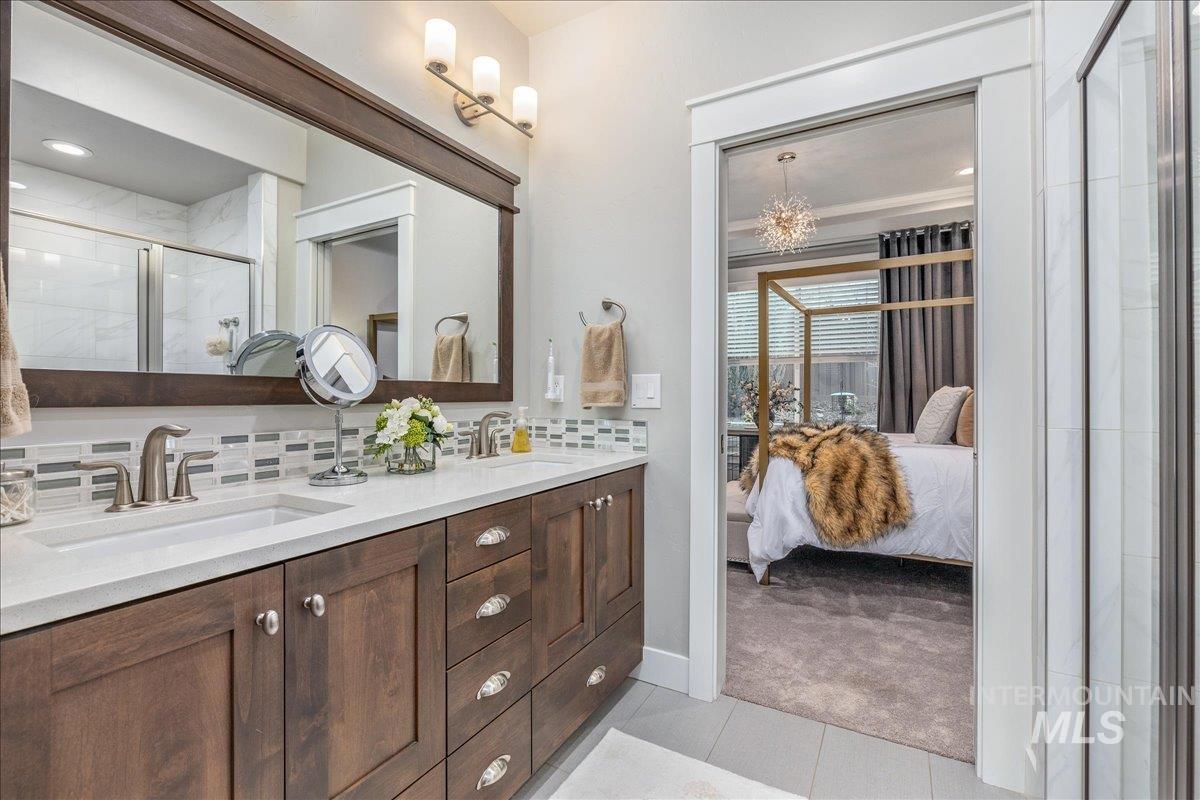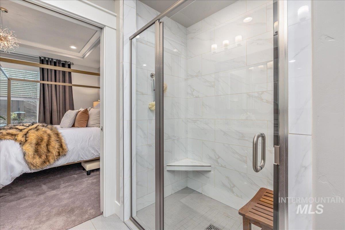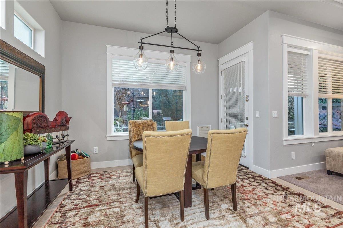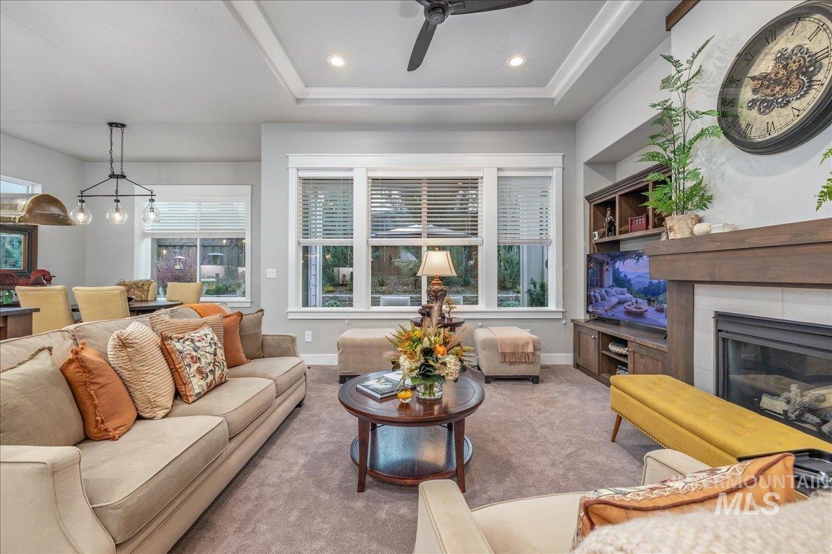Wrap yourself in Luxury & Warmth in this One-Owner Single Level Cottage residing in Meridian`s Premier 55+ Gated Community, Cadence of Paramount. Built in 2020 and meticulously maintained, this inviting home offers an effortless lifestyle centered on comfort, connection, and ease. Light-filled living spaces are elevated by new Karastan carpet, custom built-in cabinetry with accent lighting, and a well-appointed kitchen featuring custom glass backsplashes (negotiable) with refrigerator included—ideal for everyday living or casual entertaining. Thoughtful details continue with washer and dryer included, pristine garage cabinetry, and a convenient dog door. Step outside to a private backyard finished with artificial turf, creating a peaceful space for morning coffee, gentle evenings, and low-maintenance enjoyment year-round. Cadence of Paramount encourages active, social living with walking paths, gazebos, pickleball and bocce ball courts, and welcoming gathering spaces. The community clubhouse enhances daily life with an indoor pool and spa, locker rooms, fitness equipment, group exercise room, sports TVs, pool table, tech office, gathering hall, and a patio with fireplace. Enjoy the gentle Cadence of living with low home maintenance with snow removal, yard & sprinkler maintenance provided, and make friends with organized community social activities. Luxury Ease in Cadence Living.