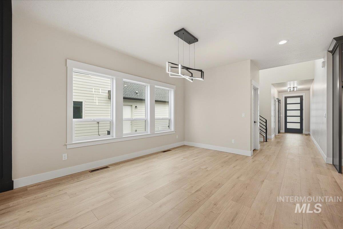 Built by Stetson Homes, a well-respected local builder, this home sits in one of Eagle’s most popular neighborhoods and really checks all the boxes. The community has awesome perks like a pool, clubhouse, walking paths, pickleball courts, and even a dog park. Inside, you’ll find 9-foot ceilings throughout and a 10-foot ceiling in the great room that makes the space feel extra open and bright. The layout is super functional with a loft, a big pantry, and an RV bay garage that gives you extra room for storage or toys. All three bedrooms have large closets, which is a great bonus. The backyard’s fully fenced, and no back neighbors! So it is truly move-in ready.