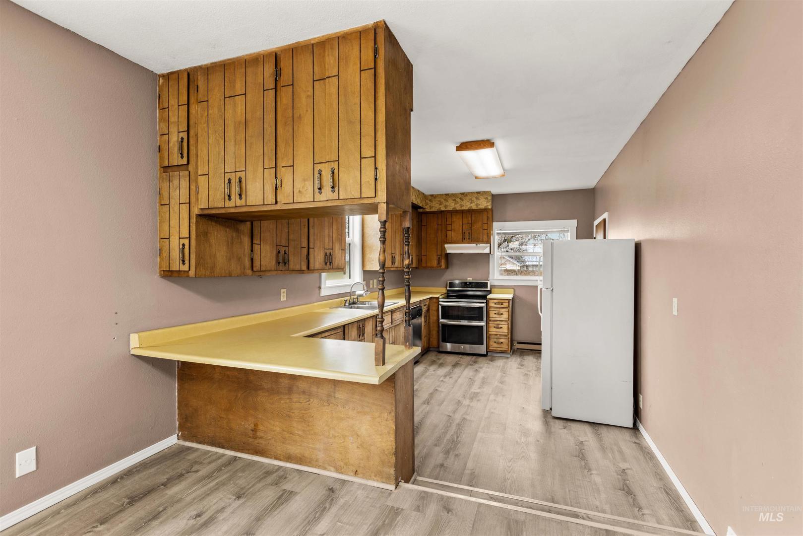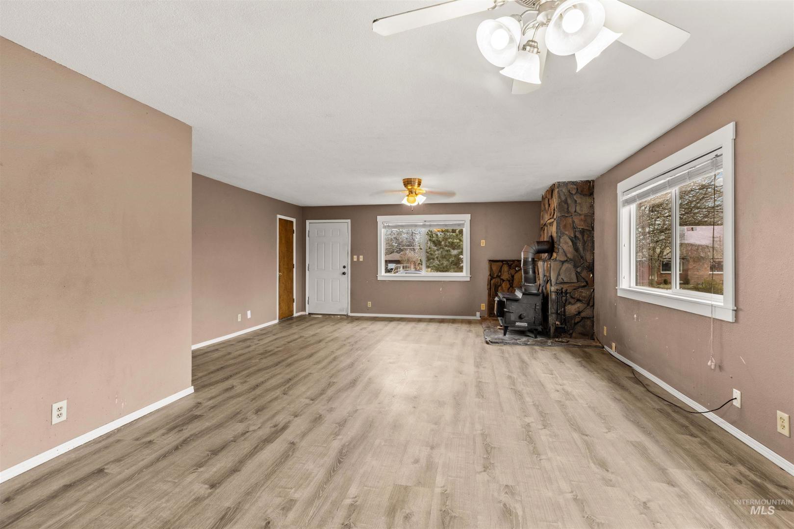 This Nampa duplex is a great investment property, or primary residence with an extra living space. The main floor of the duplex has 3 bedrooms, 2 full bathrooms, a full kitchen, dining area, and wood stove. The downstairs unit has separate access through the back of the property and has 2 bedrooms, 1 full bathroom, gas range, and large windows that let in lots of natural light. The exterior has brand new siding, there is luxury vinyl flooring throughout both units, brand new windows, and new steps to the front door. In the back of the property, you will find a fenced yard, 2 parking spaces and a detached 2 car garage with a spacious loft.