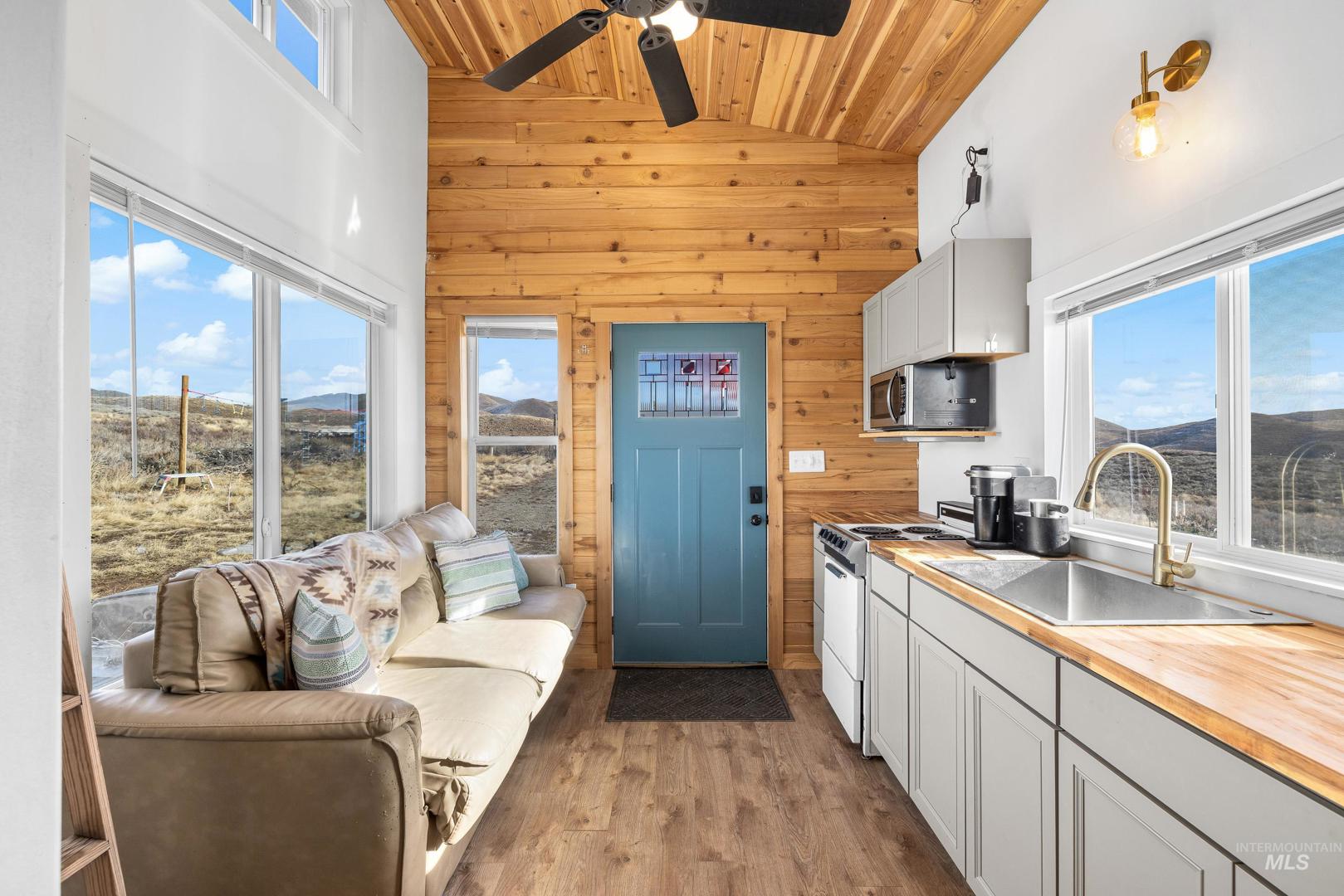 Absolutely stunning views of the surrounding area with the Camas Prairie below and snow capped Soldier Mountain behind. This property is the perfect get away from the daily grind and is set up for great memories on the weekend, or it’s ready for a dream home with septic already installed as well as water and power to the property! The “tiny home” is not a Tiny Home, but technically qualifies as a Utility Building and is permitted as such. Other amenities include both 30 Amp & 50 Amp hookup for RV, as well as water for RV and a cleanout on the septic for the RV sewer connection! As the photos indicate, there are great amenities already at the property for plenty of enjoyment and incredible opportunities for improvements!