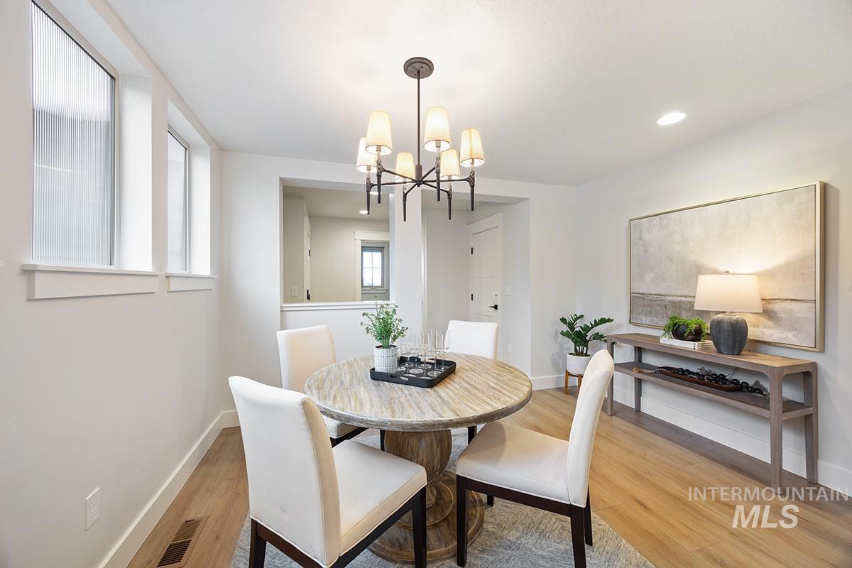 The BISBEE- 3-Car MODEL| Blackrock Homes. Enjoy COMMUNITY POOL, pickle ball courts, walking paths, community dog parks & playground. Located in the gated neighborhood: The District at Skybreak Estates w/private pickle ball court, dog park & private streets. Featuring elevated finishes; upgraded cabinets, Bosch appliances, upgraded lighting plumbing & flooring. Baths feature tile floors, tile showers & under mount sinks. Generous sized great room, kitchen & dining room perfect for entertaining. Private guest suite & 3rd bdrm or office space gives you everything you need and nothing you don`t. 3 car garage. Keyless door lock on front. INCLUDES FULL VINYL FENCING & FRONT & REAR YARD SPRINKLERS & LANDSCAPING. Just Blocks away from Discovery park. Easy access to YMCA, the interstate, Meridian, shopping, dining, & entertainment.