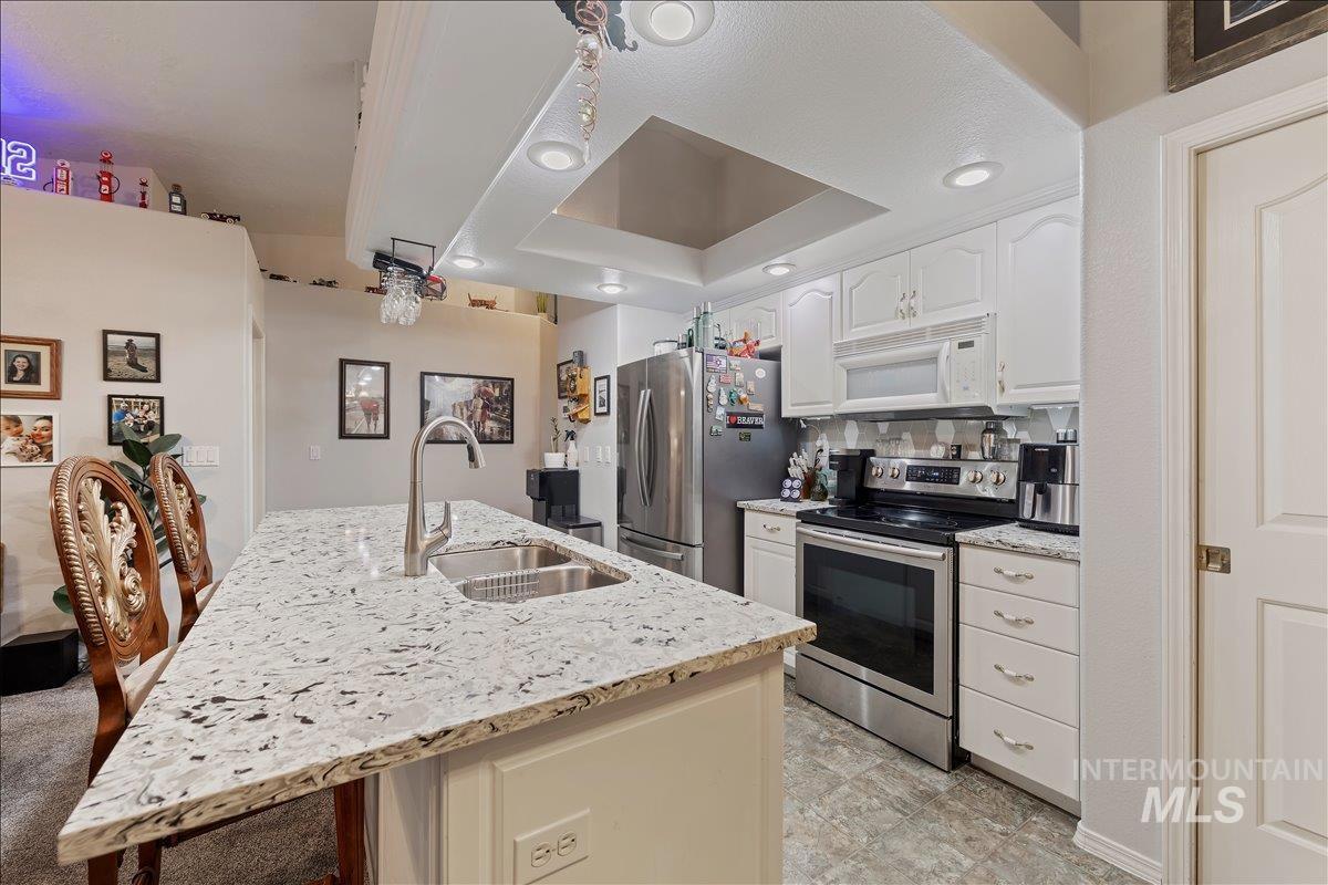Charming Creekside Townhome in Wilson Creek Subdivision Location: Nampa, Idaho | Subdivision: Wilson Creek | Access: Direct Nampa Greenbelt Access Property Overview Experience pride of ownership in this meticulously maintained townhouse located in the highly sought-after Wilson Creek Subdivision. Positioned just off the Nampa Greenbelt, this home offers a unique blend of suburban comfort and nature-rich living. Key Interior Features Living Spaces: Features versatile separate living and family rooms; the front living area is spacious enough to accommodate a formal dining set. Galley Kitchen: Efficient design with a cozy breakfast nook, tiled countertops, and a convenient half-bath located nearby. Primary Suite: A large main-level primary bedroom complete with a spacious ensuite bathroom, walk-in closet, and an oversized walk-in shower. Upper Level Guest Suite: The second floor provides an ideal guest retreat with a large private bedroom and a full separate bathroom. Modern Upgrades: Enjoy updated flooring throughout and a new HVAC system installed in 2016. Included Appliances: A high-quality washer and dryer set is included with the home. Outdoor Living & Storage Creekside Patio: The family room opens to a covered patio where you can enjoy the sounds of the rushing creek and views of local woodland wildlife and the active Greenbelt. Garage & Storage: Includes a large attac