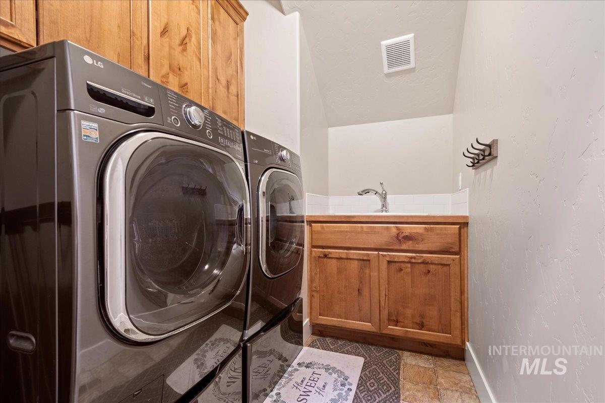 This stunning move-in ready home puts you right where you want to be—close to everything while offering incredible features you won`t find elsewhere. The kitchen is a chef`s dream with custom cabinetry, a huge walk-in pantry, spacious island, farmhouse sink, and a pot filler faucet. Premium upgraded carpet with extra padding creates a cozy feel throughout. The primary suite includes his & her walk-in closets for all your storage needs. HERE`S WHERE IT REALLY GETS GOOD: you get a two-car garage PLUS a massive fully insulated and heated RV garage with loft storage, 220V power, and pass-through access to the backyard. Store your toys, run a workshop, or pursue hobbies in comfort year-round! The fully-fenced backyard features a large 10x20 covered patio perfect for BBQs and entertaining, plus it`s pre-plumbed and ready for your hot tub. And the best part? The community pool is right across the street for easy summer fun and year-round relaxation. This home truly has it all—premium features, flexible space, and an amazing location. It`s ready for you to move in and start making memories!