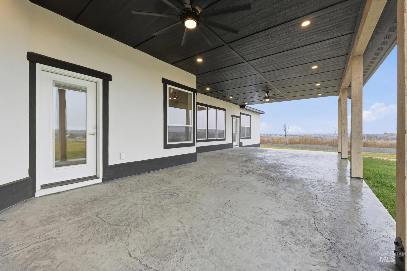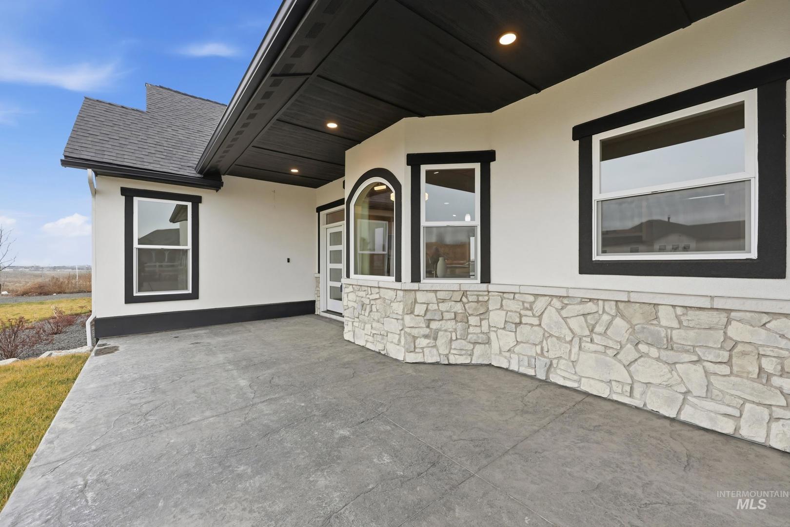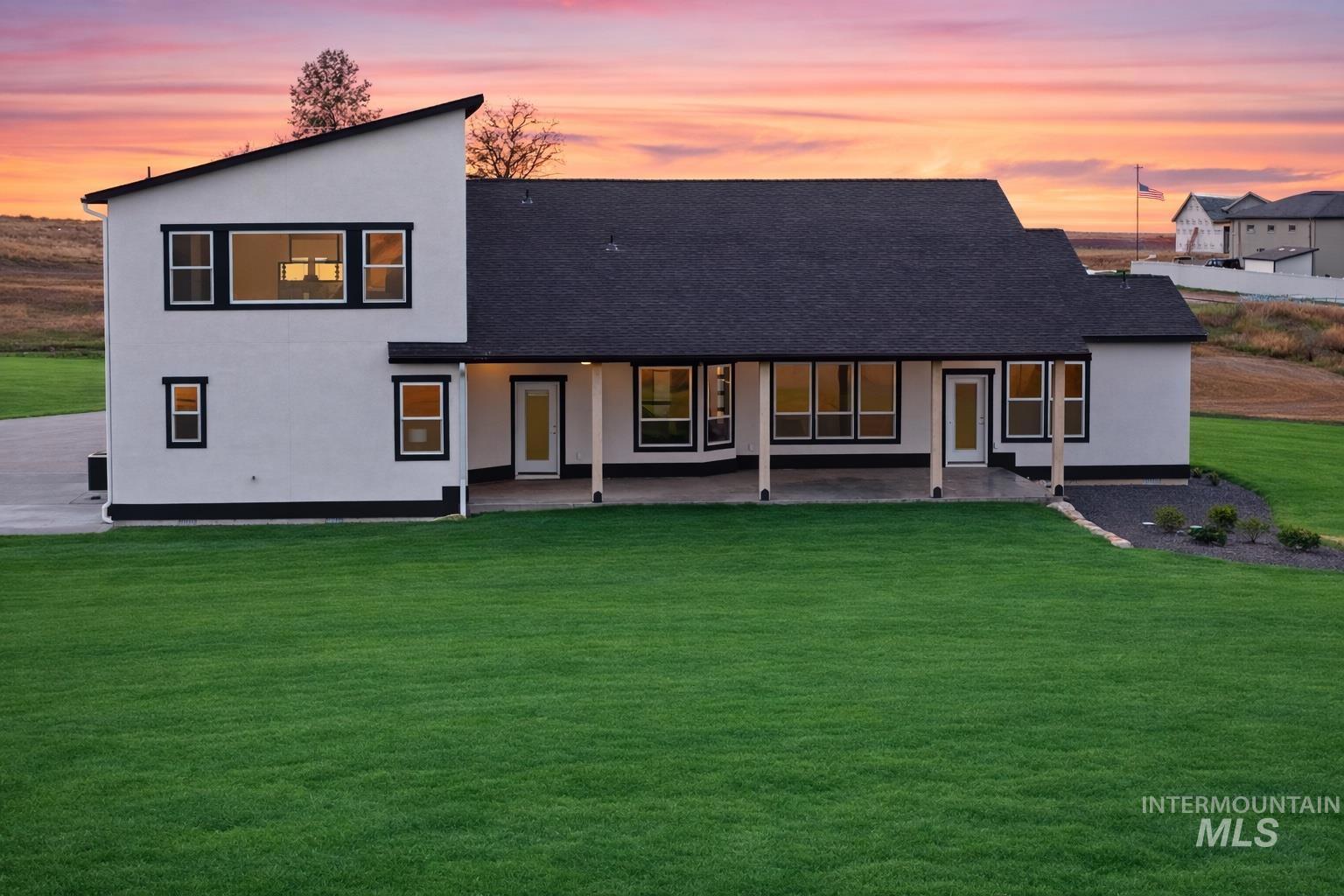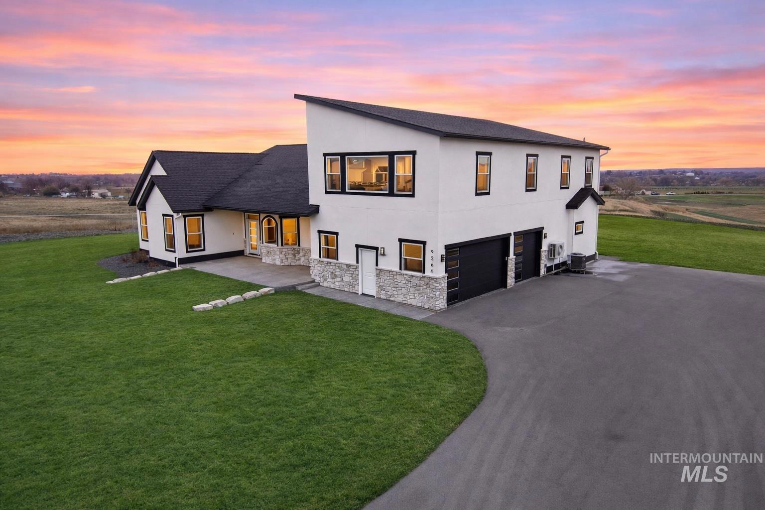 Live the country-luxury dream in this stunning custom new construction by Mountain Creek Builders Inc., perfectly positioned on 1.1 acres at the end of a quiet cul-de-sac with sweeping views of the Owyhee Mountains and South Butte. Designed for both comfort and entertaining, this 3,793 sq ft home offers 10’+ ceilings, a gourmet kitchen with granite countertops, Thermador appliances, oversized pantry, wet bar, and thoughtful finishes throughout. All bedrooms are on the main level, including two primary suites plus two guest rooms. Upstairs, enjoy a 1,298 sq ft bonus/office/recreation space with mini-split climate control, ideal for work, play, or guests. Outdoor living shines with stamped concrete patios, fully landscaped grounds featuring a water fountain, boulders, and over 30 mature trees and shrubs, with room for a shop and a pool. The oversized 3-car garage features 12’ ceilings and side-mount motors, plus a large paved driveway with RV parking. Property includes well, sewer, irrigation, and is pre-wired for Starlink. Builder is able to construct a shop or RV garage if desired. Best lot on the street. A rare opportunity to enjoy modern luxury with true rural freedom, without sacrificing convenience.
