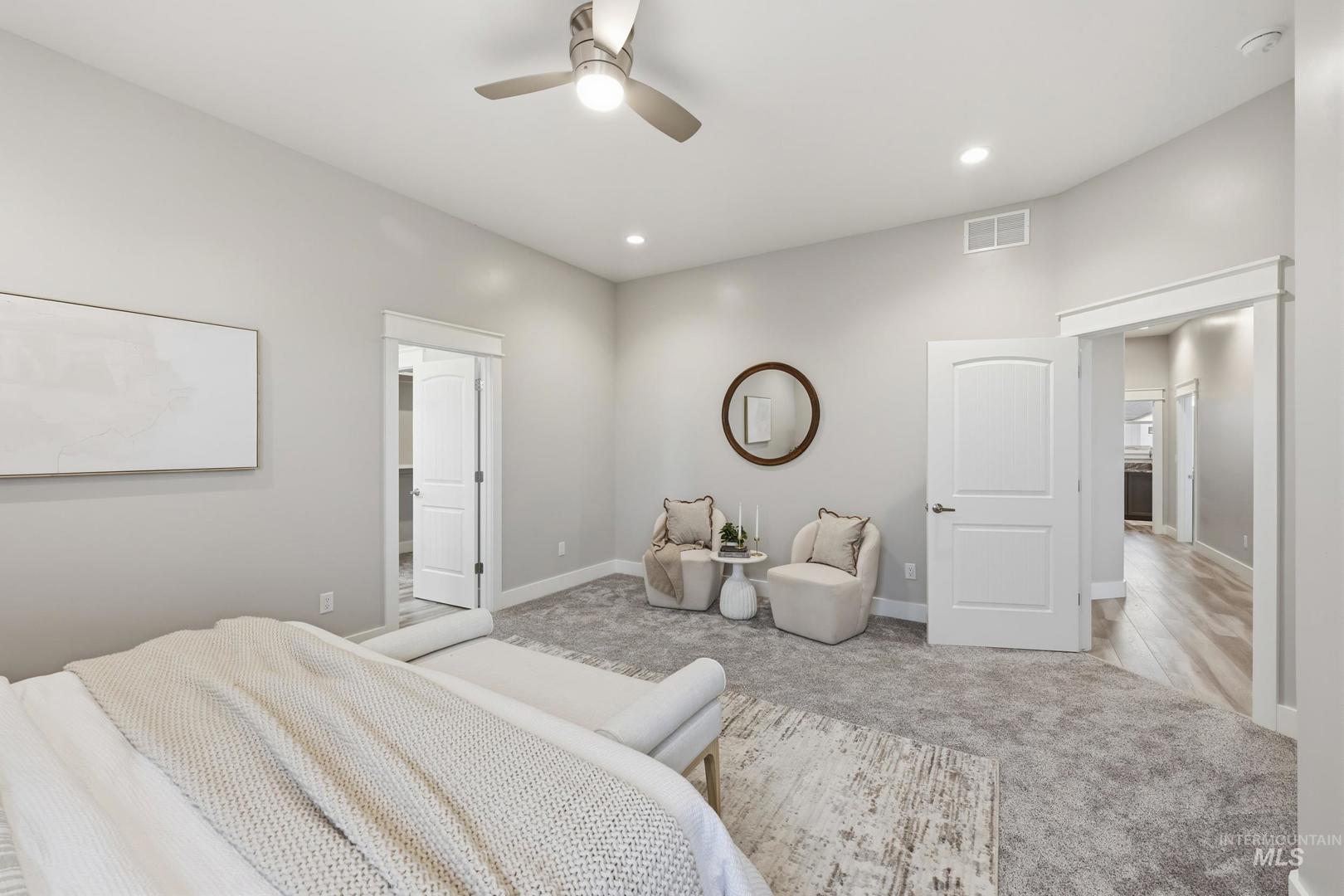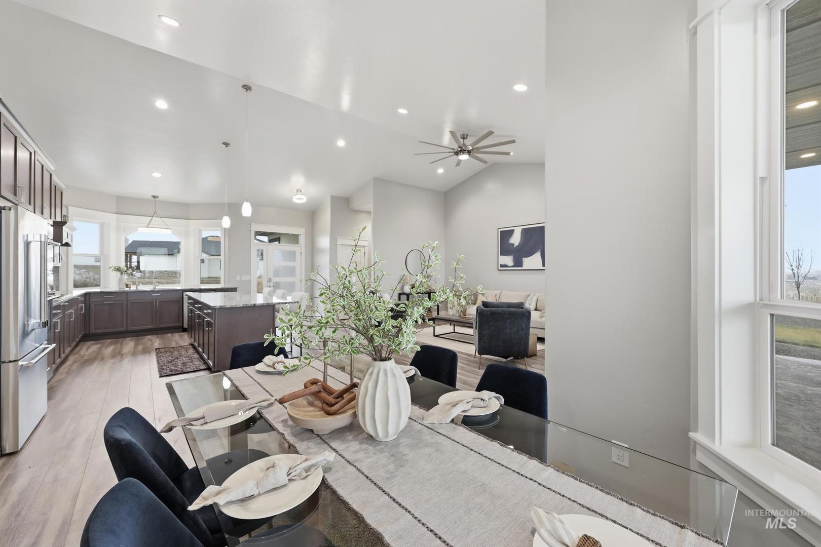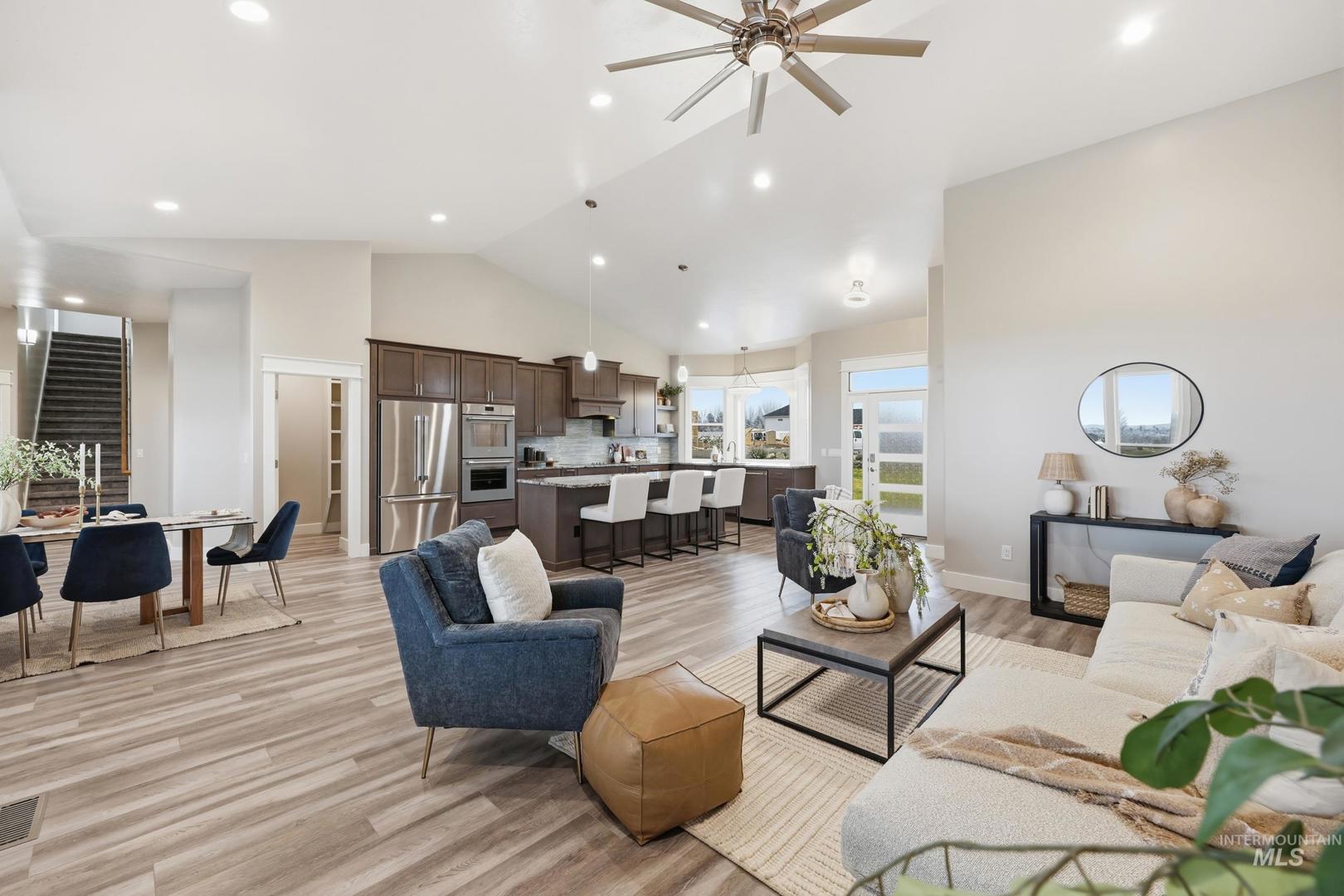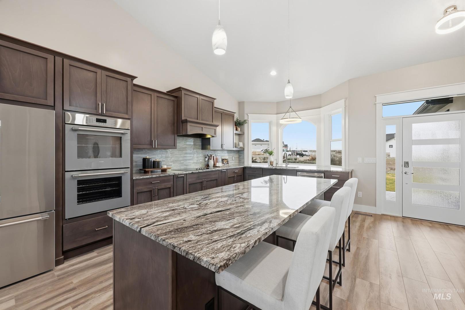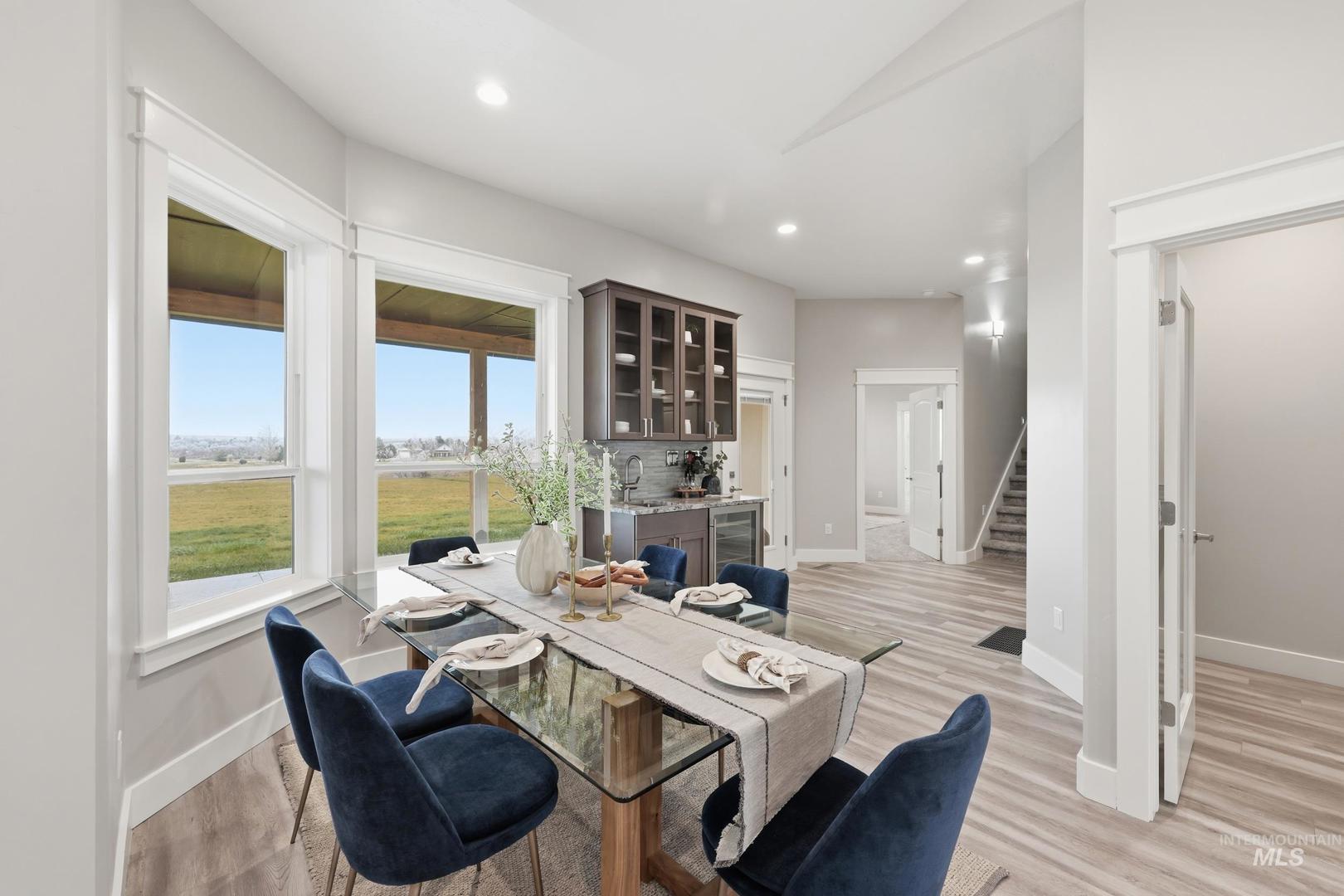 Live the country-luxury dream in this stunning custom new construction by Mountain Creek Builders Inc., perfectly positioned on 1.1 acres at the end of a quiet cul-de-sac with sweeping views of the Owyhee Mountains and South Butte. Designed for both comfort and entertaining, this 3,793 sq ft home offers 10’+ ceilings, a gourmet kitchen with granite countertops, Thermador appliances, oversized pantry, wet bar, and thoughtful finishes throughout. All bedrooms are on the main level, including two primary suites plus two guest rooms. Upstairs, enjoy a 1,298 sq ft bonus/office/recreation space with mini-split climate control, ideal for work, play, or guests. Outdoor living shines with stamped concrete patios, fully landscaped grounds featuring a water fountain, boulders, and over 30 mature trees and shrubs, with room for a shop and a pool. The oversized 3-car garage features 12’ ceilings and side-mount motors, plus a large paved driveway with RV parking. Property includes well, sewer, irrigation, and is pre-wired for Starlink. Builder is able to construct a shop or RV garage if desired. Best lot on the street. A rare opportunity to enjoy modern luxury with true rural freedom, without sacrificing convenience.