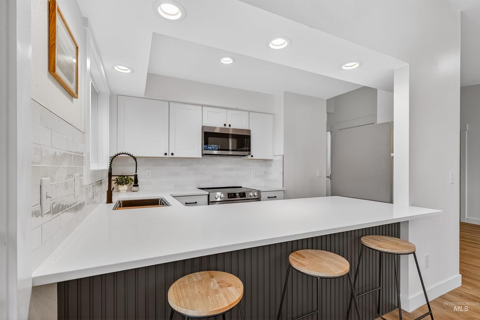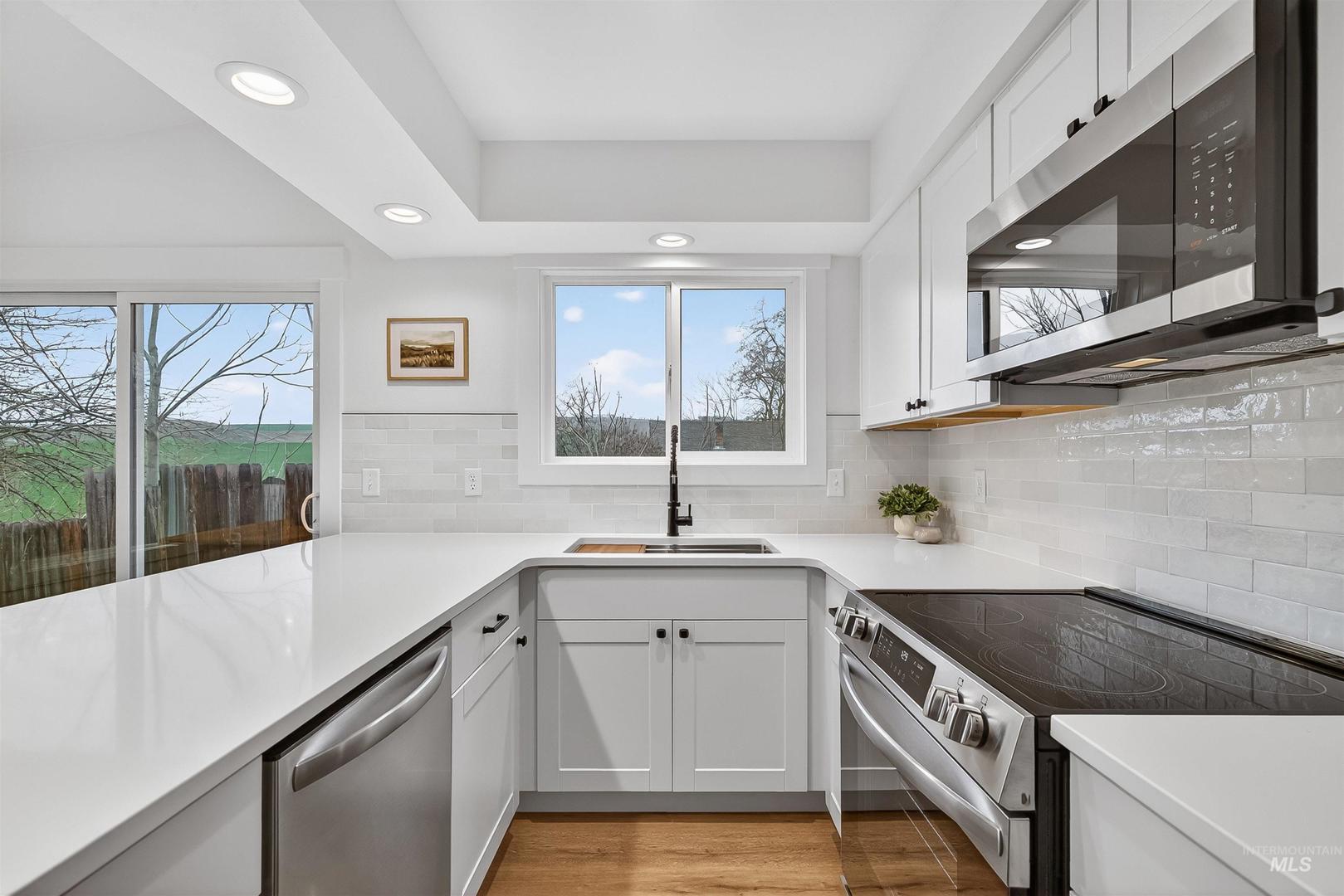 Fully renovated and move-in ready! This one-level 2 bed, 1 bath home features brand new flooring, fresh interior and exterior paint, new doors, and an updated kitchen with new cabinetry, quartz countertops, tile backsplash, and all new stainless steel appliances. Enjoy great views from the living room and dining area windows plus a patio perfect for relaxing. Low maintenance and ready for its new owner!