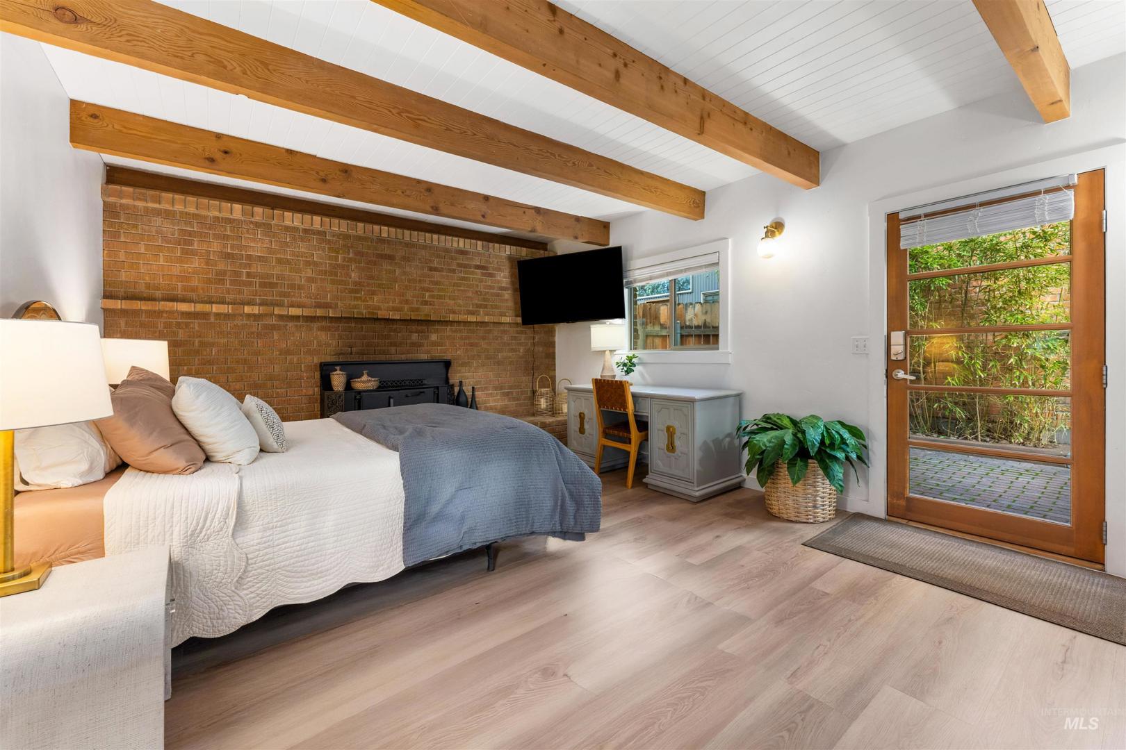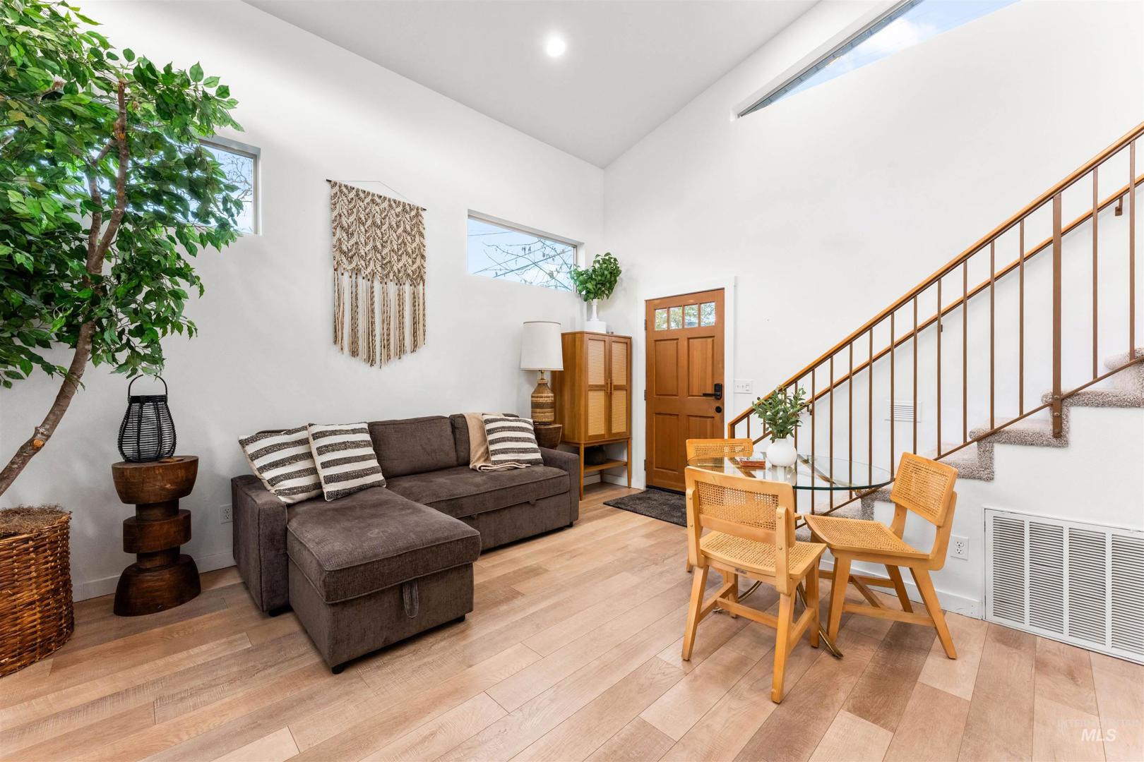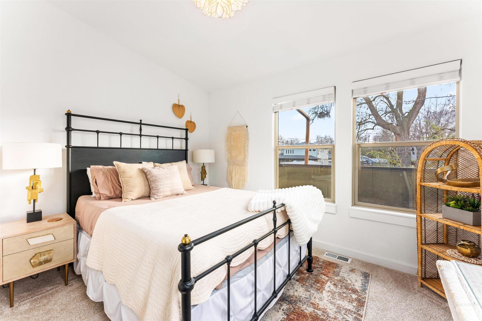 An exceptional turnkey investment opportunity featuring two homes in one, located within walking distance of Boise State University, just minutes from downtown Boise. Completely taken down to the studs and thoughtfully renovated, this property showcases striking architectural details, all-newer major systems - including furnaces, A/C units, and water heaters, and an impressive rental performance history in a highly desirable SE Boise location. The main residence offers 2429 sf, four bedrooms, including two primary suites (or a flexible main-level bonus room), three bathrooms, and dramatic design elements such as vaulted ceilings, exposed beams, architectural windows, and a gourmet kitchen. The secondary residence is 588sf, featuring a full-sized kitchen, open-concept living with soaring two-story ceilings, and one bedroom and one bathroom. This versatile layout allows for two separate short-term rentals or the option to live in the main home while generating additional cash flow from the secondary unit.