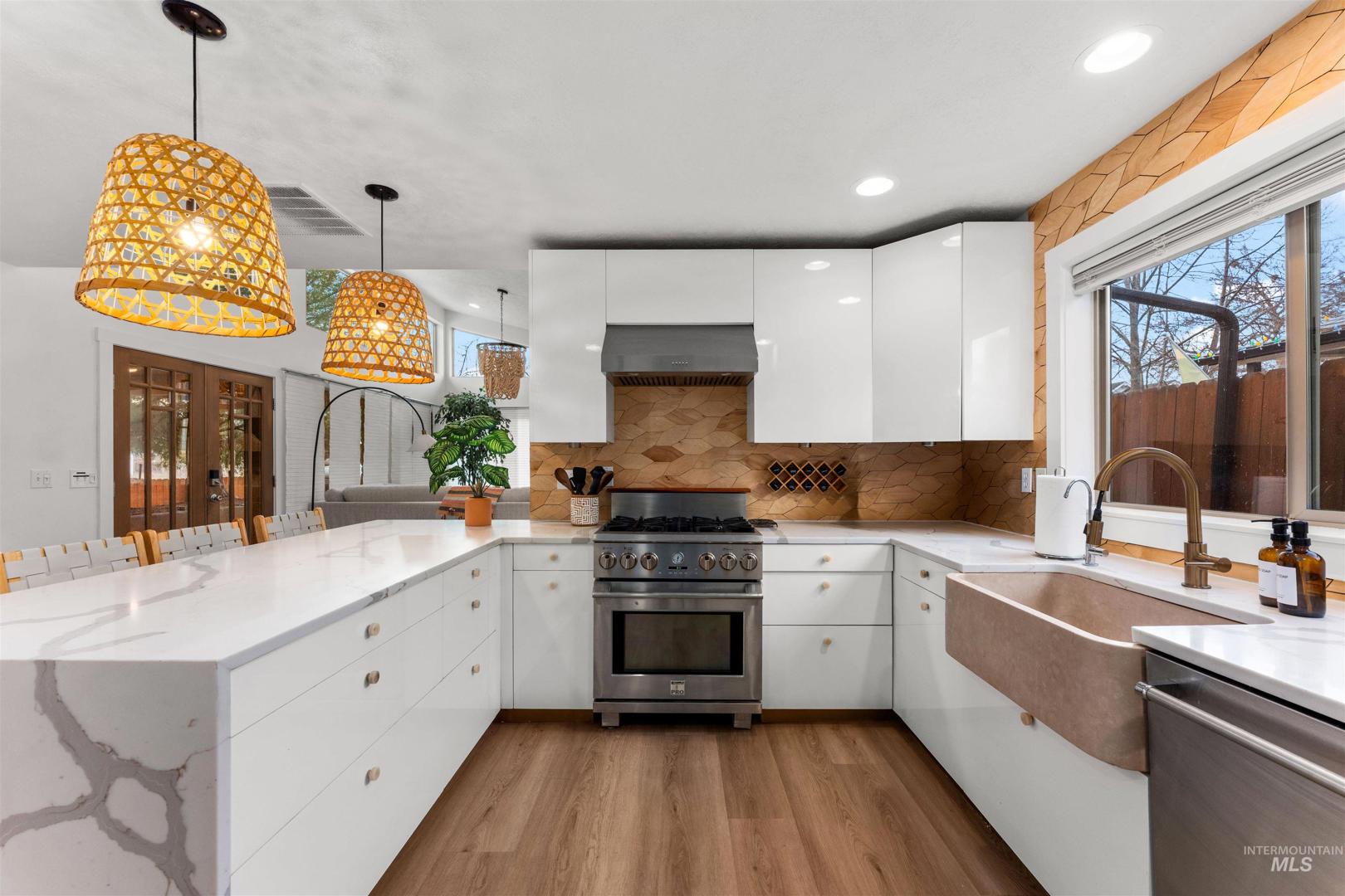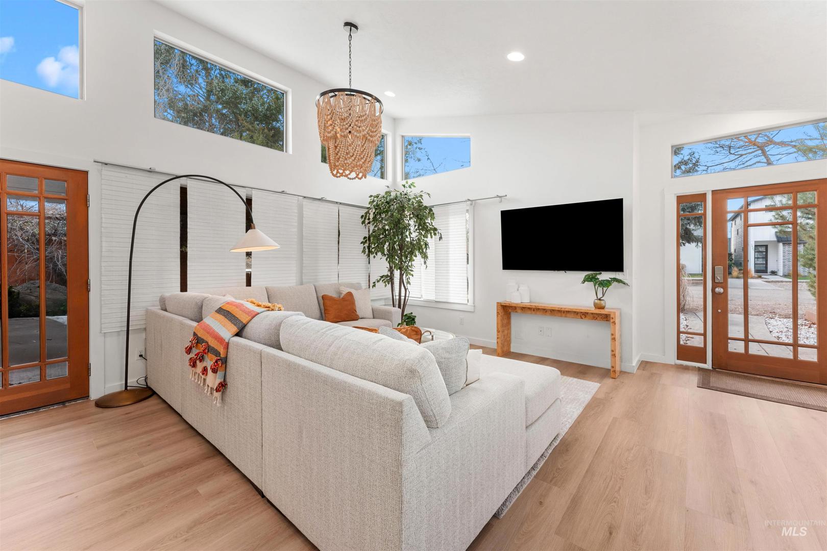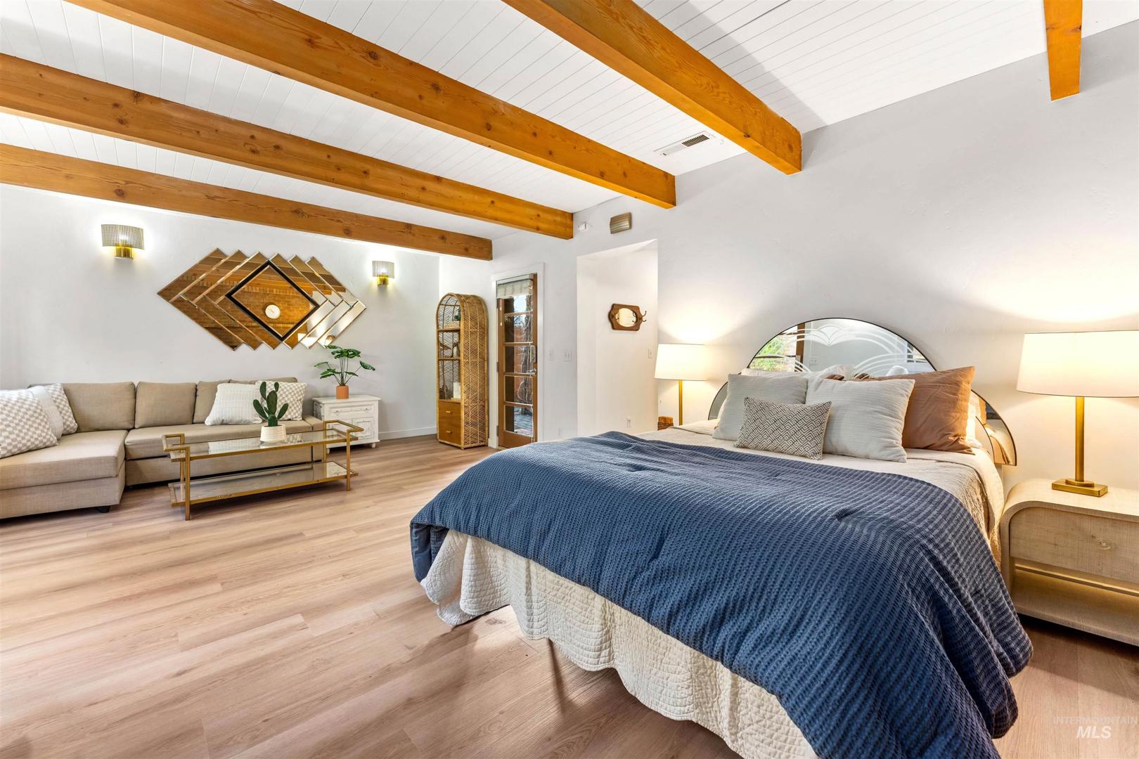 An exceptional turnkey investment opportunity featuring two homes in one, located within walking distance of Boise State University, just minutes from downtown Boise. Completely taken down to the studs and thoughtfully renovated, this property showcases striking architectural details, all-newer major systems - including furnaces, A/C units, and water heaters, and an impressive rental performance history in a highly desirable SE Boise location. The main residence offers 2429 sf, four bedrooms, including two primary suites (or a flexible main-level bonus room), three bathrooms, and dramatic design elements such as vaulted ceilings, exposed beams, architectural windows, and a gourmet kitchen. The secondary residence is 588sf, featuring a full-sized kitchen, open-concept living with soaring two-story ceilings, and one bedroom and one bathroom. This versatile layout allows for two separate short-term rentals or the option to live in the main home while generating additional cash flow from the secondary unit.