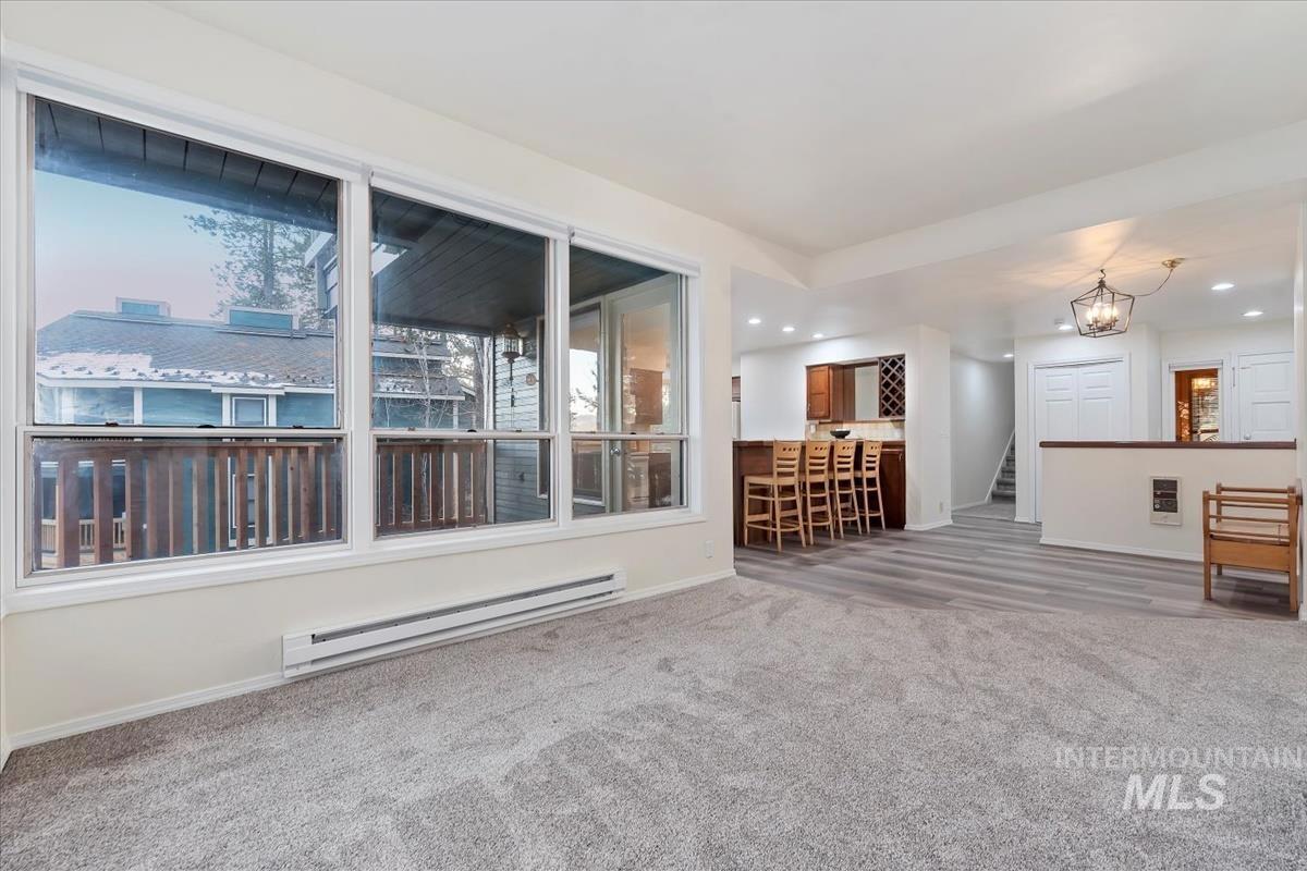 Welcome to your home away from home at Meadow Creek Resort in New Meadows! This rare 1502 sq ft condo boasts incredible mountain views with a private feel inside and out. Enjoy access to all that Meadow Creek has to offer including the golf course, driving range, pool, clubhouse, pickleball & tennis courts, cafe and fishing pond. Brundage Ski Resort & McCall are just 20 minutes away. Recently remodeled with all new flooring, paint and exterior decking, this condo features a full size kitchen, breakfast bar, fireplace, 3 separate decks, 3 full bathrooms plus expansive vaulted ceilings upstairs & floor to ceiling windows throughout! The HOA covers exterior building maintenance, landscaping, snow removal and of course the wonderful community amenities!