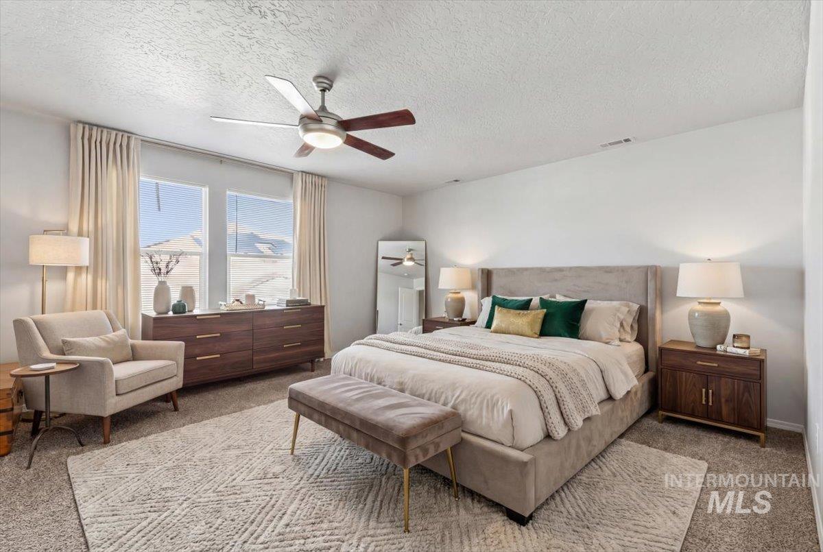 Spacious and thoughtfully updated home in desirable Charter Pointe. With approx 2,260 sq ft, this home offers oversized rooms throughout, creating a comfortable and open feel rarely found at this price point. Interior updates include new carpet, new flooring, and fresh interior paint, giving the home a move in ready feel. Flexible floor plan features four bedrooms plus a main level flex room ideal for office, den, or hobby space. Roof replaced in 2019. Built in 2006 and well maintained with recent improvements already completed. Quaint, low maintenance backyard is perfect for easy living. Located near Lake Hazel and Five Mile with access to Charter Pointe amenities including community pool. Close to schools, parks, shopping, and commuter routes. A great opportunity for buyers seeking space, updates, and neighborhood amenities in SW Boise.