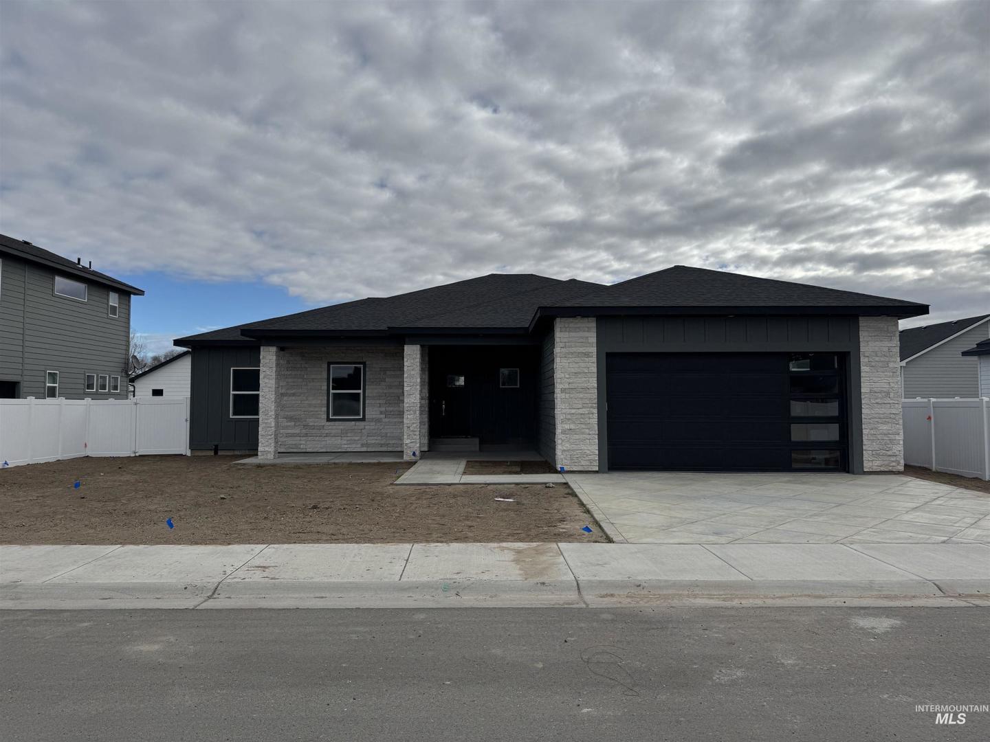 This beautiful four-bedroom, two-bath new construction home showcases quality craftsmanship and attention to detail throughout. Coffered ceilings, granite countertops, and a thoughtfully designed mudroom add both character and functionality, while the elegant primary suite features a well-appointed bath designed for comfort and relaxation. The open, split-bedroom floor plan offers an ideal balance of togetherness and privacy. Outside, enjoy a fully fenced backyard and covered back patio- perfect for outdoor living and entertaining. A striking front stone façade and covered patio enhances the curb appeal. A very large laundry room adds everyday convenience to this well-designed home. A great opportunity to own a beautiful new build in an up-and-coming subdivision!