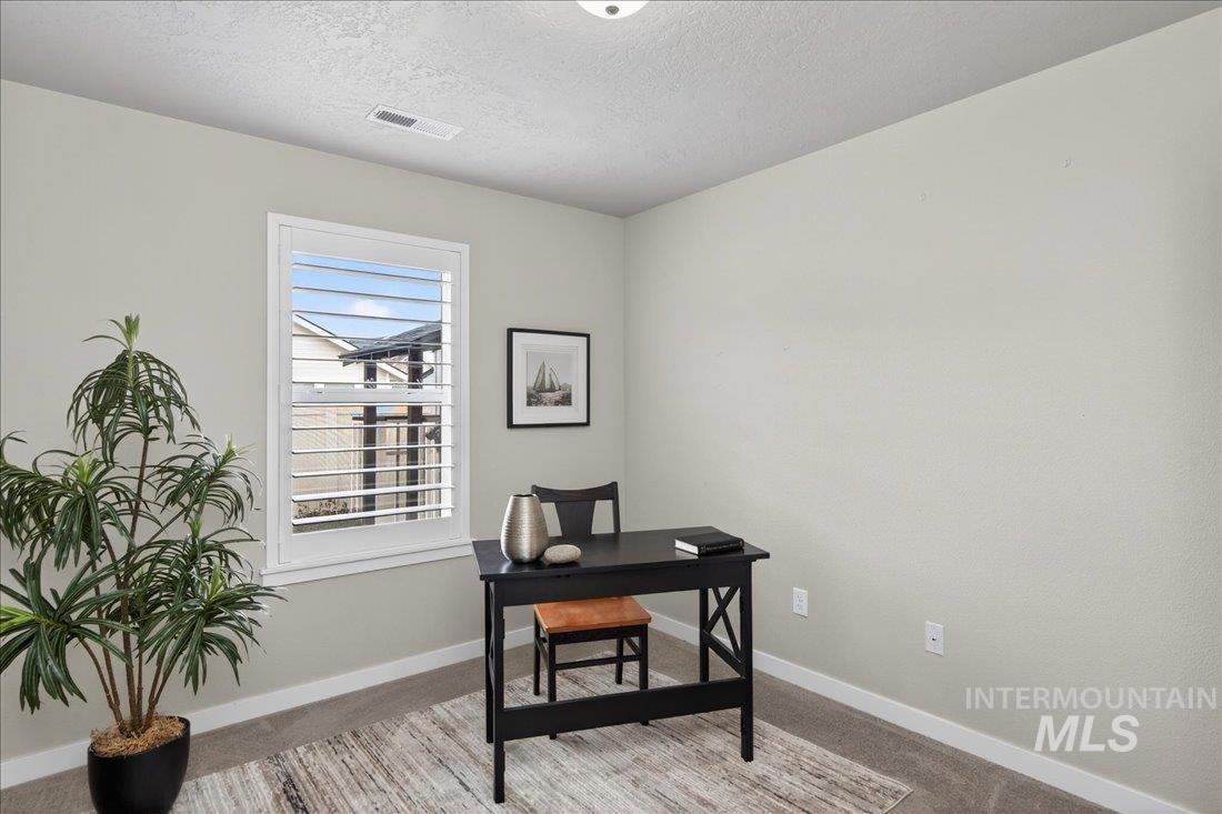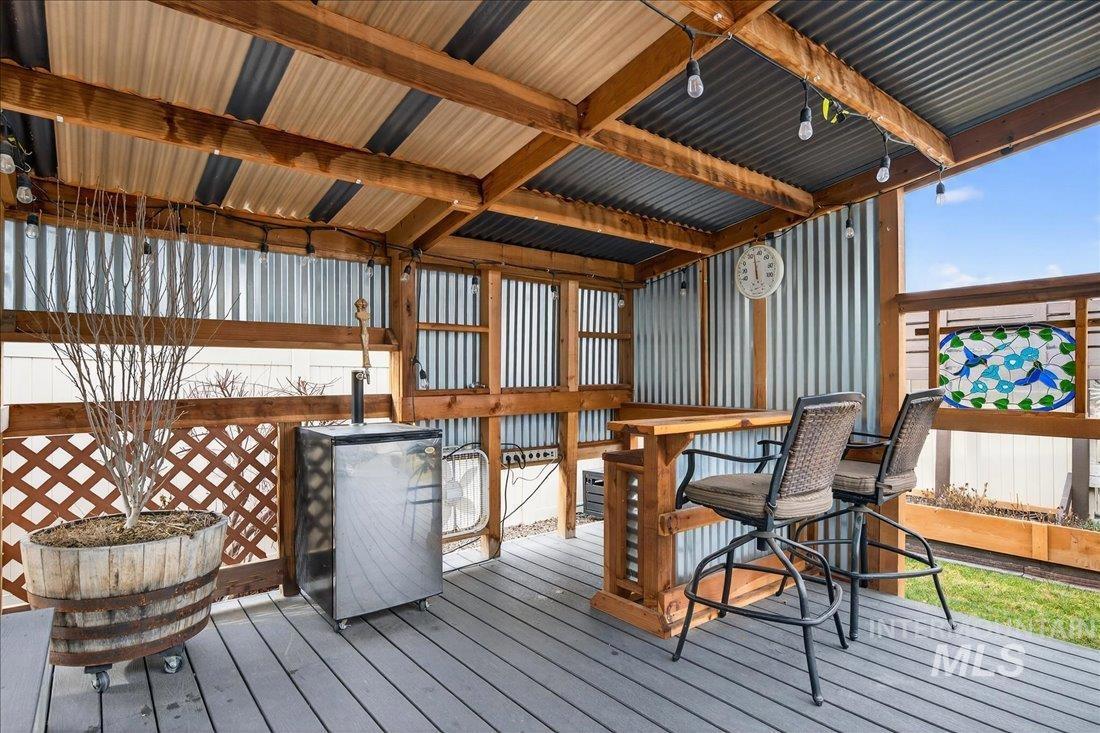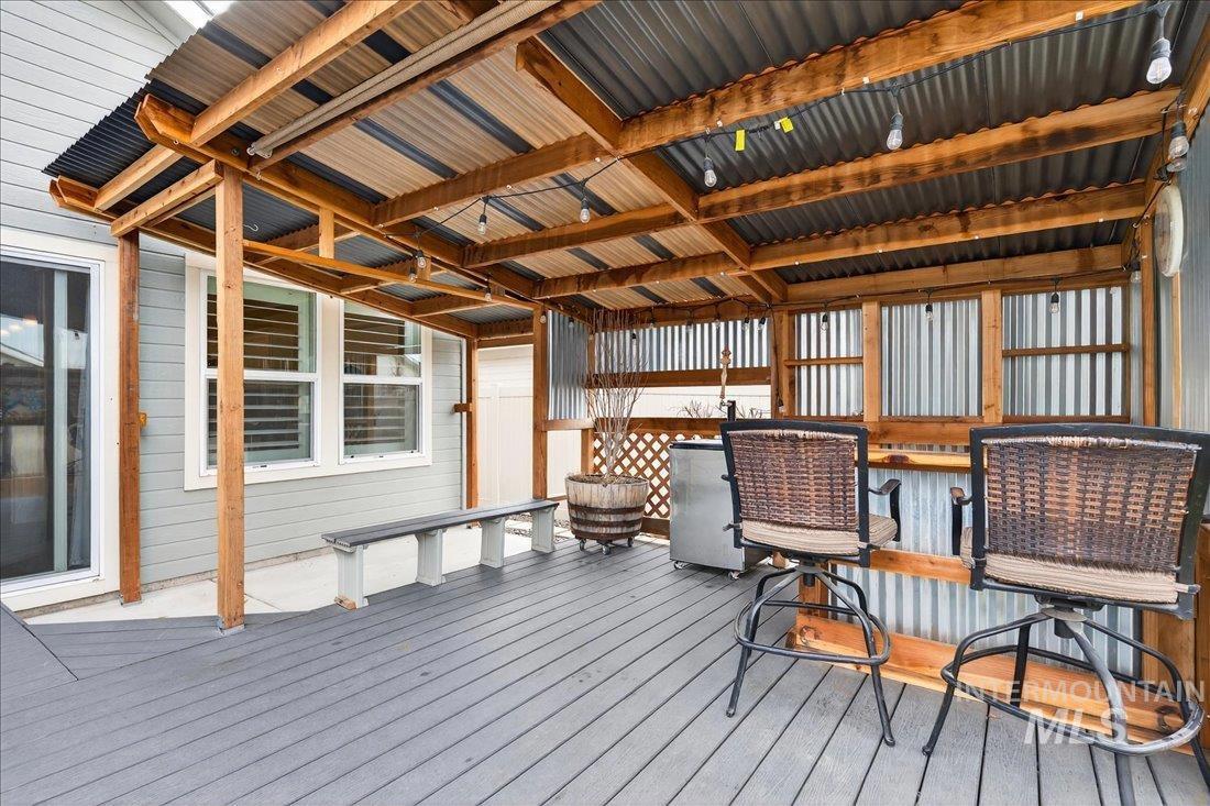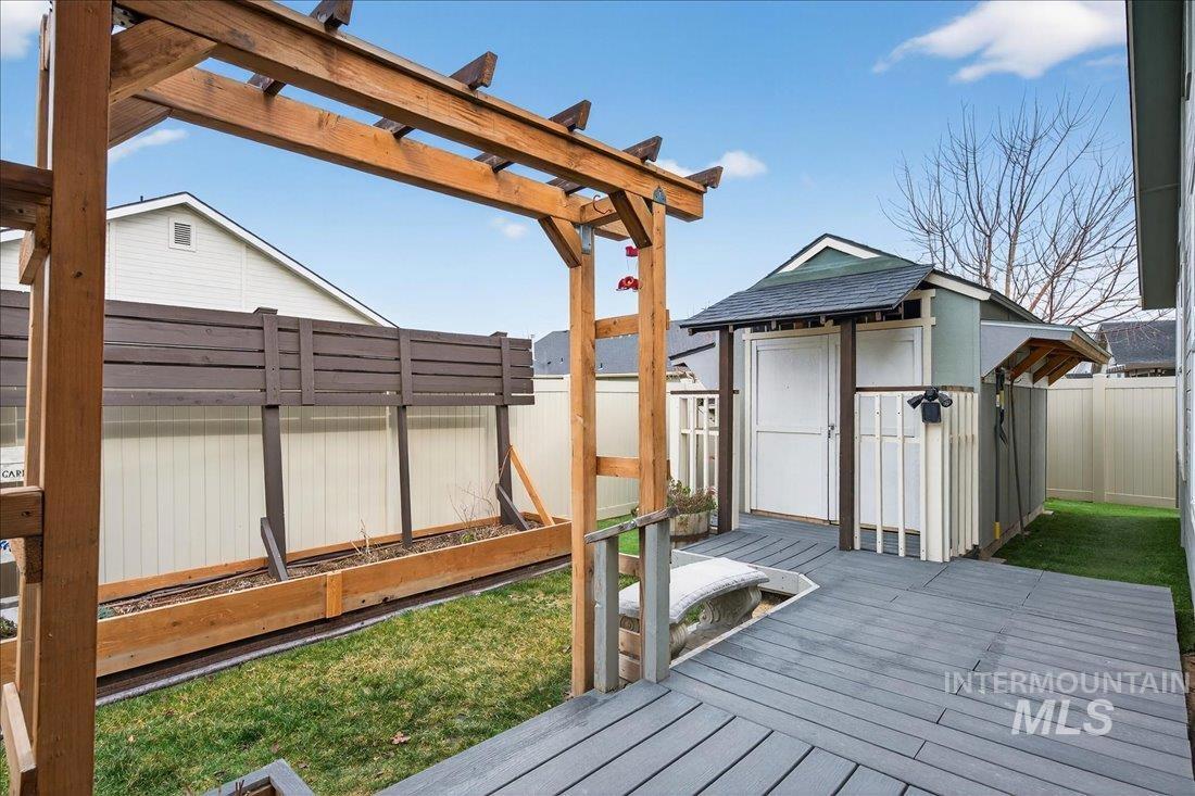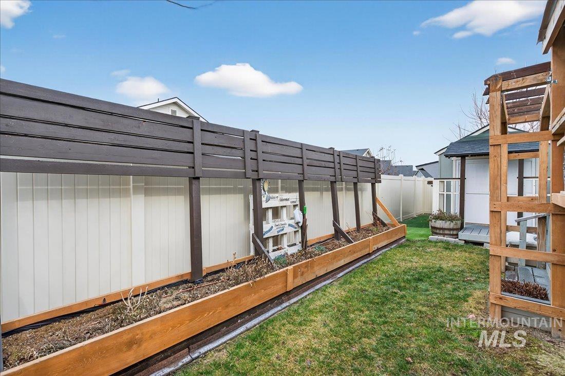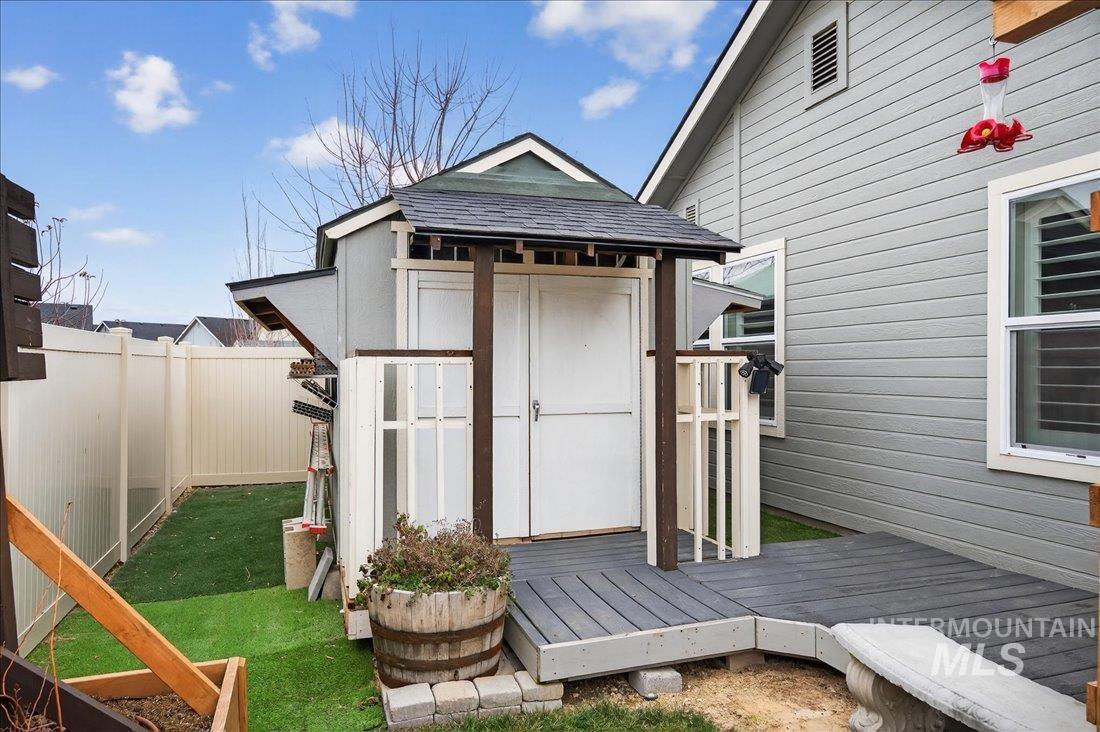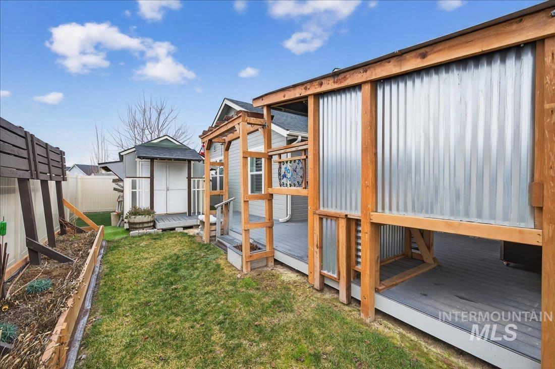 This home feels thoughtfully designed for the way life is meant to be lived. The split-bedroom layout with dedicated office provides privacy and functionality. Inside, every detail reflects intention. Custom built seating and storage transforms the mudroom into a true drop zone. The laundry room feels more like a workspace than a chore, featuring cabinetry and a folding/hanging station. Elegant shutters throughout the home add a timeless finish. The kitchen serves as the heart of the home with painted white cabinets, granite countertops, a wainscoting-wrapped island, and soft indirect lighting ideal for everyday living or effortless entertaining. Step outside and the story truly unfolds. The backyard is a private retreat designed for year-round enjoyment, featuring 400+ square feet of covered patio space. Trex decking, integrated seating/bar area, trellis, dedicated BBQ pad, raised garden beds, and privacy screening create an outdoor living space that feels like a natural extension of the home. A walkway leads to the shed/shop, complete with built-in shelving, workbench, overhead storage, and a hidden beverage fridge. The solar panels and security system add convenience and peace of mind. This is more than a house, it`s a place where thoughtful upgrades meet everyday comfort, where privacy and efficiency coexist, where indoor and outdoor living come together seamlessly.