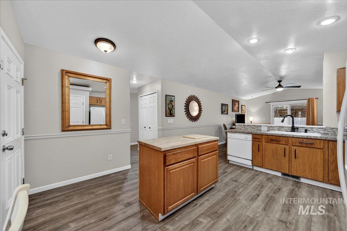 Super Clean Turn-key single-level home featuring 3 bedrooms and 2 bathrooms with new luxury vinyl plank flooring throughout, vaulted ceilings, and fresh interior paint. The updated open kitchen flows seamlessly into the main living space, creating an inviting and functional layout. Enjoy a low-maintenance, zero-scaped backyard with dedicated garden space, an outdoor fire stove, and a grassed dog run. There is potential RV or trailer parking, plus a storage/garden shed for added convenience. Located in a neighborhood with mature trees, this home offers comfort, functionality, and easy living—ready for you!