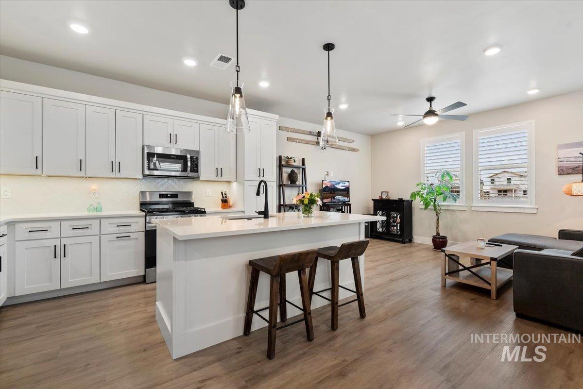 Offering a $10k seller concession! Skip the 4-month wait & hassle of brand-new construction. Move-in Ready with window coverings & water softener already installed, this stunning luxury townhome will impress! In a premium location within Star’s new sought-after Cranefield community with a private patio boasting splendid VIEWS of the creek & pool. Barely attached, exclusive Sparrow end unit offers privacy with no rear neighbors. Loaded with extensive upgrades that you will love including elegant plantation shutters, LG refrigerator, quartz countertops, gas stove & gorgeous flooring on both levels along with 9’ ceilings. With 4 BR & 3 full baths, it’ll sleep 8, plus there`s a study. Primary Suite could hold a king-sized bed & several dressers. Oversized 2 car garage has ample space for vehicles & gear & there’s plenty of guest street parking. Enjoy the pool, walking paths, pickleball & more in this desirable community near Dutch Bros, Westside Pizza, Taphouse Pub, Proof Craft Kitchen & Cocktails & Rare Steakhouse. Outdoor adventures just minutes away, including Boise River & Star Riverwalk Park. With a transferable builder warranty, this home offers peace of mind.