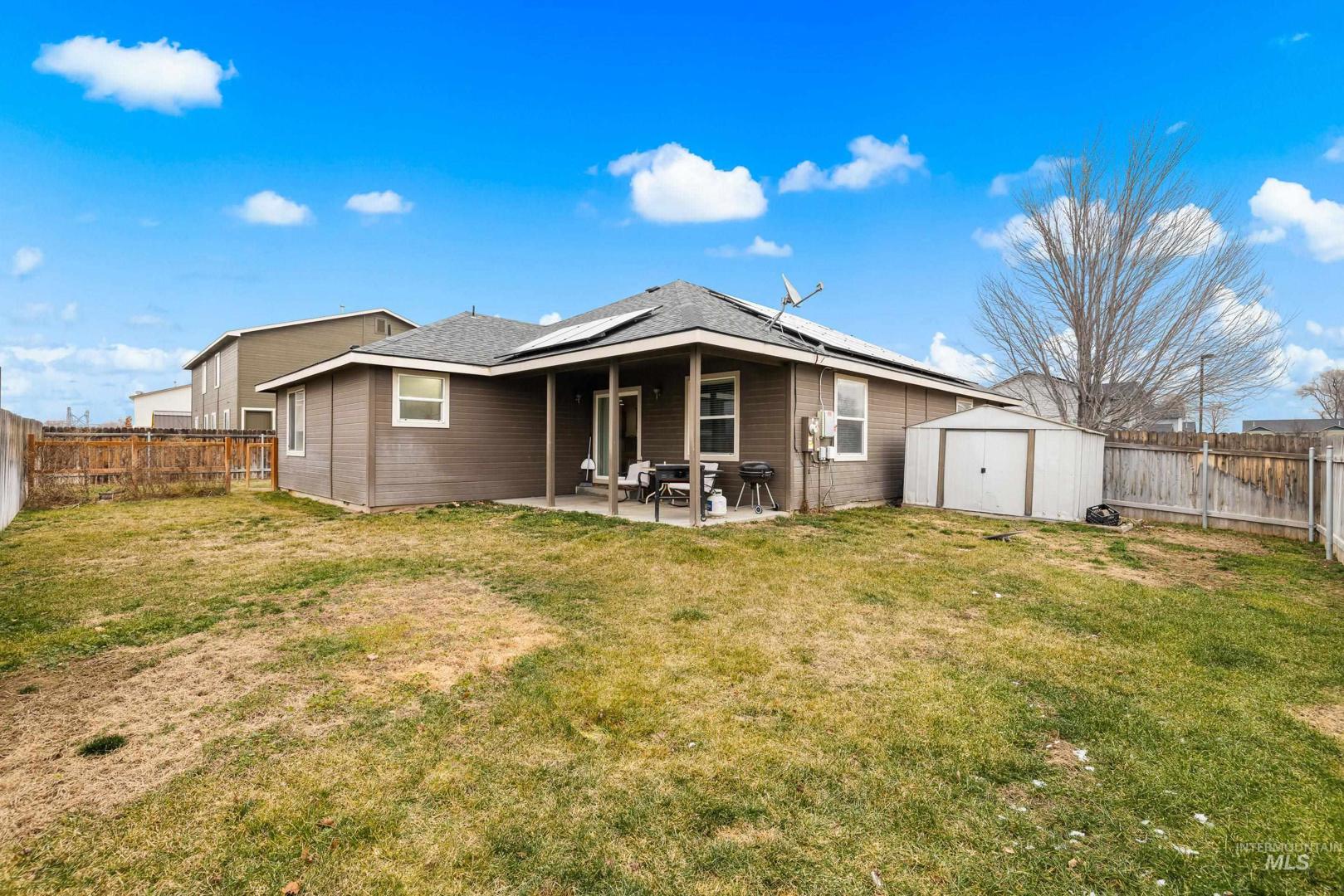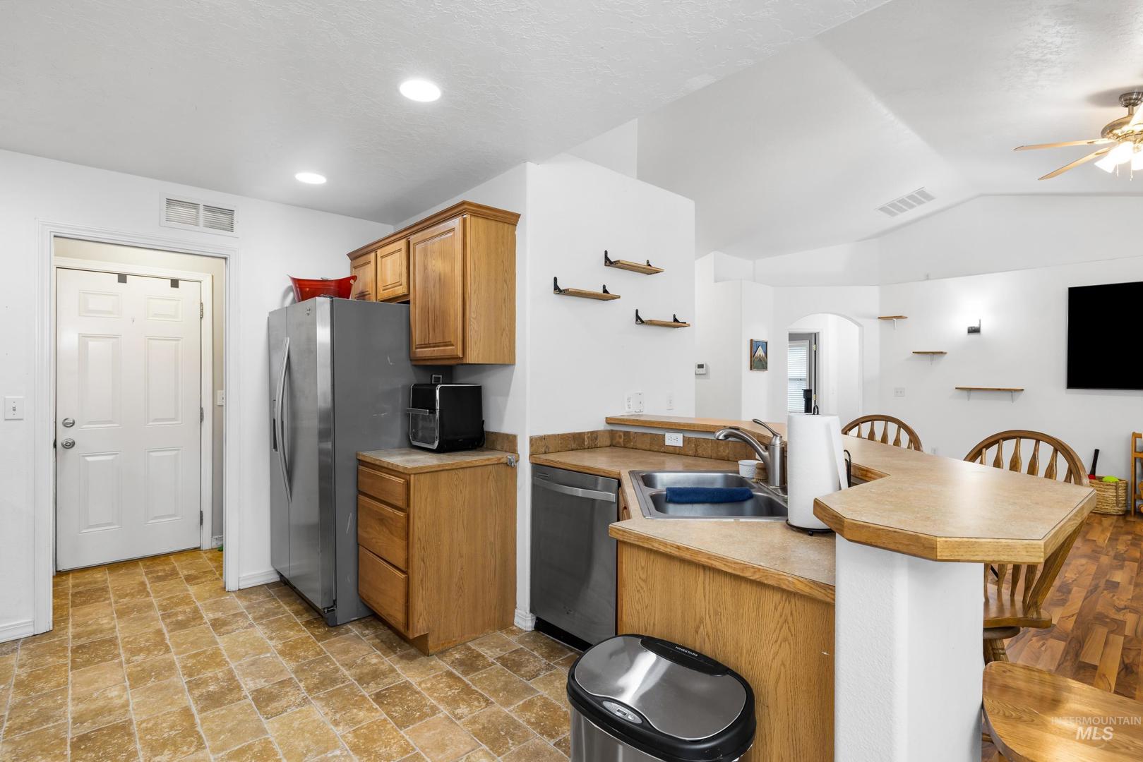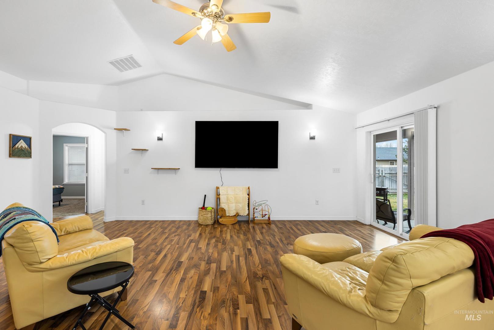 Rare double RV parking and no HOA set this well cared for 3 bedroom, 2 bathroom home apart, offering flexibility and freedom in an established neighborhood. Inside, the open concept living, dining, and kitchen area features vaulted ceilings, updated light fixtures, and abundant natural light, creating an inviting space for everyday living and entertaining. The kitchen includes newer stainless steel appliances, with the washer, dryer, and refrigerator all included in the sale. A dedicated office or craft room provides valuable flex space, while the primary suite offers a relaxing retreat with a walk in closet, jetted soaker tub, and tiled step in shower. Additional highlights include fresh interior paint, professionally cleaned carpets, a fully finished two car garage with included workbench and shelving, and owned solar panels less than two years old, all situated on a desirable corner lot. This is the home you have been waiting for, spacious, private, and ready to move in!