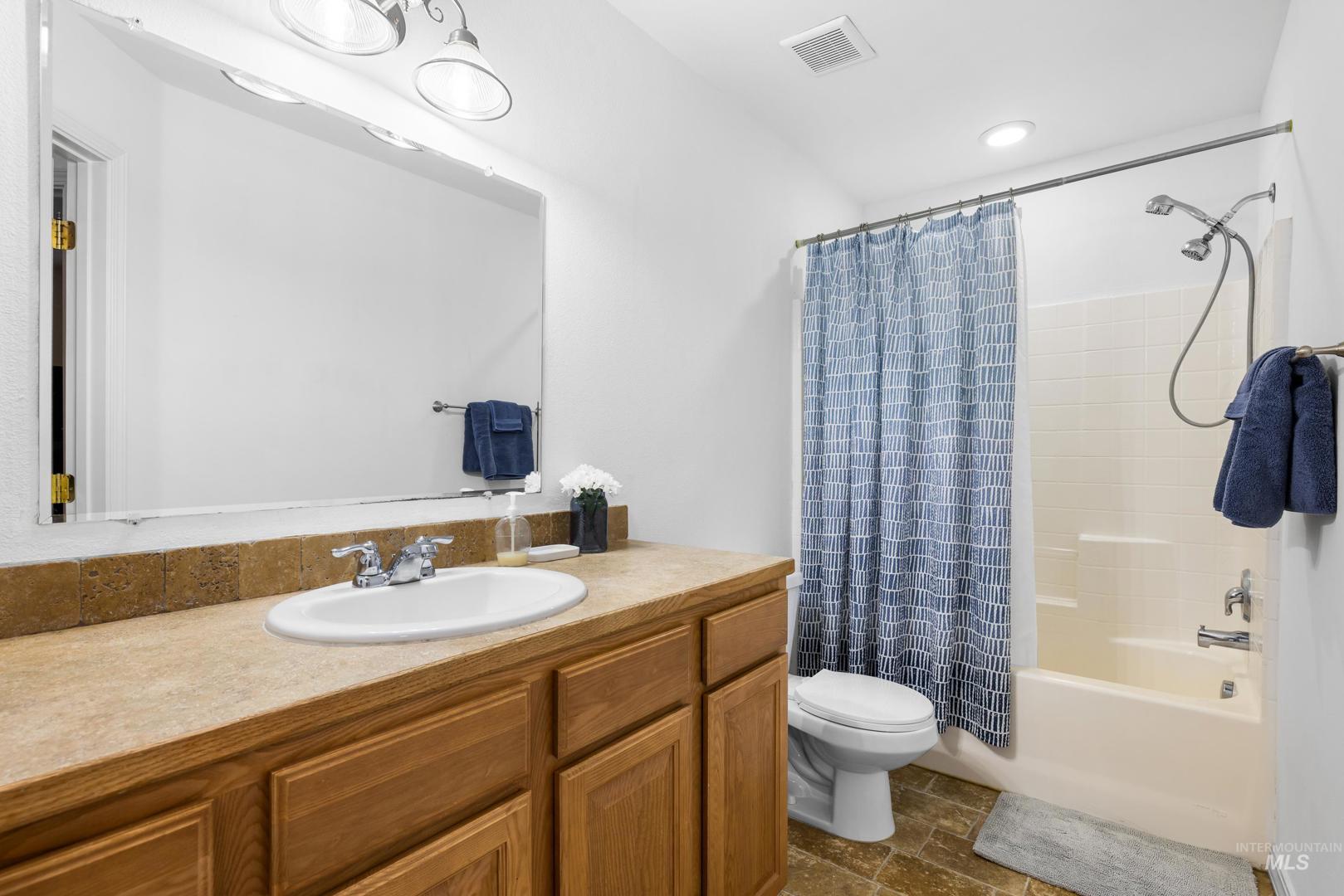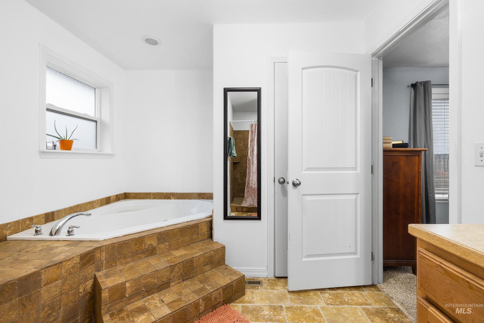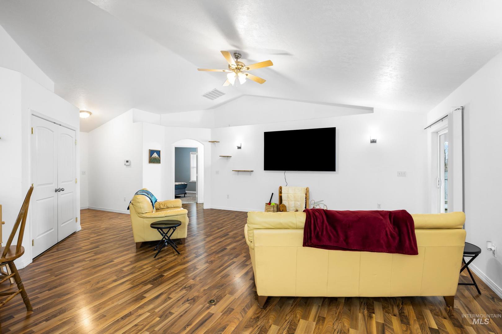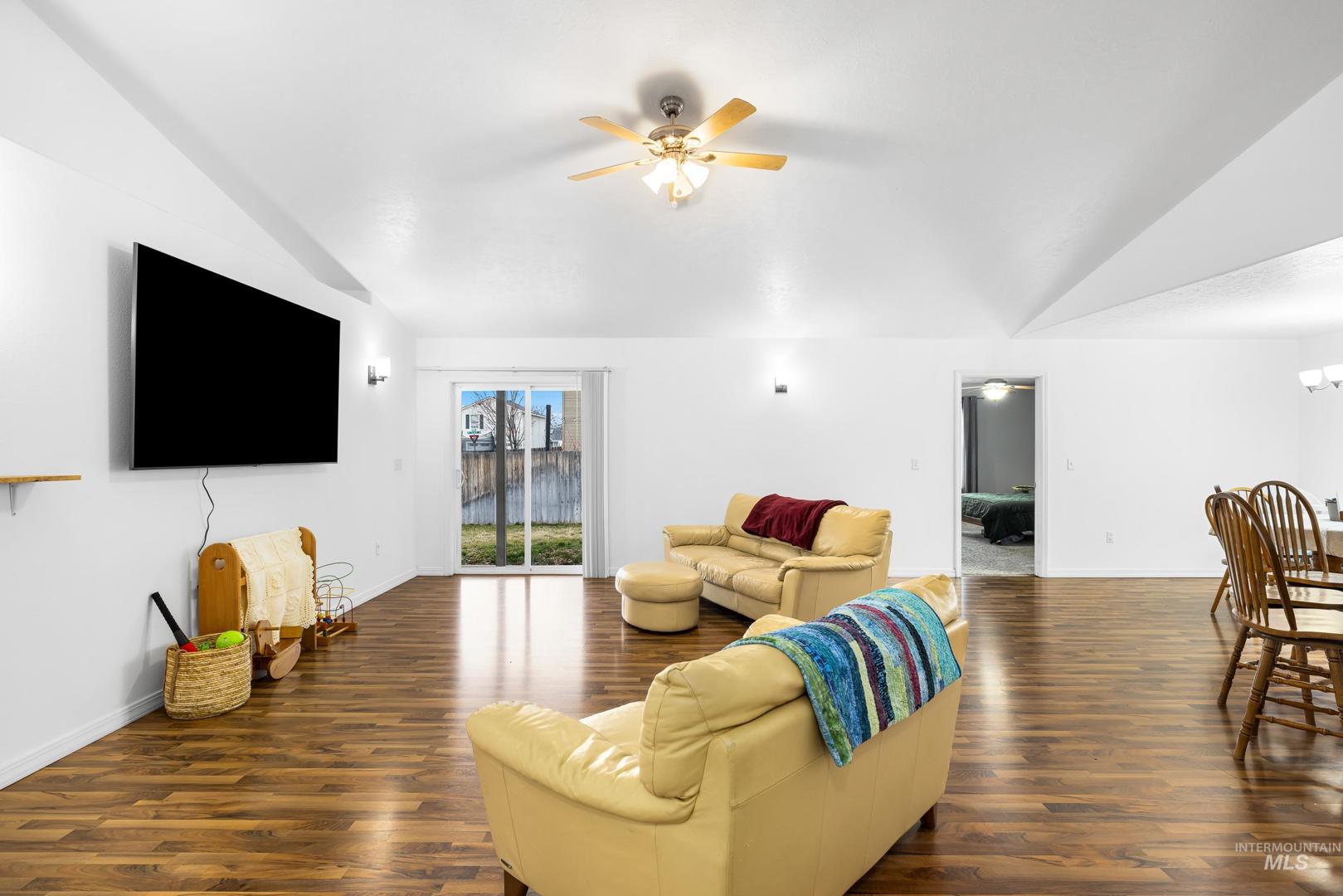 Rare double RV parking and no HOA set this well cared for 3 bedroom, 2 bathroom home apart, offering flexibility and freedom in an established neighborhood. Inside, the open concept living, dining, and kitchen area features vaulted ceilings, updated light fixtures, and abundant natural light, creating an inviting space for everyday living and entertaining. The kitchen includes newer stainless steel appliances, with the washer, dryer, and refrigerator all included in the sale. A dedicated office or craft room provides valuable flex space, while the primary suite offers a relaxing retreat with a walk in closet, jetted soaker tub, and tiled step in shower. Additional highlights include fresh interior paint, professionally cleaned carpets, a fully finished two car garage with included workbench and shelving, and owned solar panels less than two years old, all situated on a desirable corner lot. This is the home you have been waiting for, spacious, private, and ready to move in!