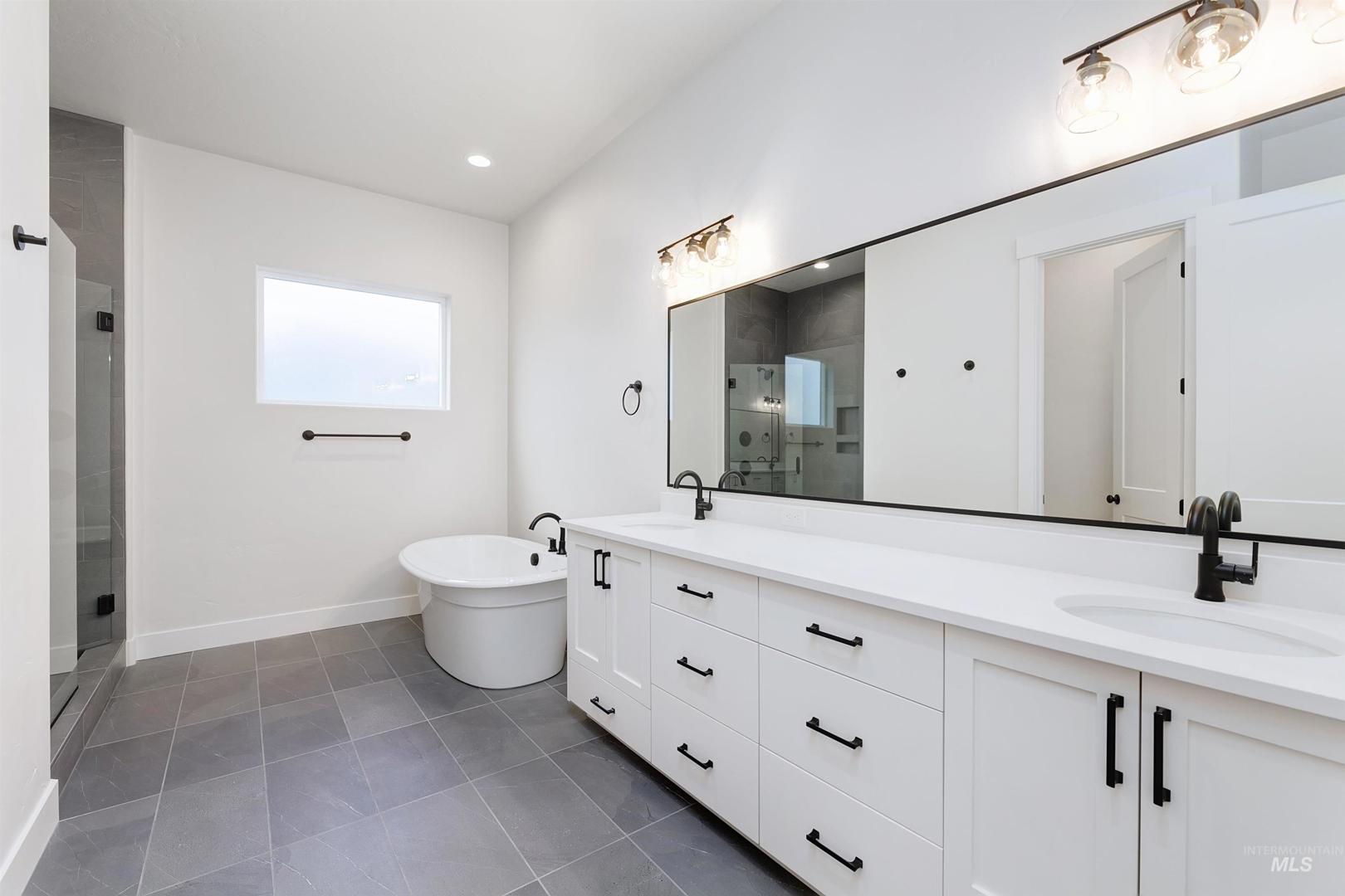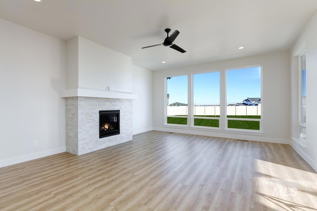 Steps from exclusive Boise River access, this single-story Hemingway features a side-load garage AND an RV bay. The entry opens directly into the main living area, where the great room is anchored by a platform fireplace and framed by large windows. The kitchen connects seamlessly to the great room and expanded covered patio, offering a large center island, generous cabinetry, and open layout designed for daily use and entertaining. The primary suite is tucked away for privacy and includes a freestanding tub, tiled shower, dual vanities, and spacious walk-in closet in the master bath. Completing the home is a well-lit office, a dedicated laundry room, and walk-in closets + bathrooms in every bedroom. Now open, the River Park Estates Clubhouse offers endless opportunities for activity and relaxation. Enjoy pickleball, swimming, lounge areas, and more, all presented in a beautiful modern aesthetic. Home is under construction with a June 2026 completion date. Photos similar. Rendering for illustrative purposes