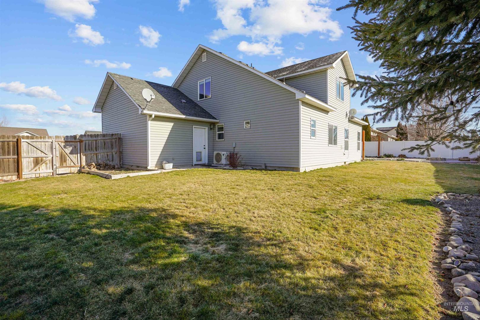 Welcome to this well-maintained 4-bedroom, 2.5-bath home offering 1,550 square feet of comfortable and functional living space in a quiet Hazelton neighborhood. The primary bedroom is conveniently located on the main level, providing privacy and ease of living, while the three additional bedrooms and a guest bathroom are situated upstairs. Outside, you’ll love the expansive, fully fenced backyard that offers excellent privacy—perfect for entertaining, pets, or relaxing evenings around the firepit on the beautiful patio. The front yard is just as inviting, featuring lovely landscaping and a covered patio that adds to the home’s curb appeal and charm. This home combines thoughtful layout, outdoor living, and a peaceful location—making it a great place to call home.