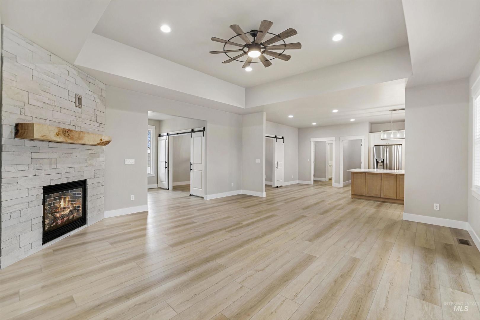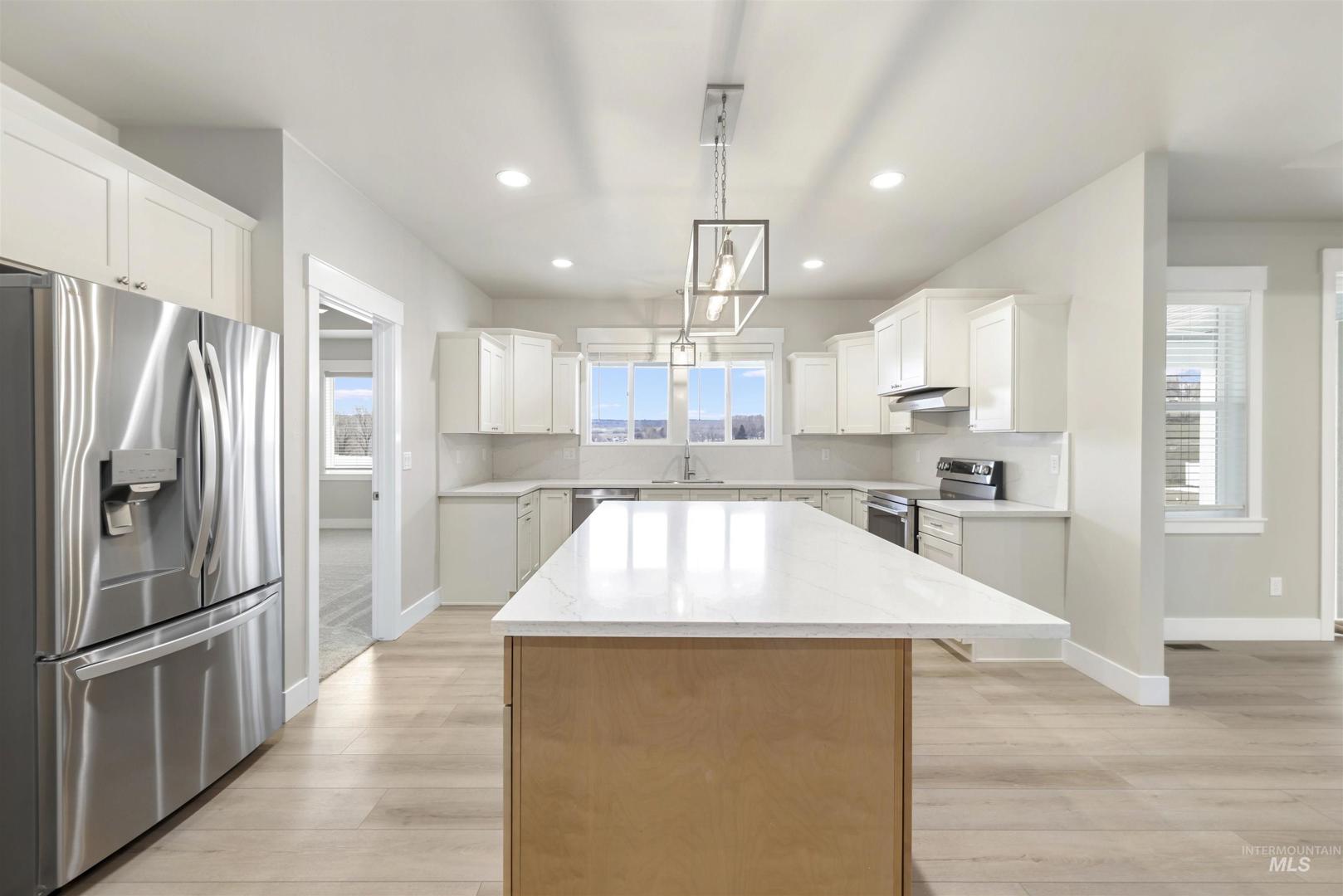 Welcome to Big Sky Estates, where this custom home showcases the beauty of the Hagerman Valley. Set on 1.11 acres, the 2,294 sq ft floor plan includes 3 spacious bedrooms, 2 full baths, and an office/bonus room. The primary suite features a walk-in shower and separate soaking tub, while the open layout highlights granite countertops, high-end finishes, and a propane fireplace. Two heat pumps provide efficient heating and cooling—primary forced air propane with electric backup. The kitchen is plumbed for both gas and electric appliances, adding flexibility. Outside, take in panoramic views of the Hagerman Valley with plenty of space for toys or hobbies. Located in the heart of Hagerman, this home offers easy access to the Snake River and Billingsley Creek Recreation Area, plus world-class fishing, hot springs, and abundant wildlife—all just minutes from your door.