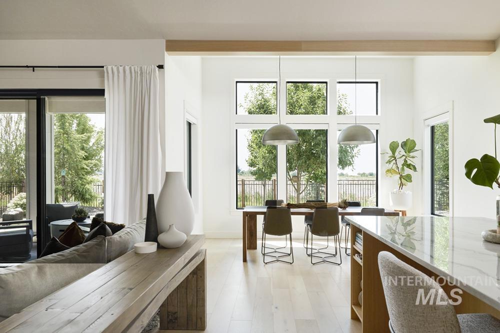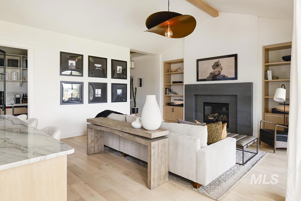 Refined organic modern design in Eagle’s coveted Legacy community. This exceptional single-level home blends architectural intention with true custom craftsmanship, offering a level of finish rarely found at this price point — curated, layered, & quietly luxurious throughout. Stone & wood accents create a warm exterior, while inside, soaring ceilings, hardwood floors, extensive trim, & custom ceiling details set an elevated tone. A porcelain slab fireplace anchors the vaulted great room, flanked by custom oak built-ins. The open layout flows seamlessly from living to dining to kitchen, ideal for everyday ease and entertaining. The gourmet kitchen features a quartzite island, two-tone cabinetry, marble backsplash, and Bosch appliances including a 6-burner gas range & double ovens. An iron-and-glass door reveals a designer pantry with built-in storage. The primary suite offers vaulted ceilings and a spa-like bath with soaking tub, walk-in shower, and dual vanity, plus a custom closet connecting to the laundry room. Two additional bedrooms, stylish guest and powder baths, and thoughtful built-ins continue the home’s tailored livability. Sliding doors open to a covered patio and landscaped yard with water feature and direct canal path access. Legacy amenities include pools, golf, tennis, parks, and trails.