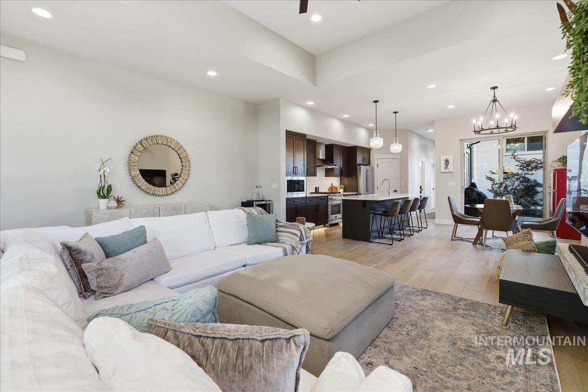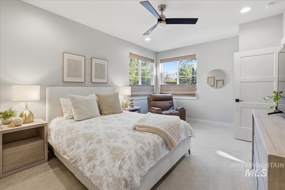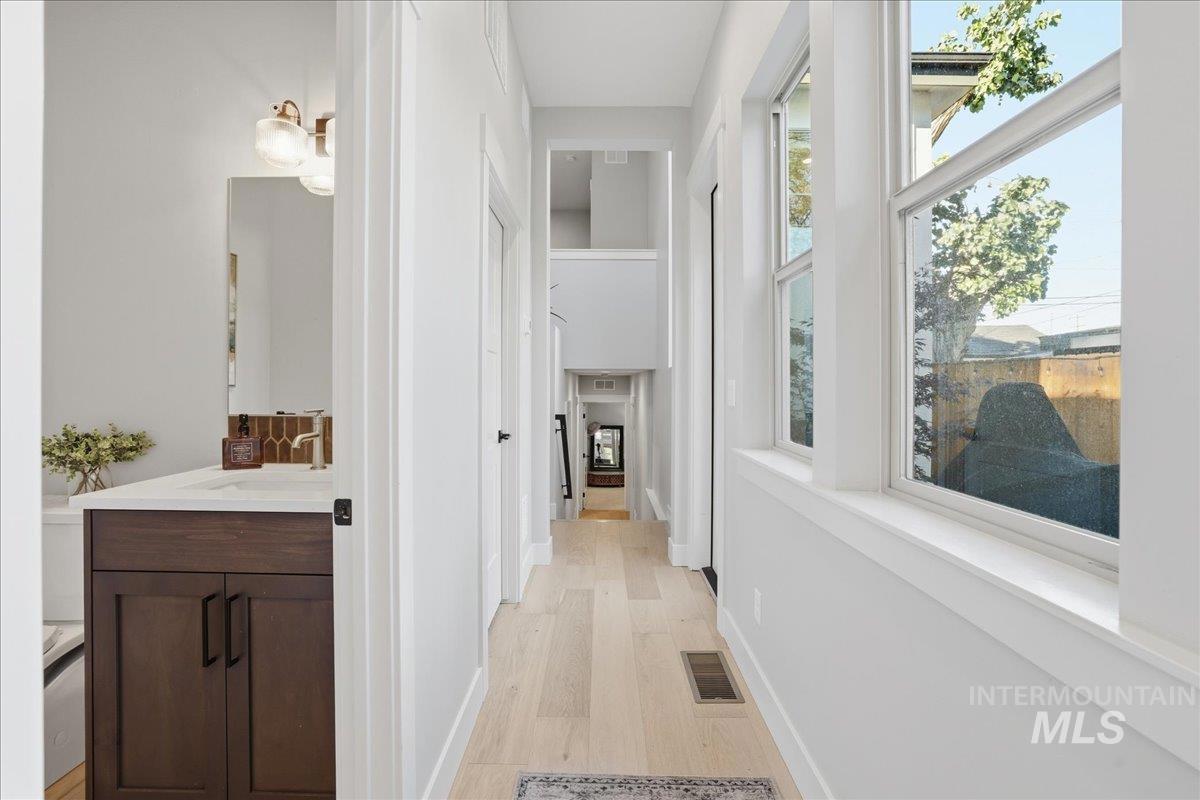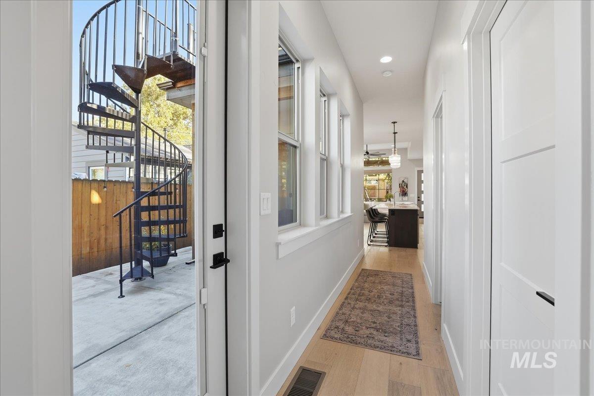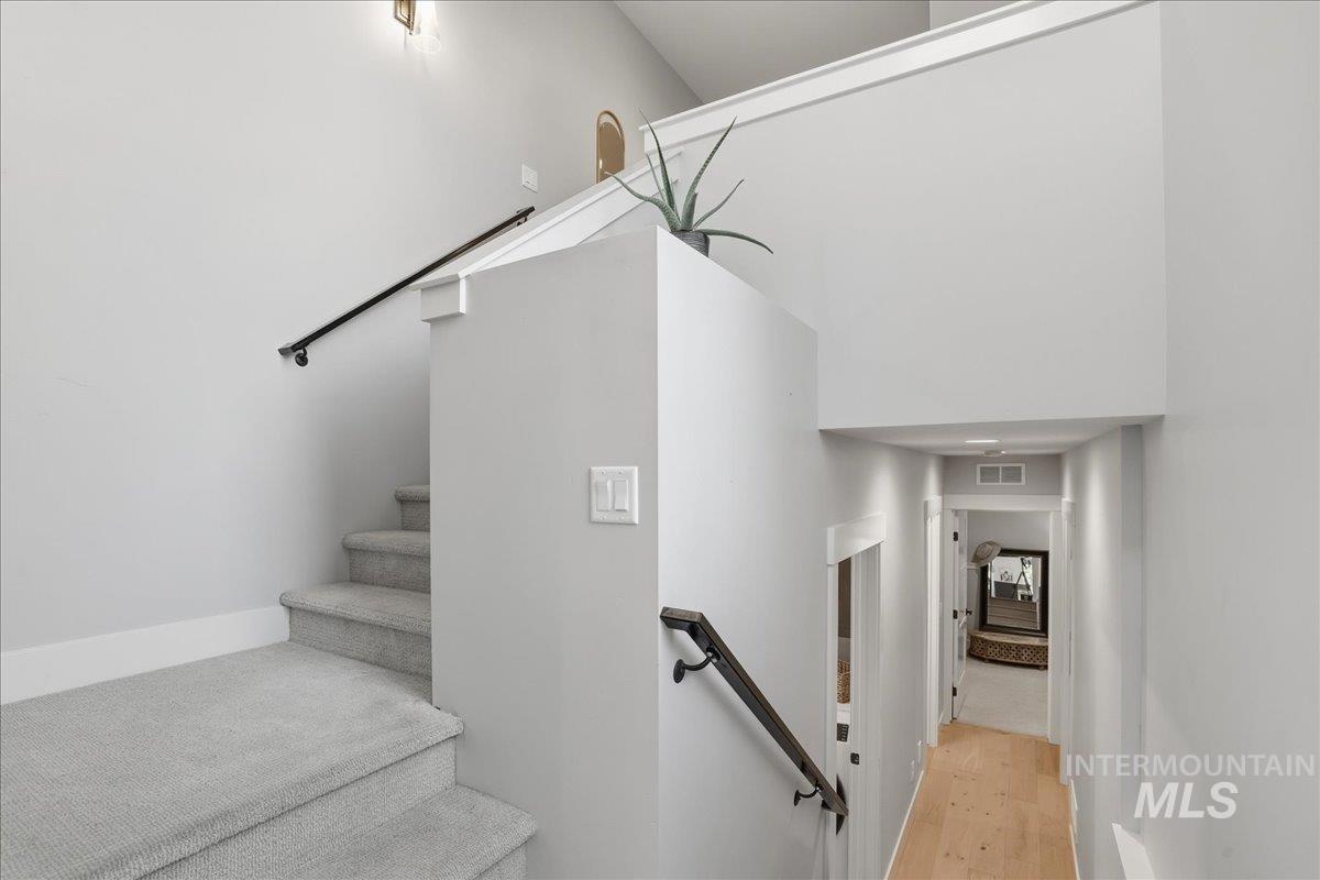 Re-introducing this architecturally striking home in the coveted North End Sunset Area - just minutes from Downtown, Hyde Park, and Camel’s Back Park. All New Pricing makes this home a super find! Designed by Glancy Rockwell & built by Shiloh Homes,this stunning residence showcases soaring 12’ ceilings in the main living areas & a seamless open-concept layout connecting the living, dining, & kitchen spaces.Expansive windows flood the home with natural light, while a contemporary gas fireplace adds a sophisticated focal point.The chef-inspired kitchen blends style & function with a Forno gas range & refrigerator, stainless steel appliances, a large island w/ seating for 4, walk-in pantry, and under-cabinet & baseboard lighting. The dining area opens to a peaceful courtyard patio, perfect for effortless indoor-outdoor living and al fresco meals. A spiral staircase leads to the recently added rooftop deck - an ideal setting for entertaining & enjoying Boise’s iconic sunsets.The private primary suite is filled with natural light & features a spacious walk-in closet, dual-sink vanity, & a luxurious walk-in shower. Loft makes a perfect home office or reading nook.Secondary BR`s are generously sized & share a full bath, plus half bath off the kitchen. Additional features include H/W floors in main living areas, tiled baths & carpeted BR`s, central forced heat & air, 2 car garage & NO HOA!