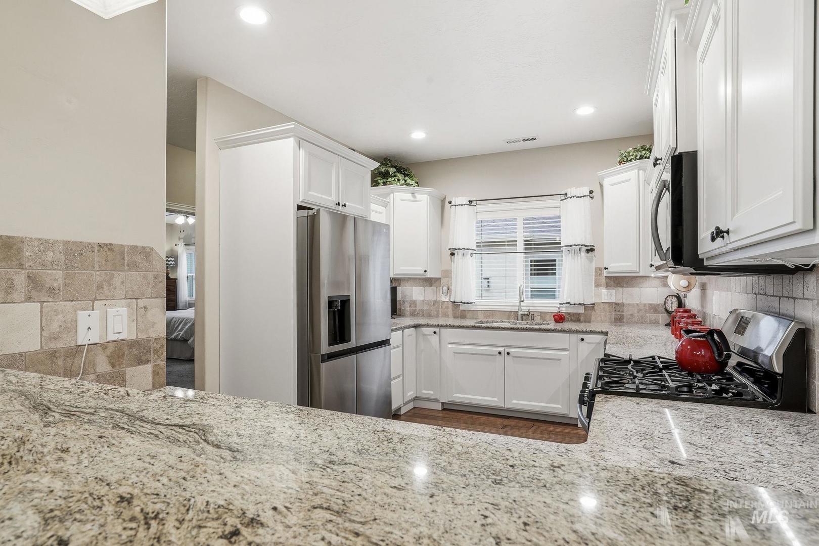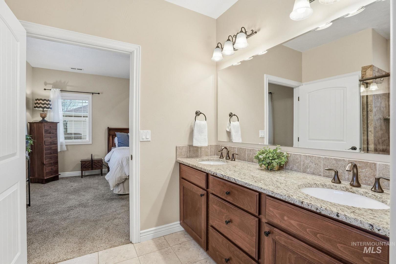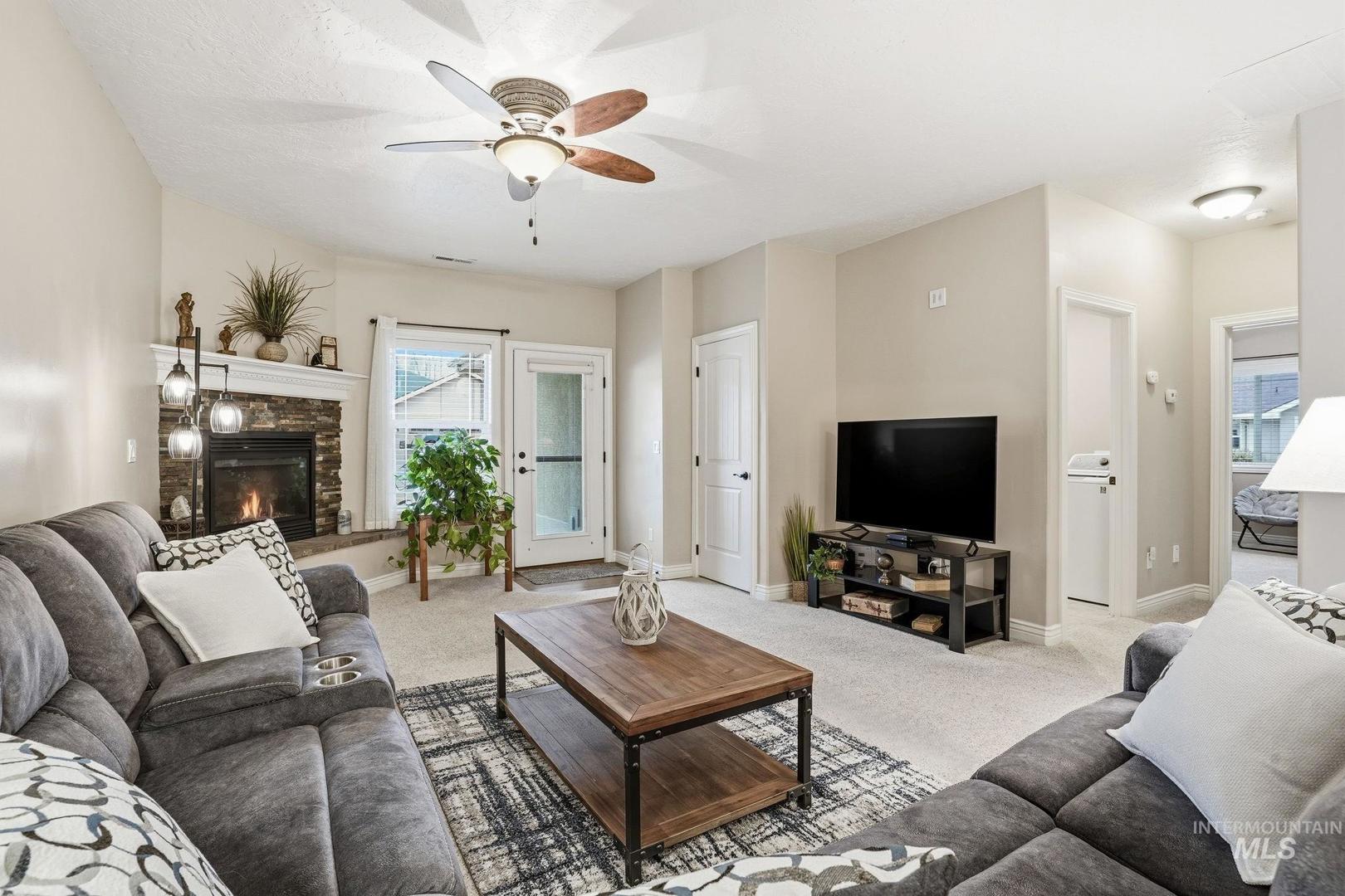 This impeccably maintained, single-level townhome is owned by its original resident and situated in one of Meridian`s most desirable areas. Enjoy a maintenance-free lifestyle, with the HOA providing care for common areas, lawn maintenance, tree upkeep, exterior water and sprinklers, snow removal, and landscaping. The thoughtfully designed layout offers over 1,600 square feet of living space and features numerous high-end upgrades, including granite countertops, engineered hardwood flooring, custom tile work and a beautiful stone fireplace. The spacious primary suite includes a walk-in closet and an en-suite bath with a tiled shower in excellent condition. A second bedroom also offers direct access to a full bathroom, allowing for flexible use as an additional suite. Recent updates include premium Low E glass storm doors installed at both entrances, a new water heater (2025), microwave (2024), conditioned crawlspace vent exhaust replacement (2023), resurfaced driveway, and updated carpeting. Hurry to secure this beautiful lock and leave home!
