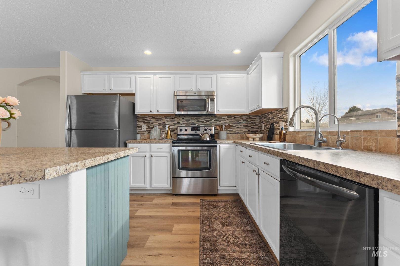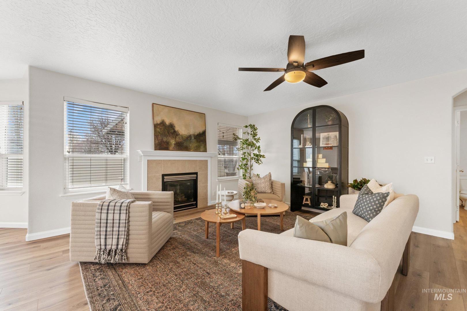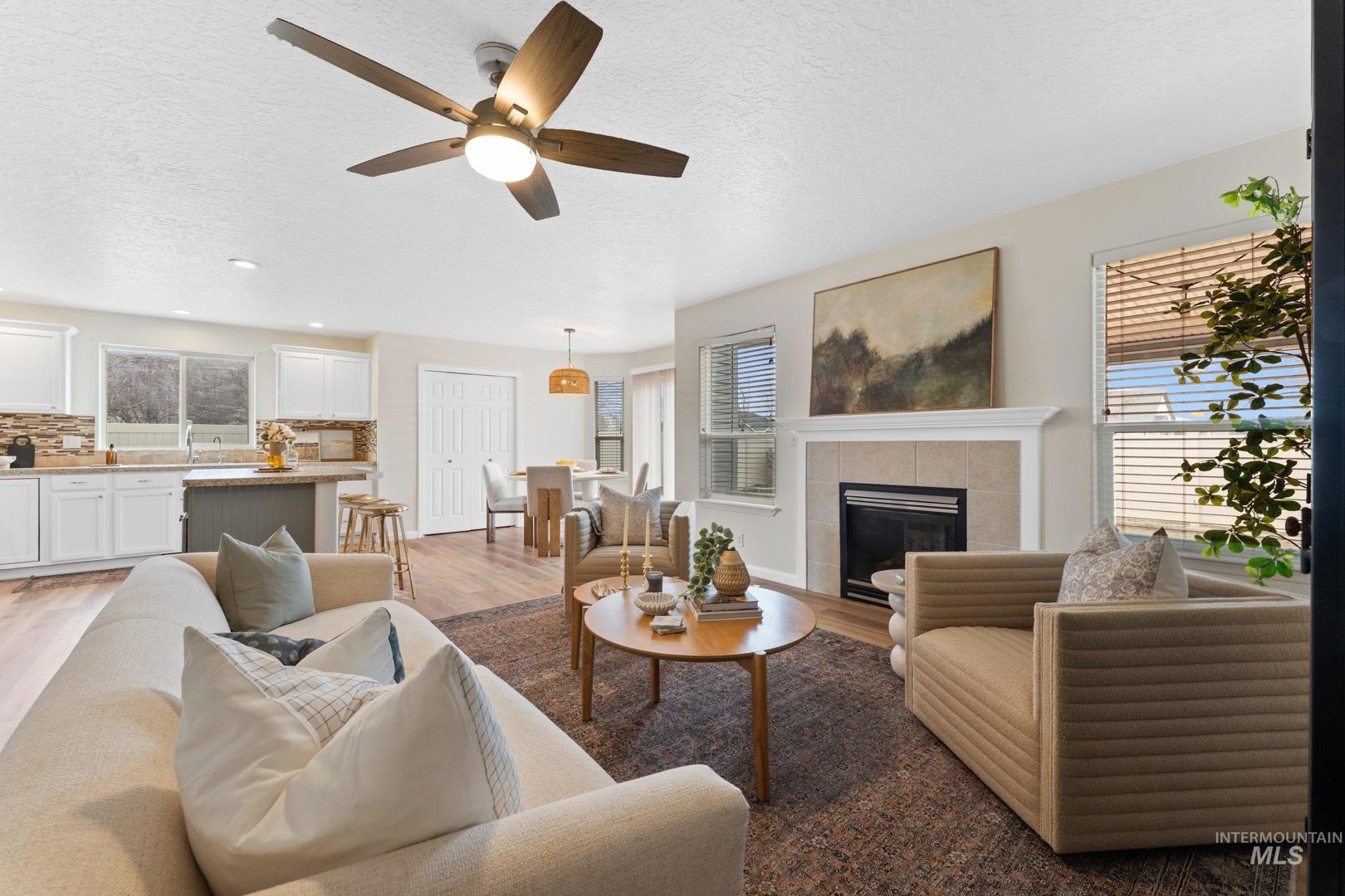 This spacious Nampa home offers a layout that feels both comfortable and intentional. The open main level is filled with natural light and flows effortlessly, featuring new LVP flooring downstairs, fresh interior paint, and a kitchen centered around an island—perfect for everyday meals, conversations, and gathering together. All appliances are included, making this home truly move-in ready. With 4 bedrooms, 2.5 bathrooms, an office, and a loft, there’s room for work, rest, and flexibility as life evolves. Upstairs, new carpet adds warmth throughout, and the primary suite provides a peaceful retreat with a walk-in closet, dual vanity, and soaking tub. Step outside to a backyard designed for connection and quiet moments alike. Enjoy evenings under the covered stamped concrete patio, tend to the garden, or relax by the propane fireplace, all surrounded by mature landscaping that adds privacy and character. A 3-car garage adds everyday convenience and extra storage. A welcoming home that offers space, comfort, and the flexibility to truly make it your own.