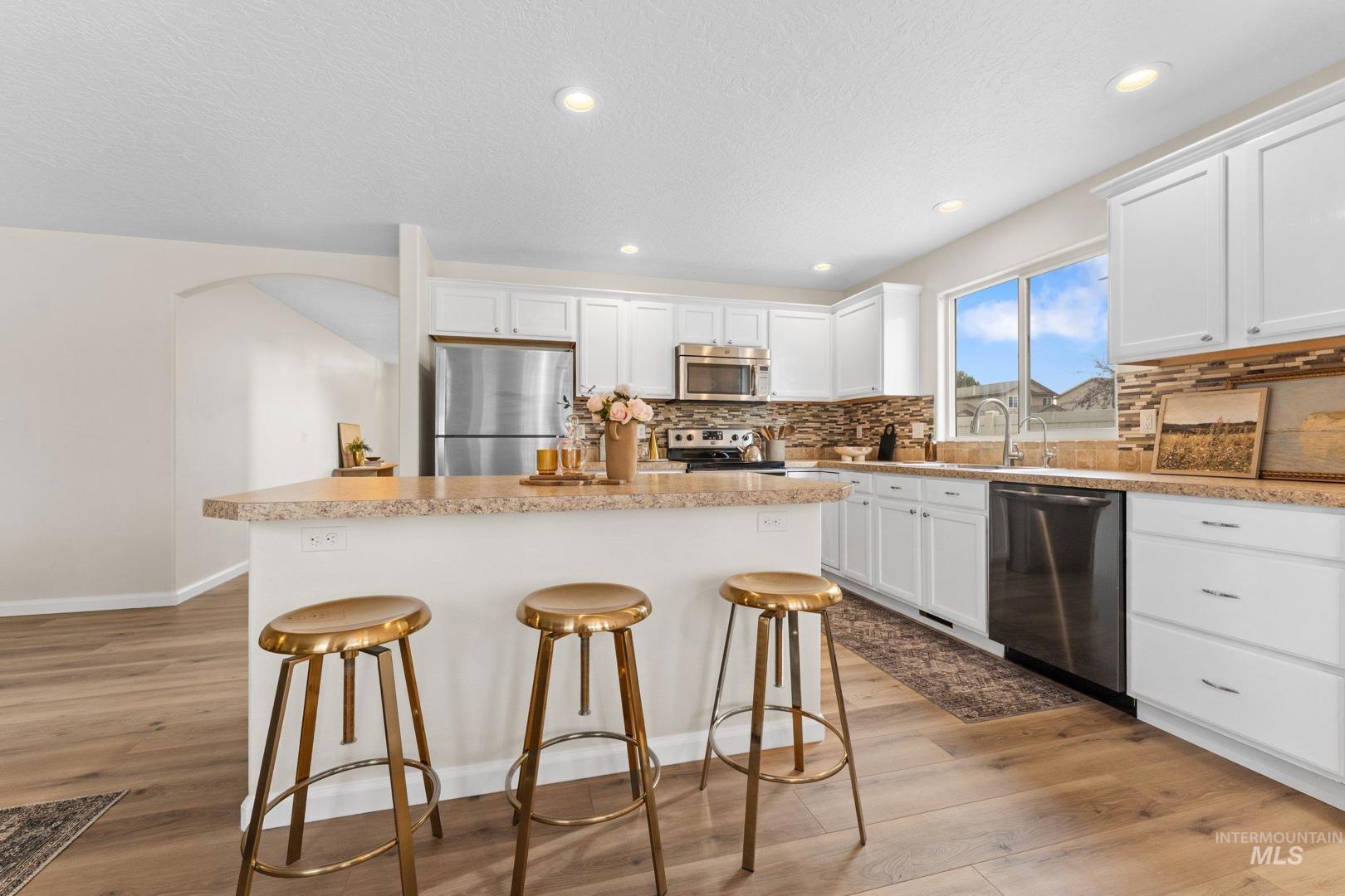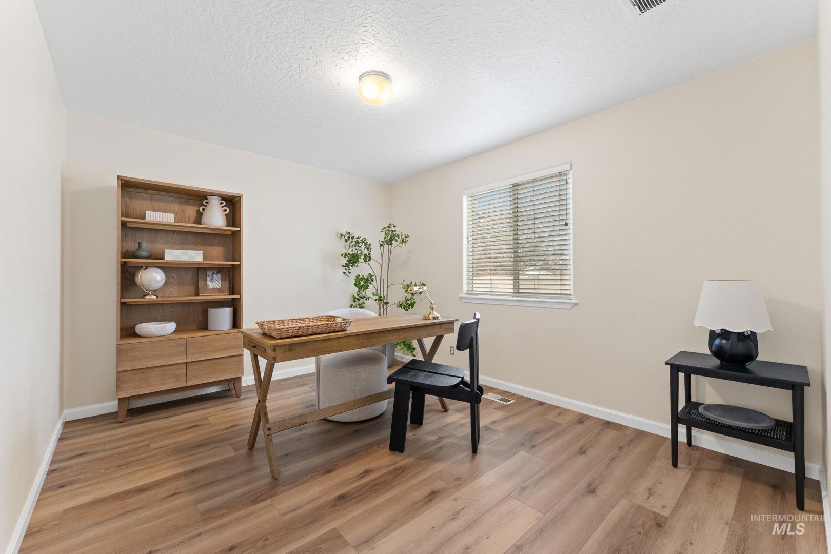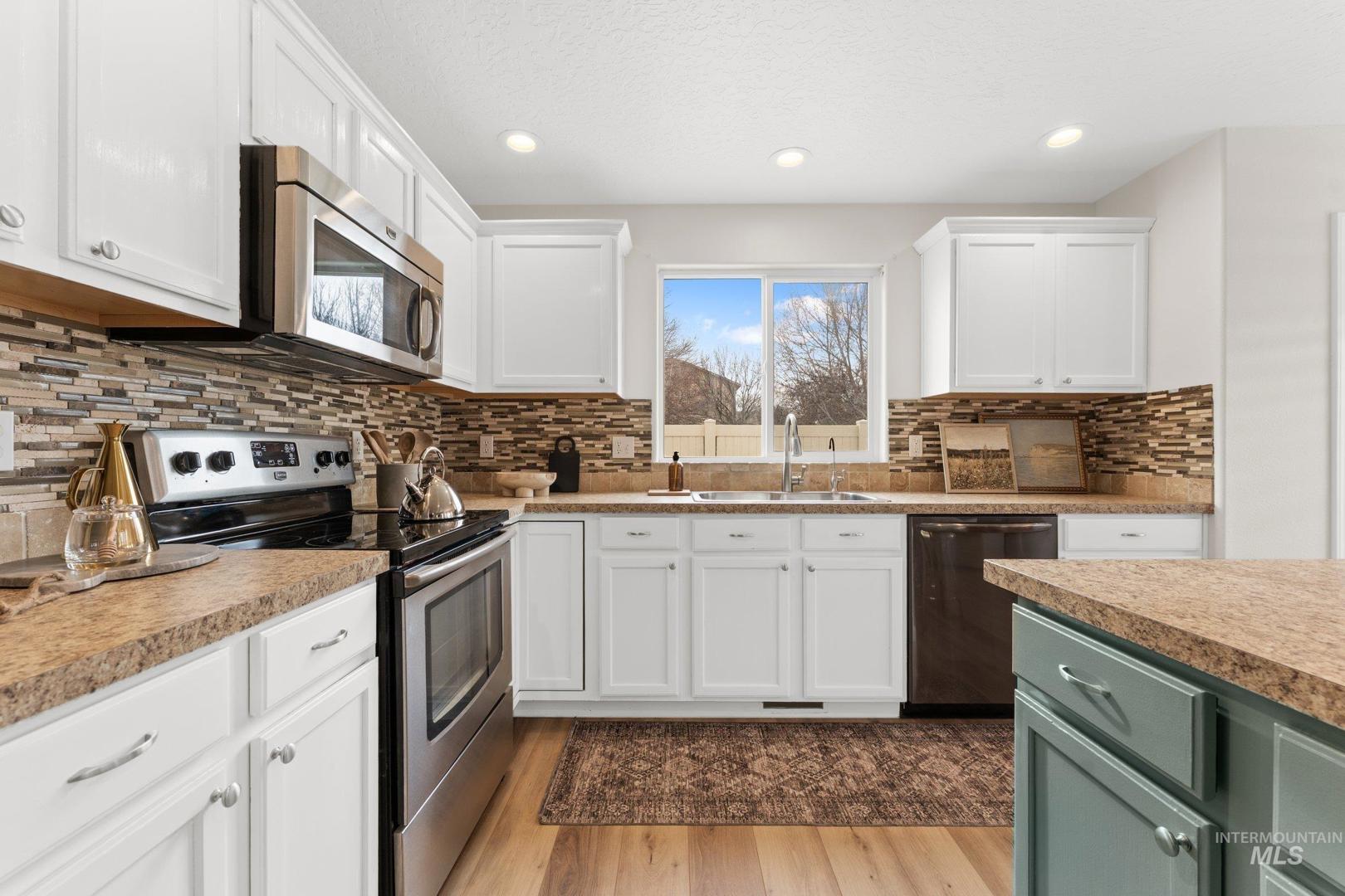 This spacious Nampa home offers a layout that feels both comfortable and intentional. The open main level is filled with natural light and flows effortlessly, featuring new LVP flooring downstairs, fresh interior paint, and a kitchen centered around an island—perfect for everyday meals, conversations, and gathering together. All appliances are included, making this home truly move-in ready. With 4 bedrooms, 2.5 bathrooms, an office, and a loft, there’s room for work, rest, and flexibility as life evolves. Upstairs, new carpet adds warmth throughout, and the primary suite provides a peaceful retreat with a walk-in closet, dual vanity, and soaking tub. Step outside to a backyard designed for connection and quiet moments alike. Enjoy evenings under the covered stamped concrete patio, tend to the garden, or relax by the propane fireplace, all surrounded by mature landscaping that adds privacy and character. A 3-car garage adds everyday convenience and extra storage. A welcoming home that offers space, comfort, and the flexibility to truly make it your own.