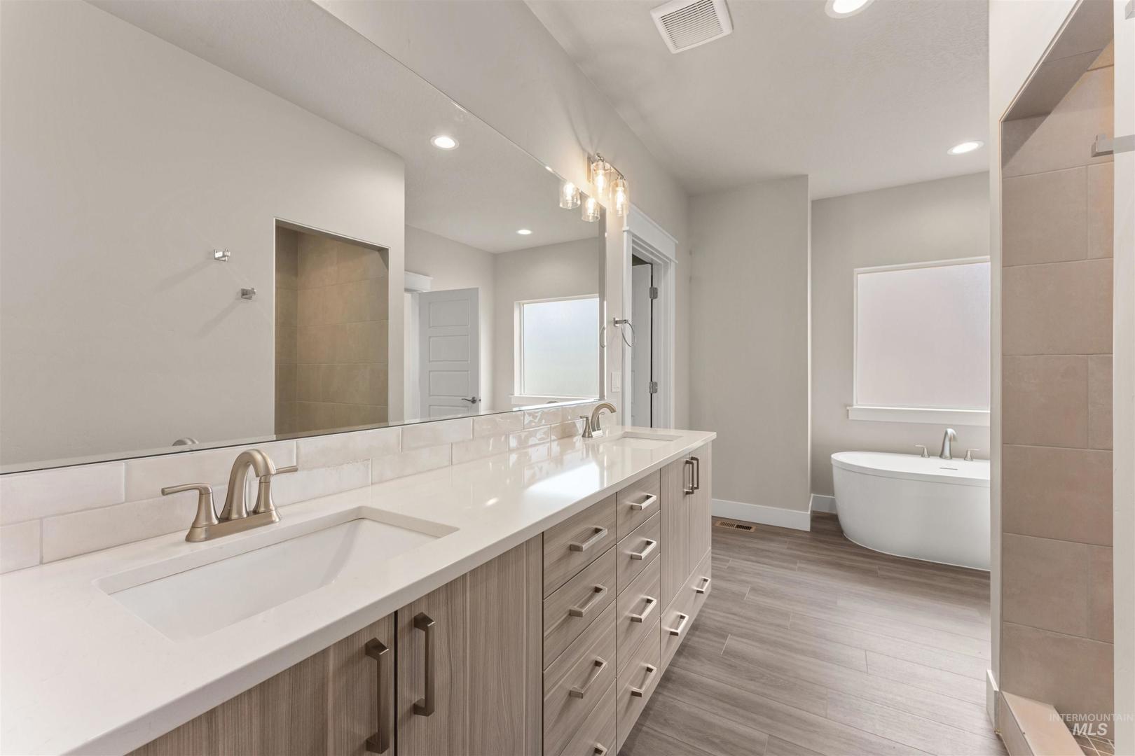 Lease Option (Rent to Own) available! Reach out for more information. Brand new home on a spacious lot in Pheasant Meadows! This stunning floor plan offers open-concept living with expansive living areas, durable LVP flooring, walls of natural light, a cozy gas fireplace, and a beautifully appointed gourmet kitchen. The kitchen features stylish neutral cabinetry, quartz countertops, an extended entertaining island, designer tile backsplash, and stainless steel appliances. The private primary suite includes a generous walk-in closet and a luxurious en suite bath with dual vanities, a freestanding soaker tub, and a fully tiled walk-in shower with direct laundry access. Two additional bedrooms plus an office (or optional 4th bedroom) complete the versatile and comfortable layout. Enjoy low-maintenance outdoor living with a covered patio, perfect for year- round relaxation. An oversized 3-car garage provides ample space for vehicles, storage, or recreational gear.