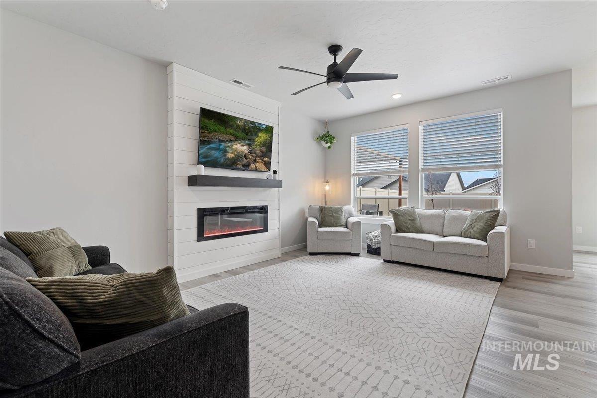 Welcome home to your new, meticulously maintained home you have been waiting for! A beautiful open entry welcomes you in to a peaceful living room and flows into the stunning kitchen that features a dreamy island and all stainless steel appliances. Enjoy your dining experience adjacent to living room which features vaulted ceilings where you can enjoy cozy evenings next to the warm fireplace. The large master suite is perfect with dual vanity and a large walk-in closet. The backyard is fully fenced and landscaped with a shaded covered patio for memory making as you host summer backyard barbecues. Don`t forget to take advantage of low maintenance raised garden boxes. This home is located in the heart of NW Meridian, close to school, shopping dining and the I-84.