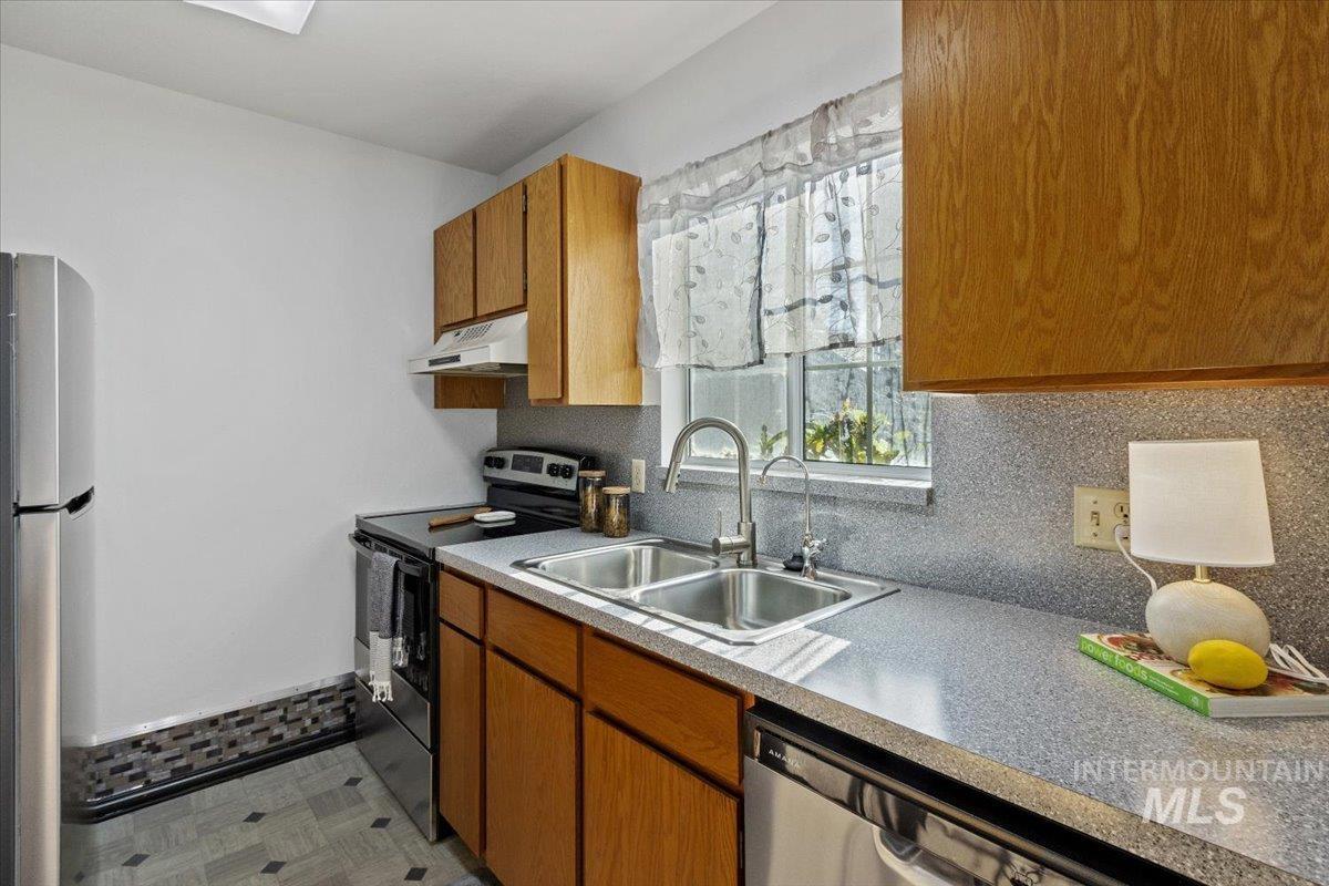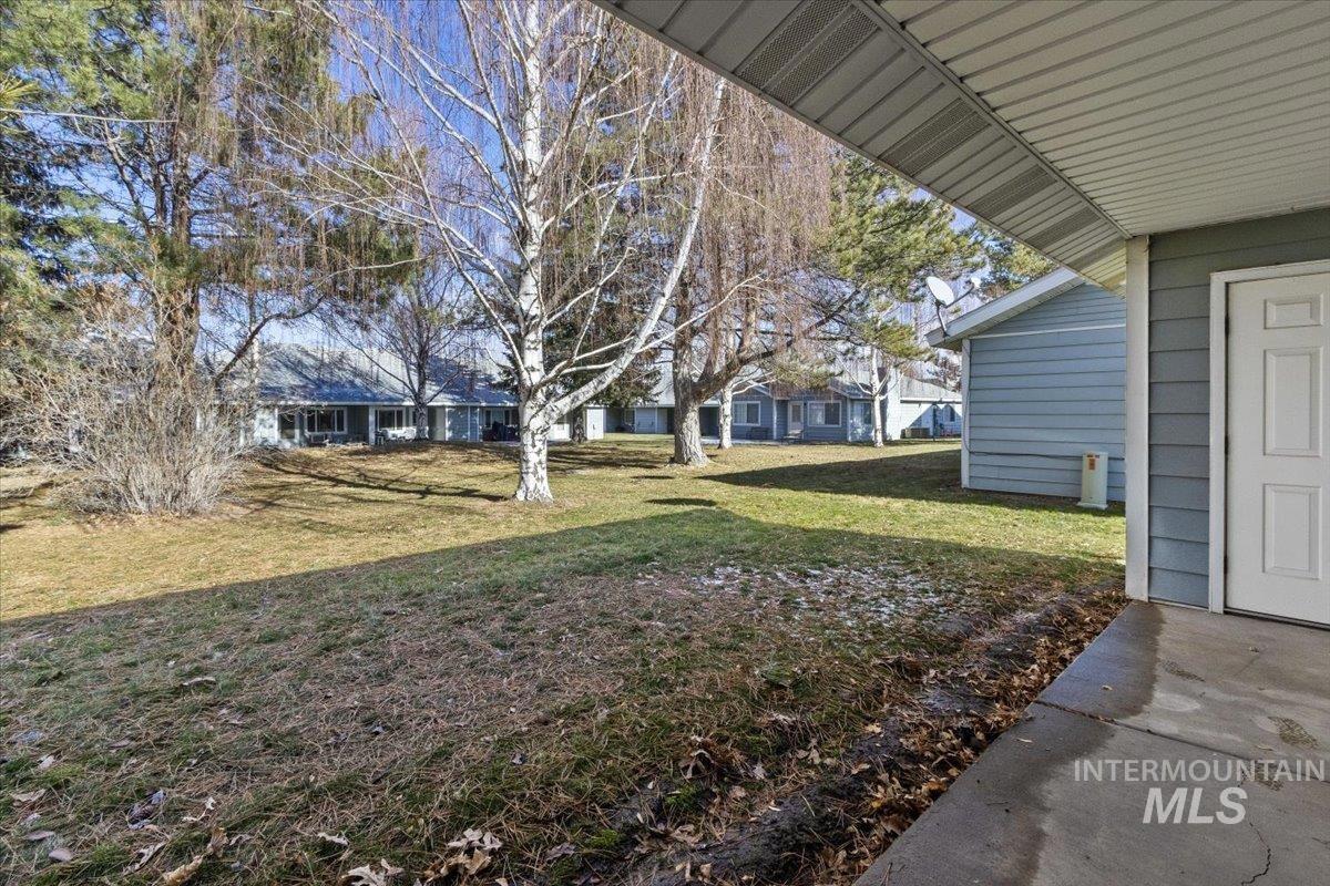 Updated and fresh 2 bedroom offers easy living. HOA takes care of mowing snow removal water and garbage This home is situated in a 55+ community with quiet neighbors. Updated with a new bathroom, walk- in shower, flooring and paint throughout. Kitchen has a new stove and dishwasher. Enjoy the evenings on the covered back patio that faces the tree lined park like setting. There is a clubhouse for gatherings and is located close to the city park.
