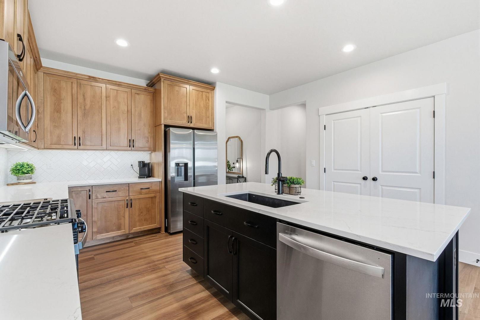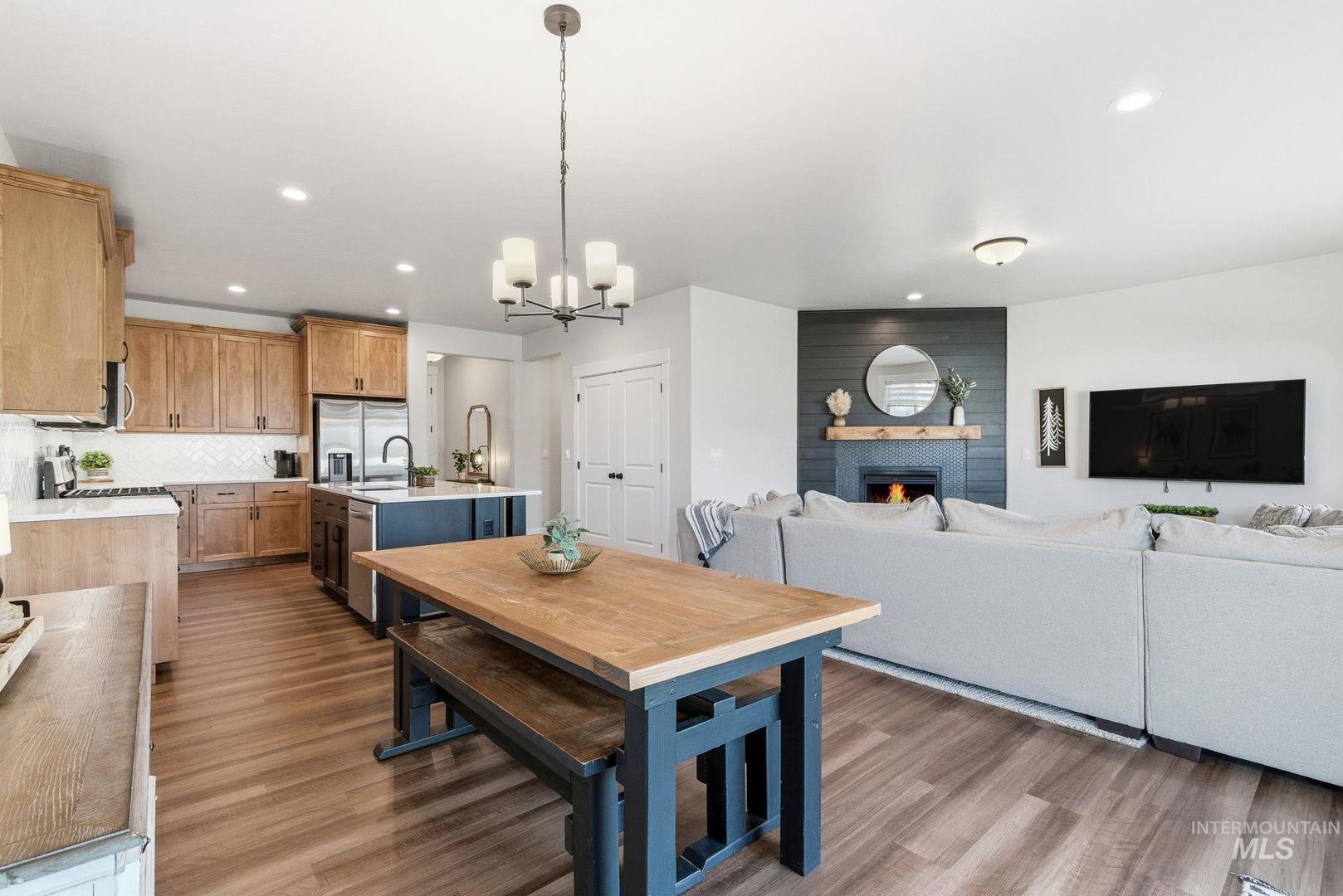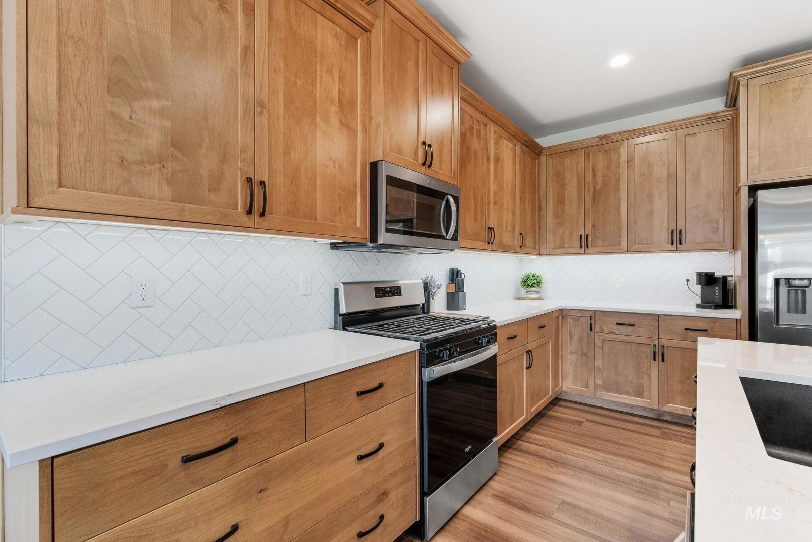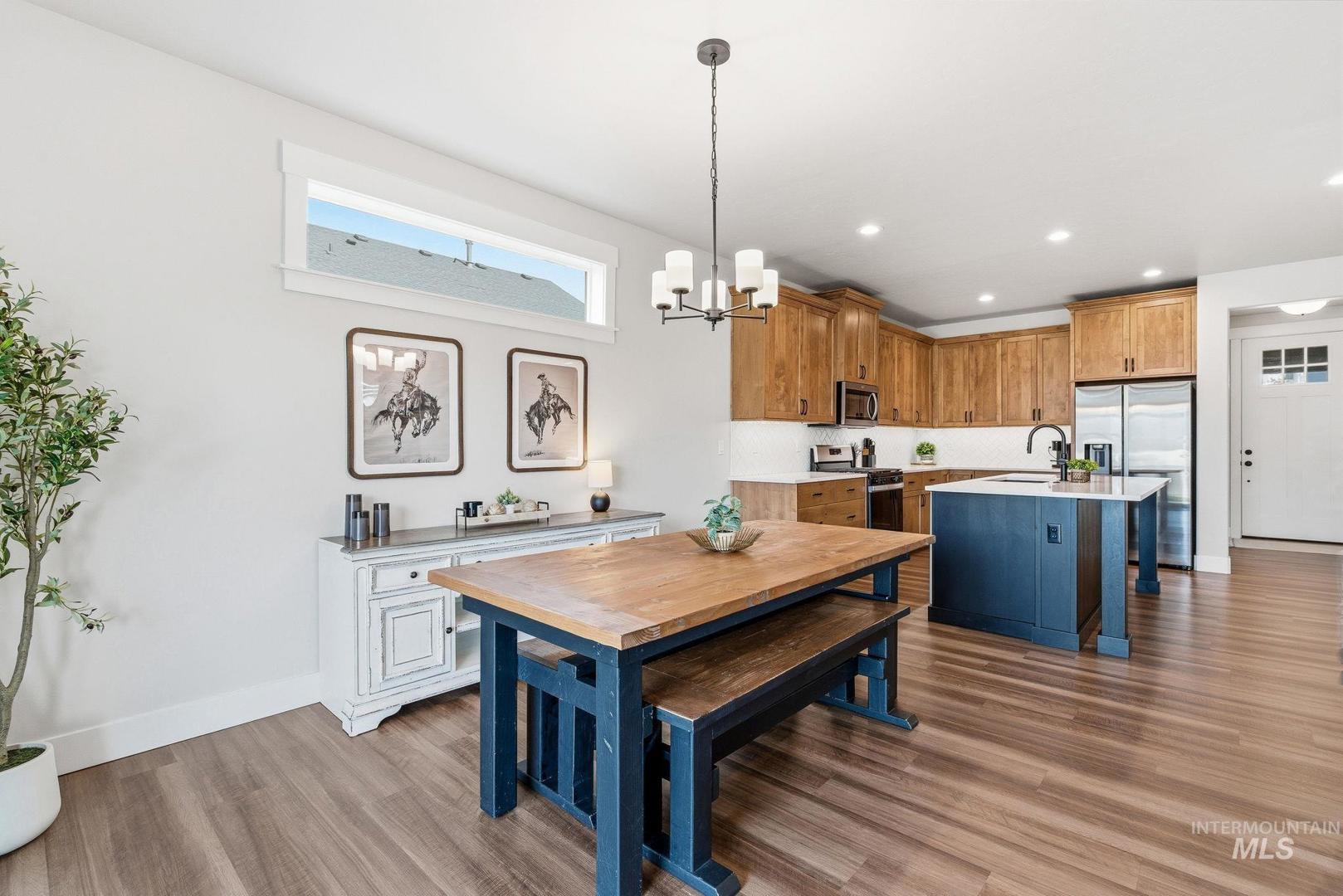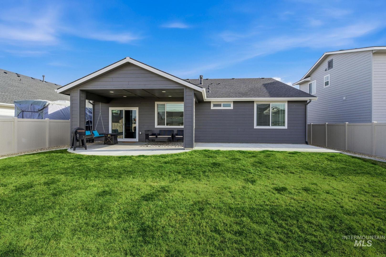 Highly sought-after Carriage Hill West home near Lake Lowell and RedHawk Golf Course! Enjoy minutes to boating, fishing, and all that Idaho living has to offer. This better-than-new 1,630 sq ft, 4-bedroom, 2-bath home features a fully landscaped, large backyard with a covered patio—perfect for entertaining. The extended-length garage is insulated and finished, offering excellent storage and workspace. Loaded with upgrades throughout. Community amenities include a pool and pool house, volleyball and basketball courts, and scenic walking paths.