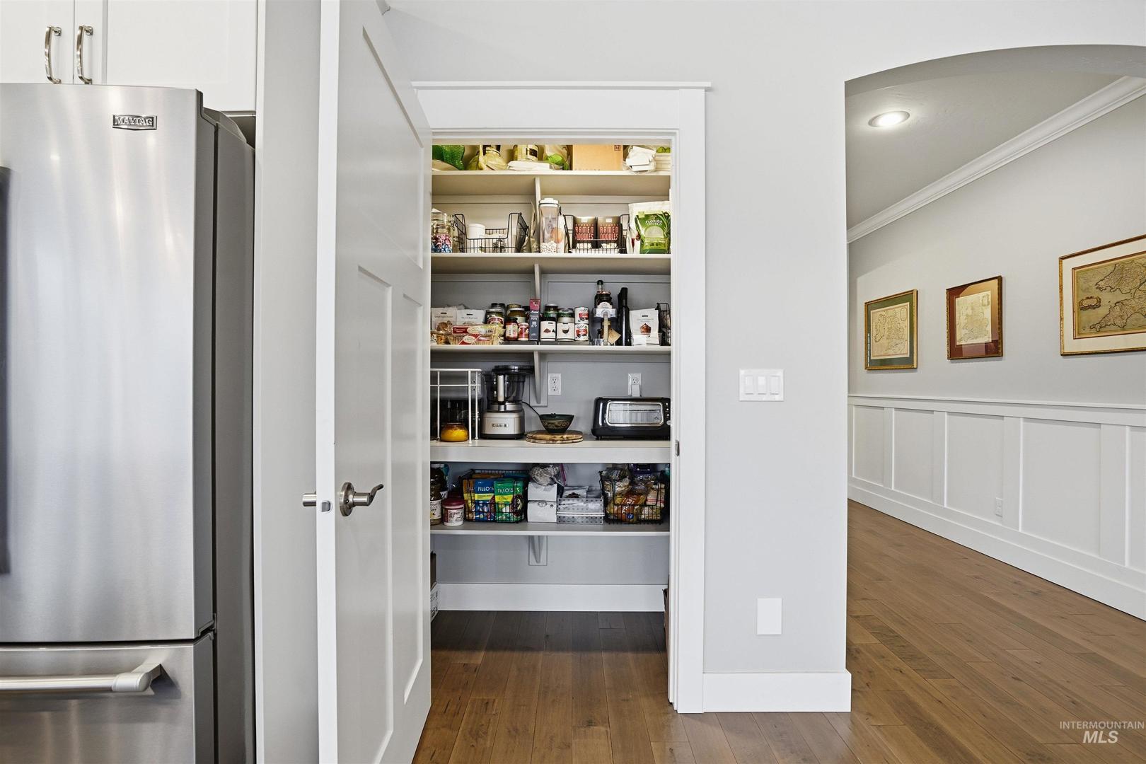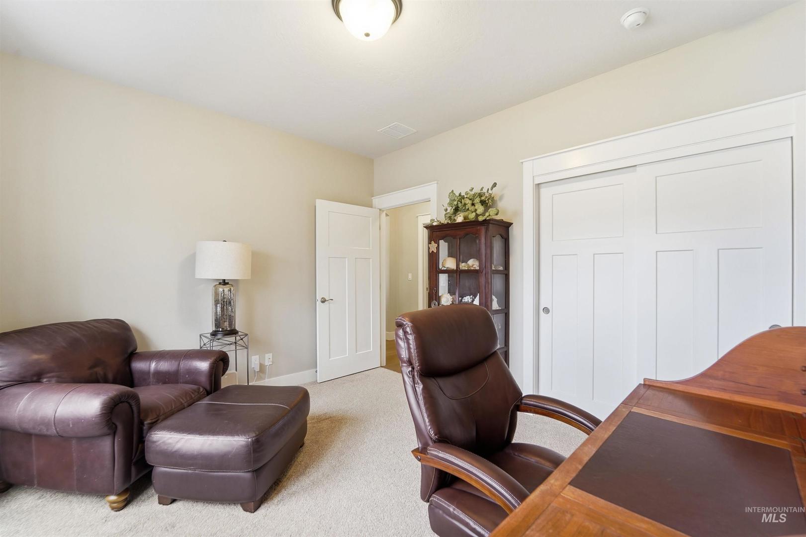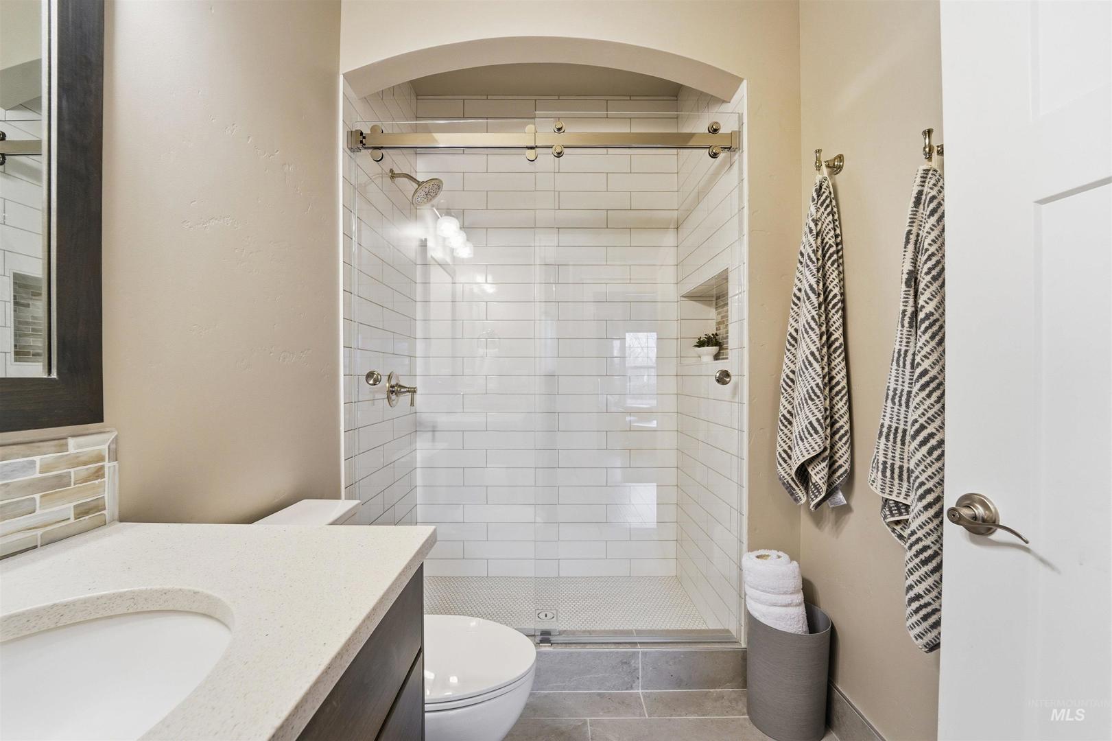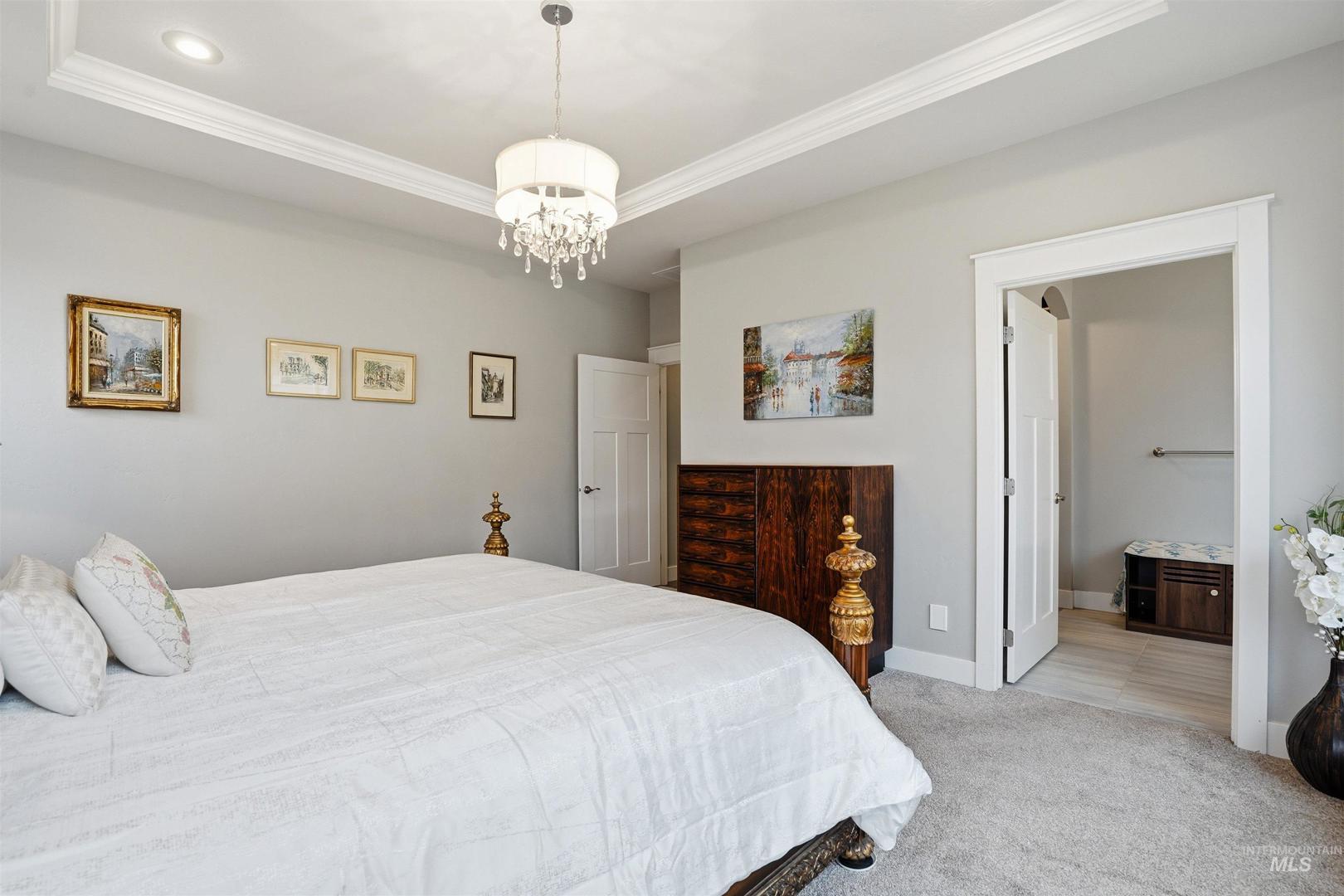 This single-level Todd Campbell home in coveted Ashbury offers elegant ambiance and architectural detail. A gracious gallery-style entry leads to a spacious light-filled open concept living area with custom coffered ceiling and gas fireplace. Three custom millwork window walls with luxe motorized top-down/bottom-up light-filtering honeycomb shades frame peaceful eastern views like artwork in the living and adjoining tray-ceiling dining area. The roomy chef’s kitchen, with pre-installed gas line, dual oven electric-convection range, quartz counters, tile backsplash, crowned cabinetry and large curved island provides effortless circulation and ample prep, serving, and gathering space. Upscale finishes extend throughout this move-in-ready retreat. The private spa-like primary suite has dual vanities, soaker tub, large zero-threshold shower, custom walk-in closet. Two additional bedrooms share an updated bath with a pristine tiled glass-door shower. Other highlights:1-yr old upscale HVAC adding to home’s energy efficiency, accessible living low-profile thresholds—wide passages—36” doors, beautiful hardwood floors, office nook, pantry, mudroom, laundry, oversized epoxy-floor garage, conditioned crawl, and covered patio. Close to top public and private schools, Costco, The Village. Enjoy Ashbury’s scenic walking paths, amenities, and a peaceful, elevated, and undeniably special home.