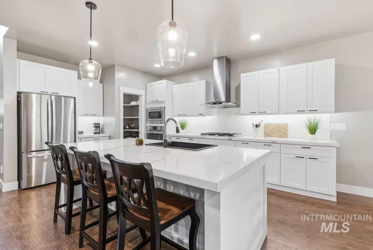 Welcome to this beautiful, 2025-built masterpiece in the heart of South Nampa. Offering the rare freedom of no HOA, this expansive 2,787-square-foot residence sits on a premier 10,019-square-foot lot. Designed with a perfect blend of style and function, the open-concept main floor features a gourmet kitchen that is truly the heart of the home. It boasts designer matte-finish countertops, a massive center island for casual dining, and a spacious walk-in pantry. The highly desirable layout features a main-level primary suite that serves as a private retreat, complemented by an additional main-floor bedroom perfect for a dedicated home office. The second story expands your living space with a massive bonus room—ideal for a theater, gym, or second family room—along with three more generously sized bedrooms. The standout feature is the oversized 940-square-foot, four-car tandem garage. With three garage doors and an extra-deep bay.
