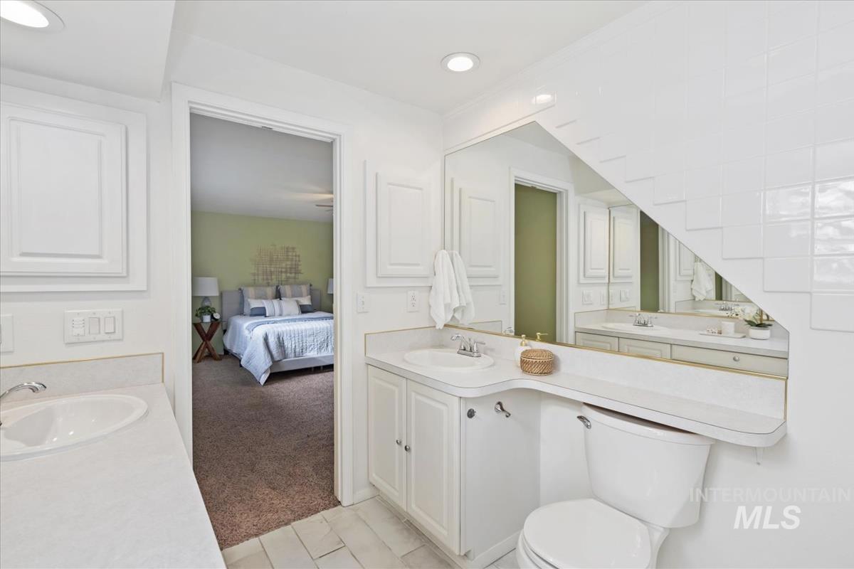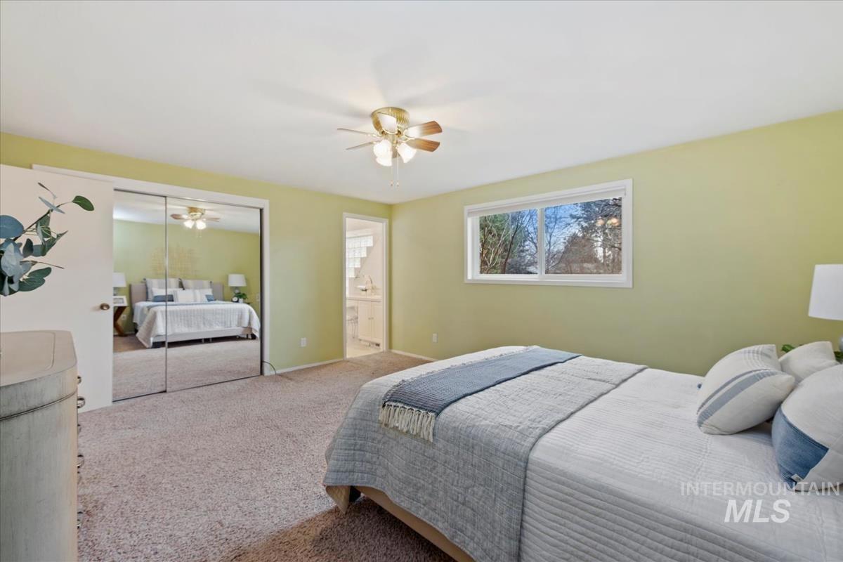 Set on an impressive 0.413-acre lot in South Boise, this beautifully maintained property offers the space and freedom you’ve been looking for without HOA dues! Inside, the open floorplan is filled with natural light from large windows, creating a bright and welcoming atmosphere throughout. The cozy bonus room features a charming wood stove and flows seamlessly into the kitchen and out to the backyard patio, making it an ideal space for entertaining or relaxing year-round. The primary bedroom is generously sized and includes an ensuite bathroom with dual vanities. Outside is where this property truly shines. The expansive backyard is beautifully framed by mature trees that offer natural beauty and shade, and is complete with a storage shed and raised garden boxes creating a serene and functional outdoor retreat. With ample room to add a shop, pool, or expanded garden, the possibilities are endless. A graveled side area with a large gate provides space for vehicle parking or a small trailer. This South Boise gem delivers privacy, versatility, and room to grow, all in a highly desirable location.