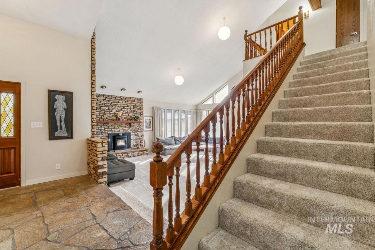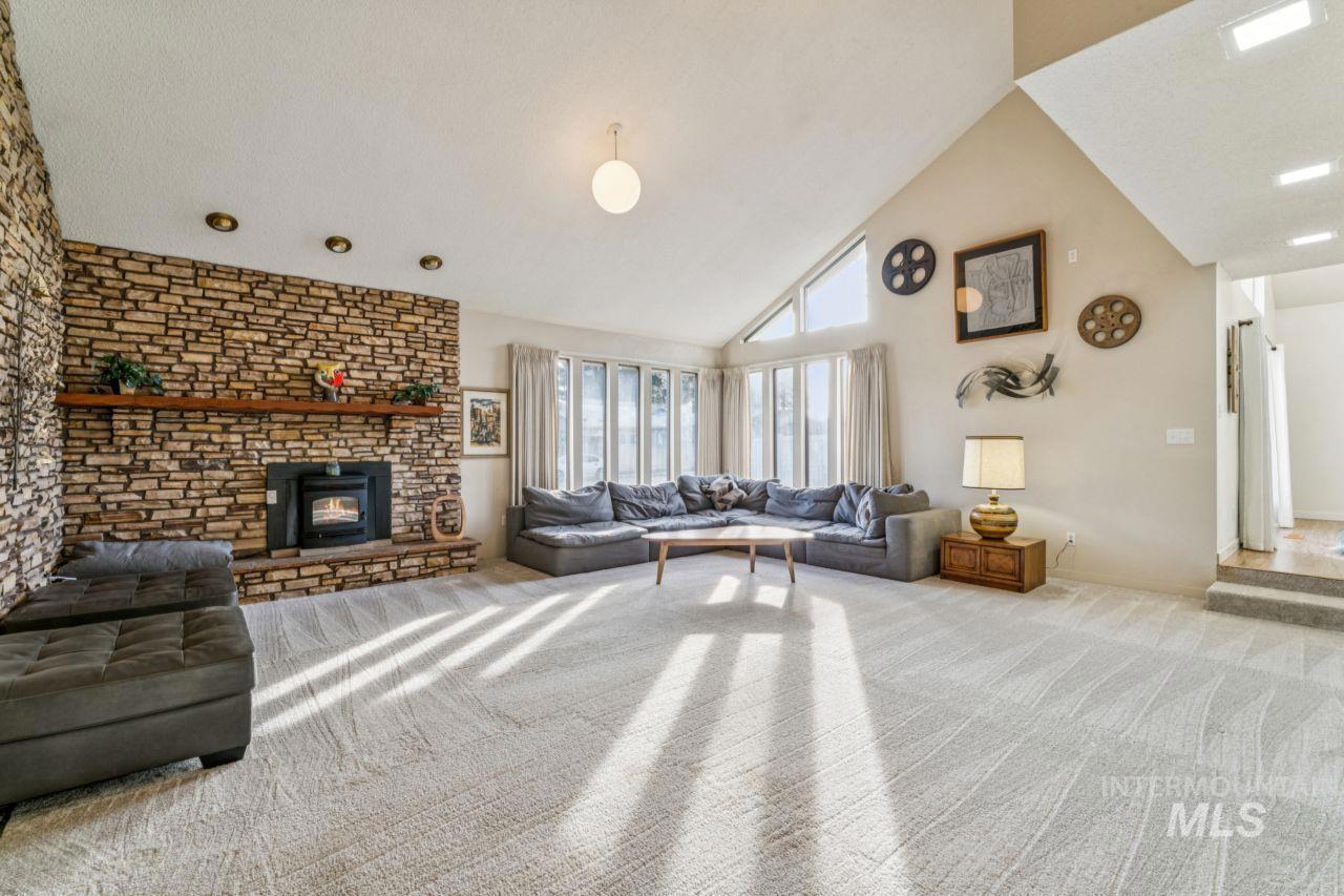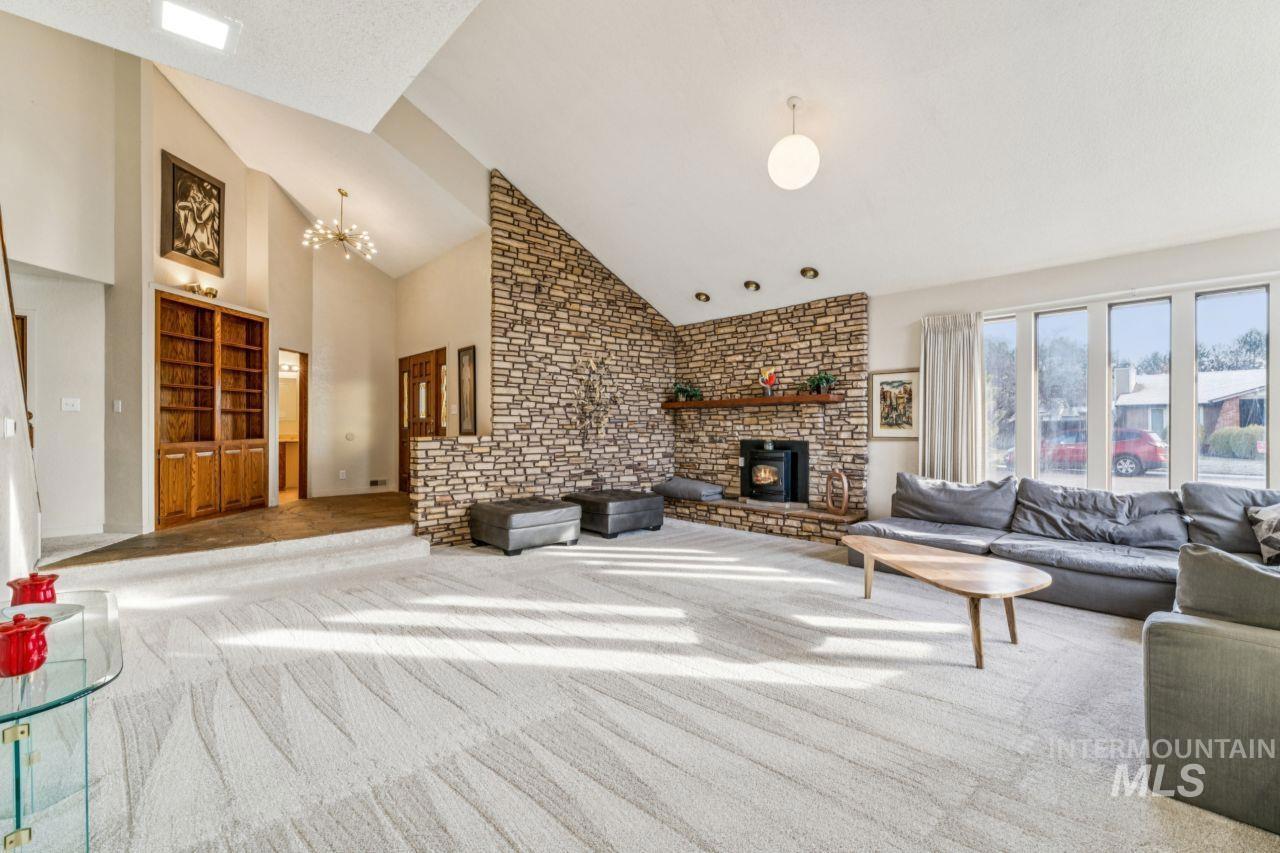 Don’t miss your chance to own this beautifully remodeled 3-bedroom, 3-bath residence where timeless elegance meets effortless living. Step inside to a bright, expansive living area highlighted by soaring ceilings and a dramatic floor-to-ceiling stone fireplace—an instant showstopper. The chef-inspired kitchen is ready for action with butcher block countertops, quality appliances, and abundant storage. Each bathroom with stylish mid-century fixtures and finishes, delivering both luxury and function. Modern comforts abound, including plumbed central vacuum, central air conditioning, electric forced-air heat, pellet stoves and a full sprinkler system. Outside, a spacious backyard framed by mature trees offers the privacy and space everyone is searching for. Tucked into a quiet, welcoming neighborhood close to parks, shops, and schools, this home checks every box—and homes like this don’t last. Act now and schedule your showing today before this mid-century modern home is gone! $0 HOA