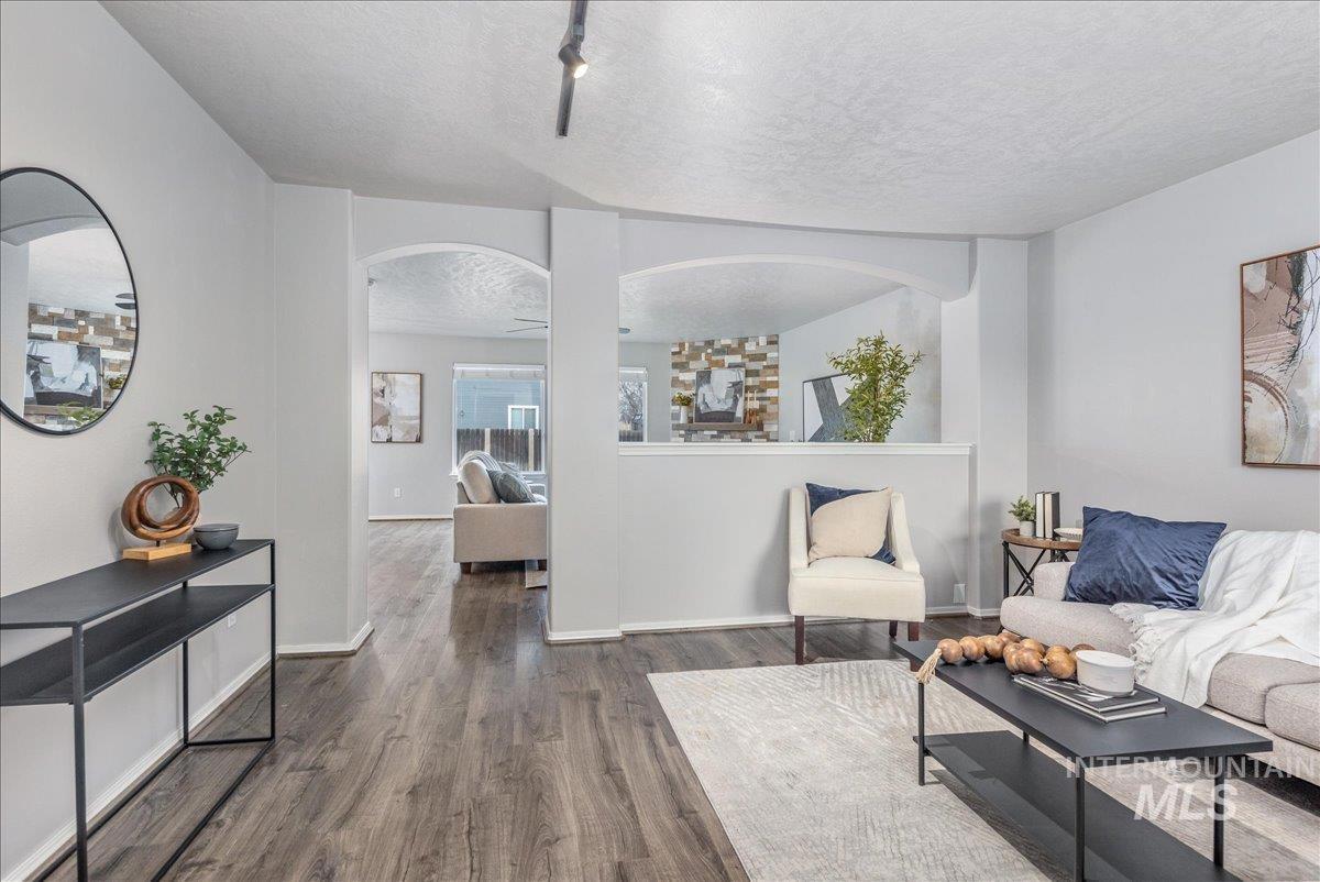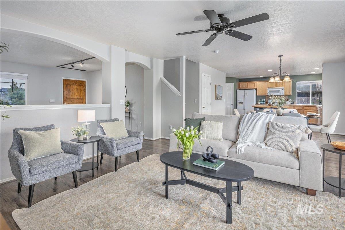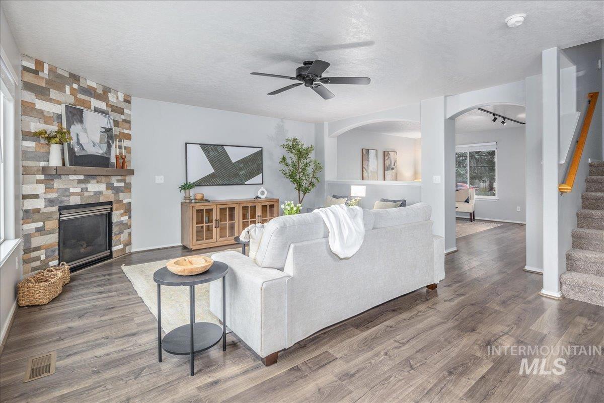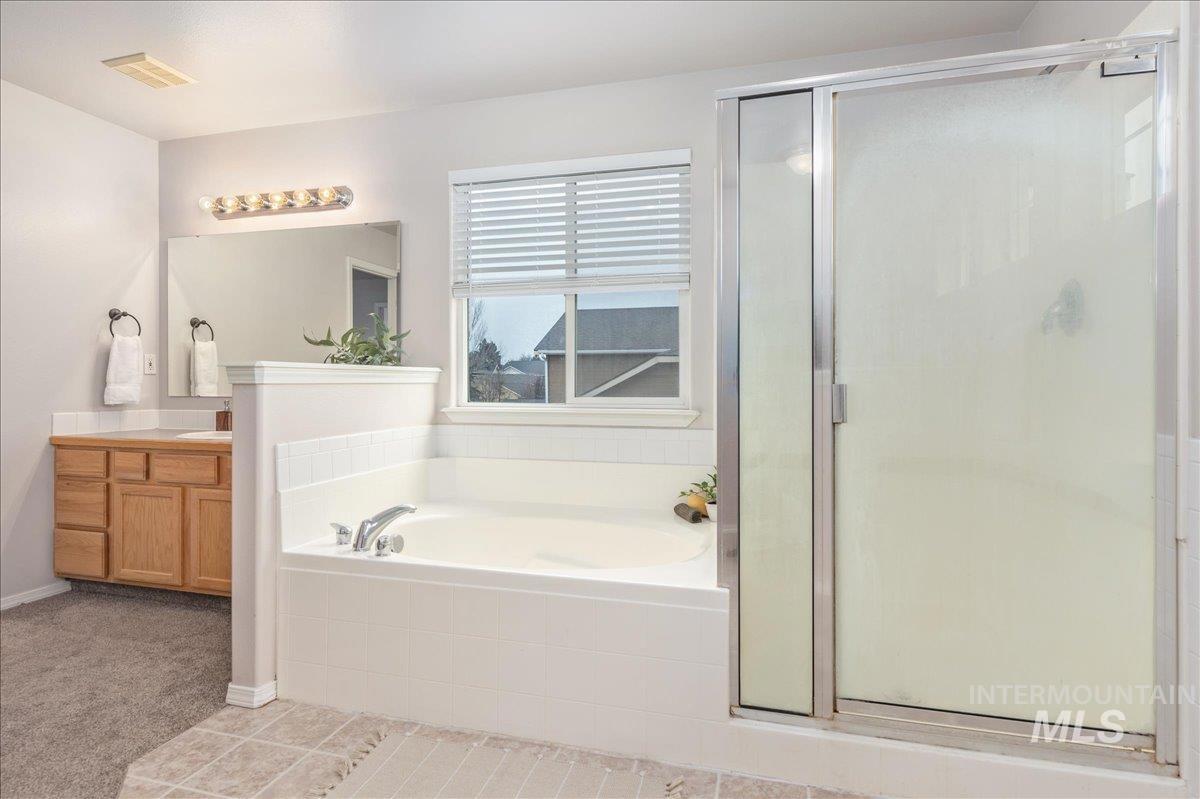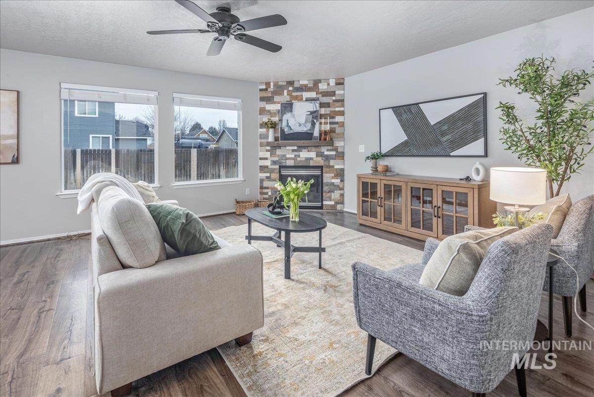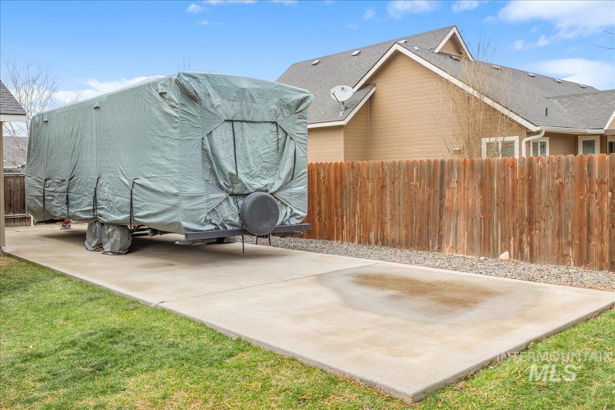 If RV PARKING & STORAGE are on the top of your list, you`ll love this one! Spacious 4 Bedroom craftsman style home features a welcoming covered front porch, stone accents, & extended RV parking. Exceptional thought has gone into functional storage in this home with an oversized 23x32 three-car garage, extra concrete parking, a gated 12x50 RV or boat parking pad, and an impressive 230 sq ft storage shed addition — a perfect solution for your tools and toys. The large kitchen is open to the dining and living room, complete with a center island, breakfast bar, oversized walk in pantry, and corner sink with window overlooking the spacious back yard. The home offers both separate living and family rooms, highlighted by a cozy gas fireplace with floor to ceiling stone surround. Retreat to the expansive primary suite featuring a walk-in closet, separate soaking tub, and step-in shower. Outside you`ll find mature landscape, a fully fenced yard, and plenty of space to play. Conveniently located with quick and easy freeway access. Less than 2 miles to extensive shopping, dining and entertainment options at Treasure Valley Marketplace + St Lukes Hospital and health plaza. This one has it all!