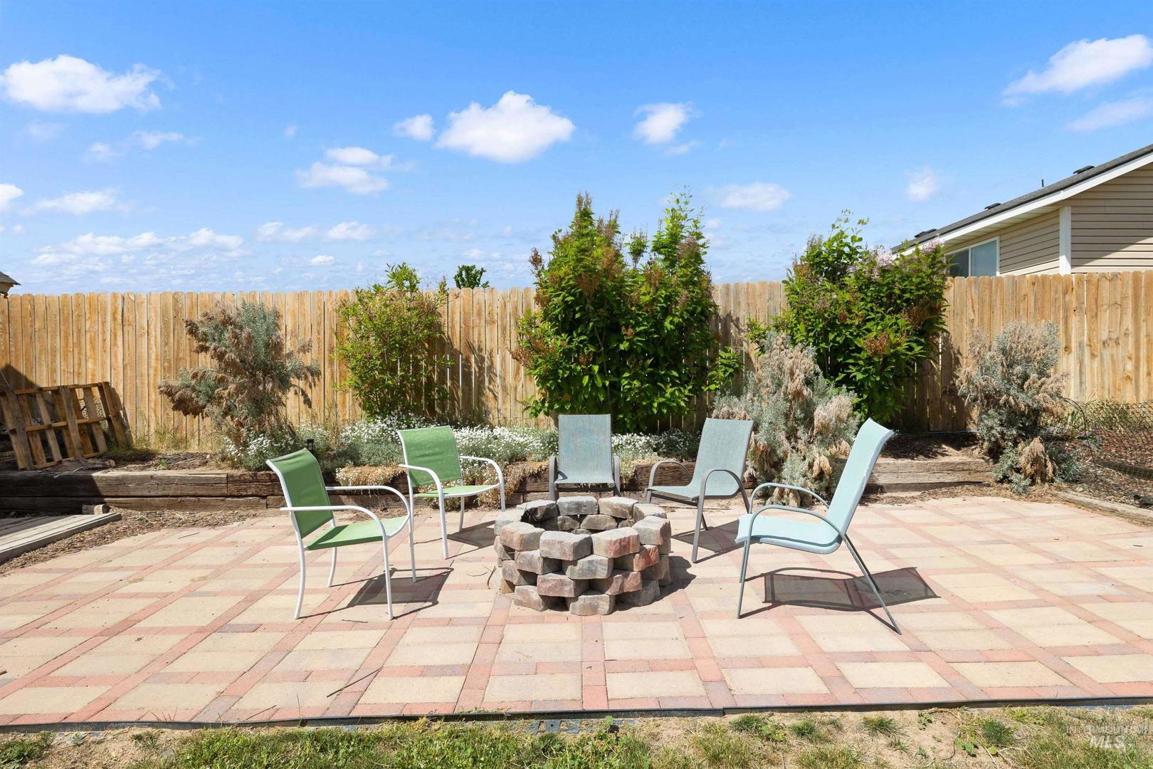 Welcome to this well-maintained 3-bedroom, 2-bath home with a dedicated office/flex room, built in 2007 and offering 1,678 square feet of comfortable living space on a 0.21-acre lot. The open-concept layout features a bright living area that flows seamlessly into the kitchen, which includes a breakfast bar, ample cabinetry, and all major appliances—stove, refrigerator, microwave, and dishwasher. The primary bedroom includes a fireplace, walk-in closet and private ensuite bath. Two additional bedrooms and a generously sized office provide flexible options for work, guests, or hobbies. Additional features include a forced-air gas furnace, central air, and a two-car garage. The fully fenced backyard offers mature trees, underground sprinklers, a large storage shed, and a firepit—ideal for outdoor enjoyment. Located in an established neighborhood with convenient access to schools, parks, and local amenities.