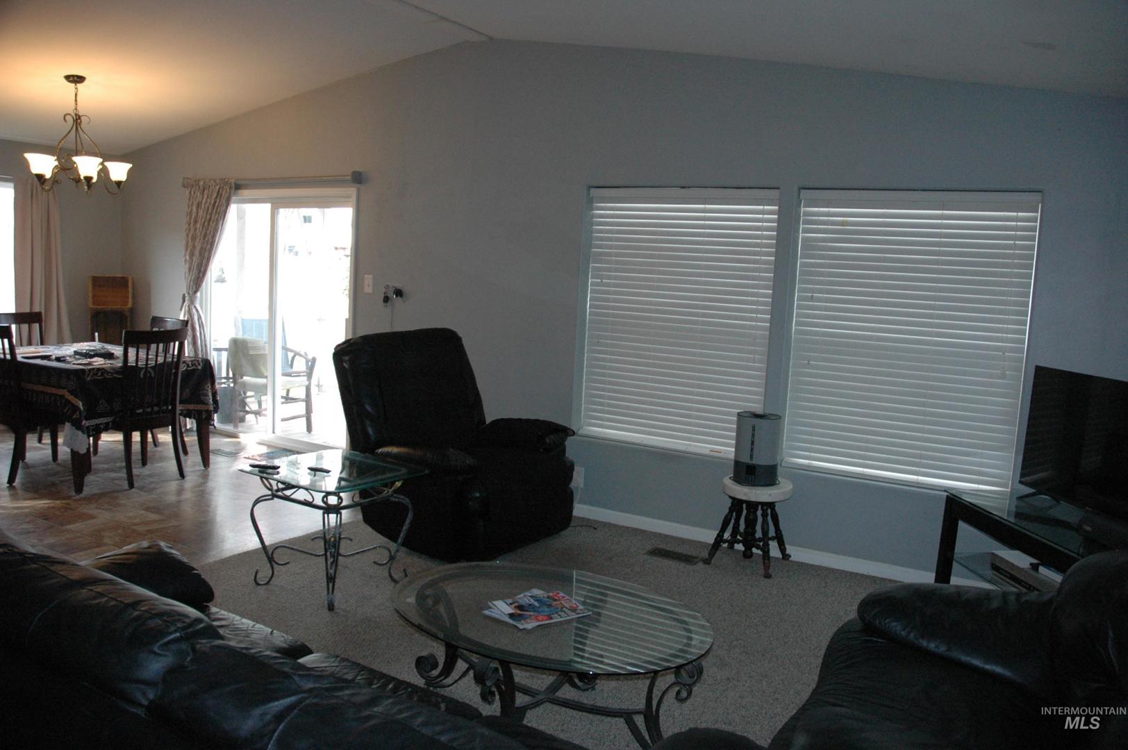 Hard to find, well kept home in the Snake River Resort, along the Snake with access to the river with community dock and covered pavilion. This home has a large covered deck on the front, parking for 3 cars with overflow at the back for additional parking for vehicles. There is 200 amp electrical service with the addition of 6 outlets around home. Large master bath with dual vanities with separate tub/shower, separate laundry room with outside access. Large living room open to dining and kitchen areas. Space rent is $600/mo including sewer, water, trash and Irrigation.