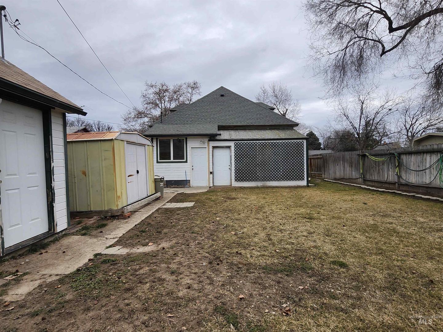This Nampa charmer has so much to offer - beautiful custom kitchen cabinetry that was thoughtfully designed for space utilization, and an adjacent workspace with clever built-in shelving to accommodate an office, crafting, or general purpose work area. The cozy primary suite upstairs has it`s own full bathroom with custom tile, and a total of 3 closets. The bedroom on the main floor also has ample closet space, and a non-egress 10x12 finished bonus room downstairs could be used for an office, storage, or movie room. Everywhere you turn, this home has shelving, built-ins, closets, cubbies, and so much STORAGE space! The single car detached garage has power and has been converted to a workshop, but could easily accommodate a car if a garage door was installed. In the alley, there is ample space to park an RV, and attached to the house is another workshop or garden shed. The front porch is handicap accessible with a ramp to accommodate a wheelchair, and a retractable awning to enjoy sitting outside without getting baked by the hot Idaho sun. A flower bed border exists around the parameter of the property to satisfy any gardener. This house has so many unique features - with a little TLC and vision this modest house with a big heart can easily become your dream home!