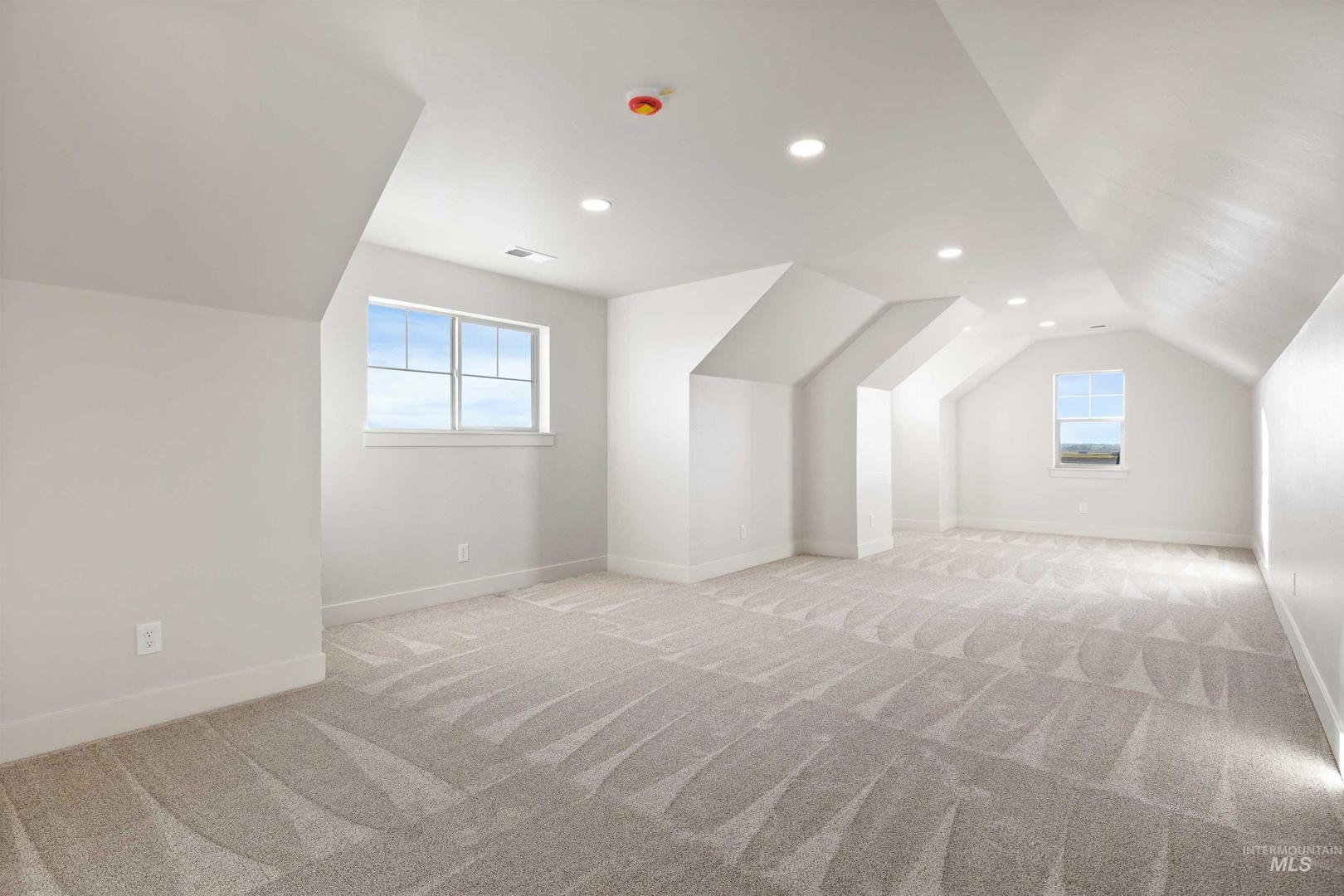 Brand new construction, This beautifully finished 3 bedroom 2.5 bath home offers1985 sq ft above grade plus a 770 sq ft unfinished basement ready for storage, a home gym, theater room, or a custom space to fit your needs. striking stone exterior paired with Hardie board siding creates timeless curb appeal, while the fully finished and insulated garage adds year-round comfort and functionality. Inside, the open concept layout is bright and welcoming, centered around a stunning kitchen featuring a large quartz island, gas stove, tile backsplash, upgraded lighting and cabinets, and quartz countertops throughout the kitchen and bath rooms. Just off the garage, a convenient mudroom and half bath creates the perfect everyday drop zone. Step outside from the kitchen to the walk-out patio, ideal for relaxing or entertaining. Upstairs you will find all three bedrooms including the primary suite with a full bathroom , a additional full bathroom, laundry room, plus a large bonus room over the garage- perfect for a second living area, office, or playroom. Bathrooms feature tile floors, dual sinks with tile surrounds for a clean, modern finish. Dual-zone heating and air conditioning keeps temperatures comfortable on all levels year around. Move in ready with brand-new everything, quality finishes, and room to grow, this home combines style, comfort, and flexibility in one beautiful package.