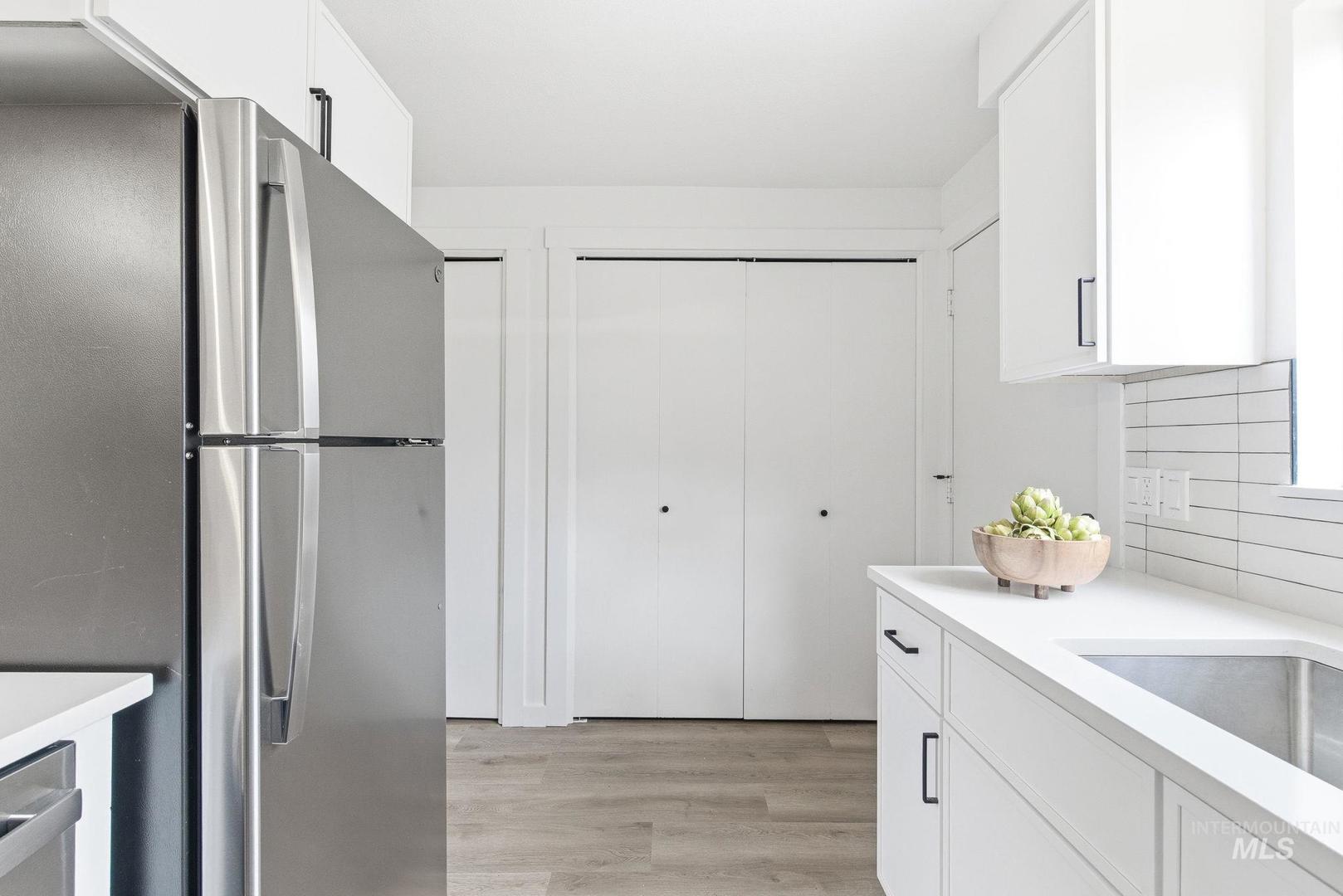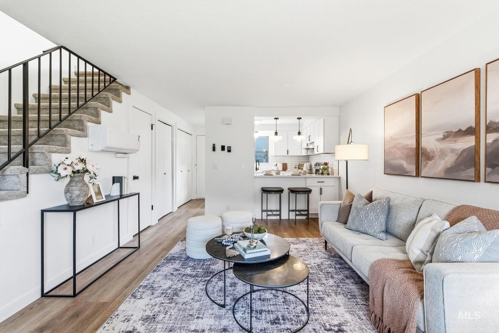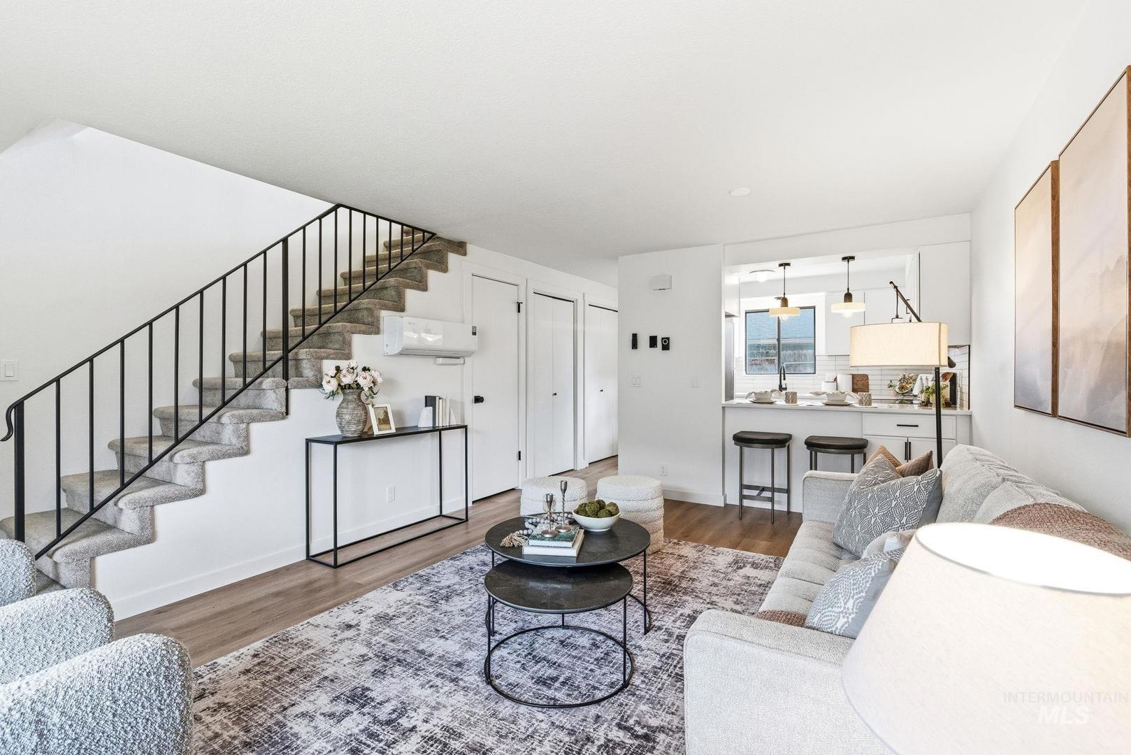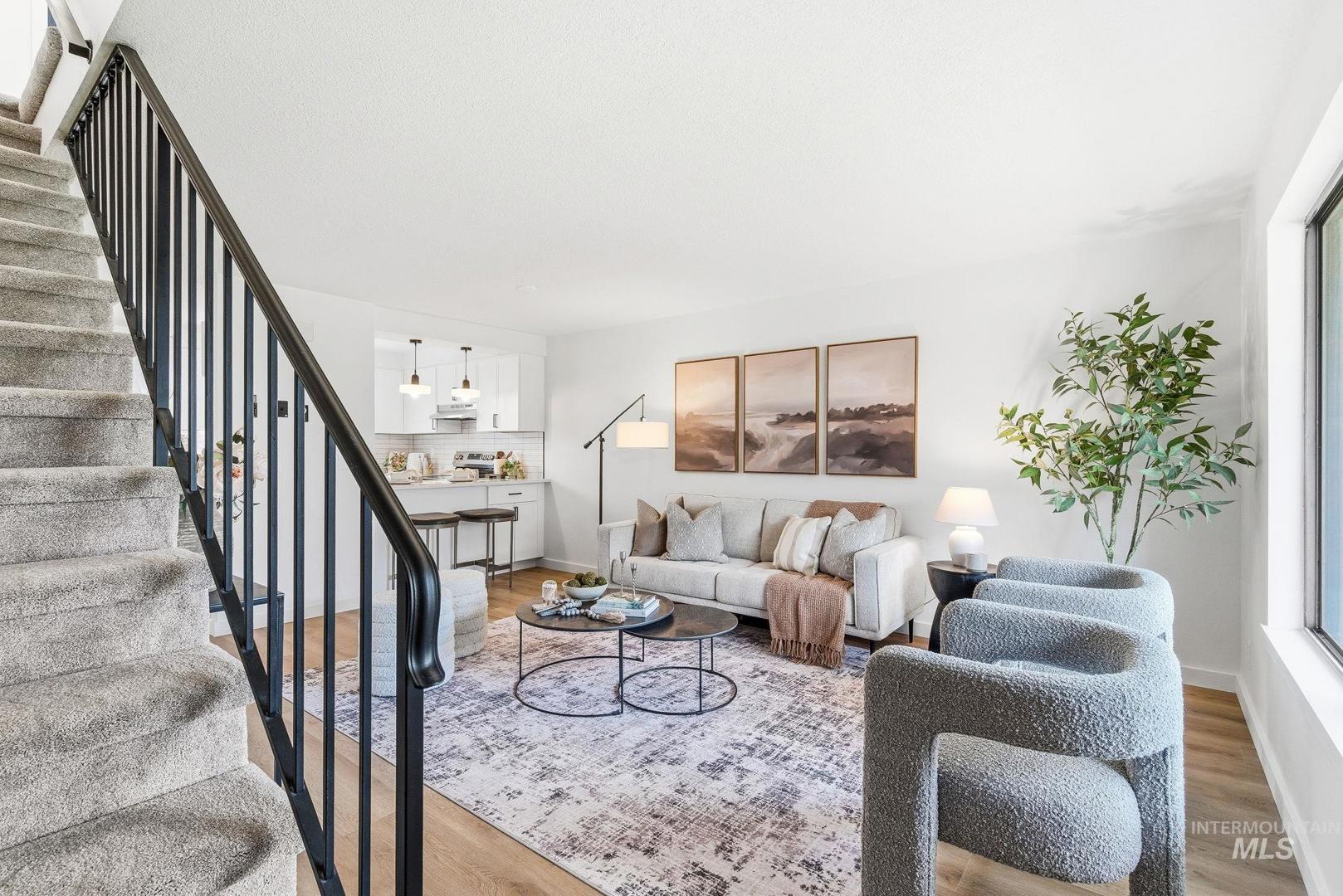 Step inside and feel the difference of a thoughtfully renovated home where every detail has been refreshed. The main level features a generous living room and a fully remodeled kitchen with quartz countertops, full tile backsplash, soft close cabinetry, new appliances, a pantry, and a dedicated laundry area with matching soft close storage. New LVP flooring flows throughout the main level, paired with fresh interior paint and a deep walk in storage closet tucked neatly under the stairs. Upstairs offers two spacious bedrooms with oversized closets, a fully renovated bathroom, new carpet, and a convenient hall closet. Comfort and efficiency are enhanced by a new HVAC mini split system, while new siding and fresh exterior paint add lasting value. Step outside to a custom built back deck, perfect for relaxing or entertaining. A two car carport & separate storage unit add everyday functionality. The HOA provides peace of mind by maintaining all public common areas, fencing, and exterior maintenance including roofing and siding on all units. Conveniently located by Target and the Boise Towne Square Mall within walking distance to shopping, dining, entertainment, and less than a five minute drive to freeway access. With no rental restrictions, this is an excellent opportunity for investors or owners seeking flexibility.