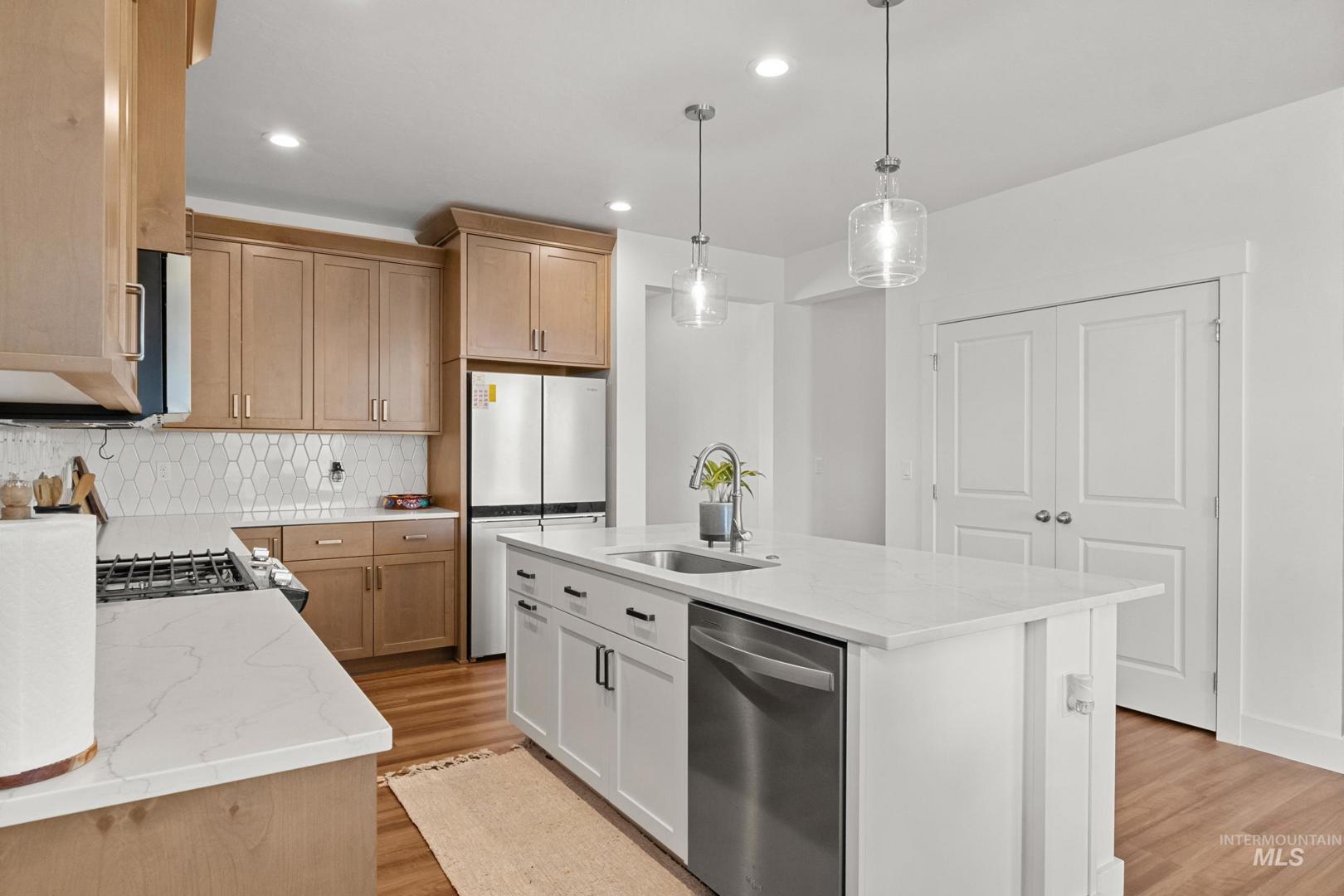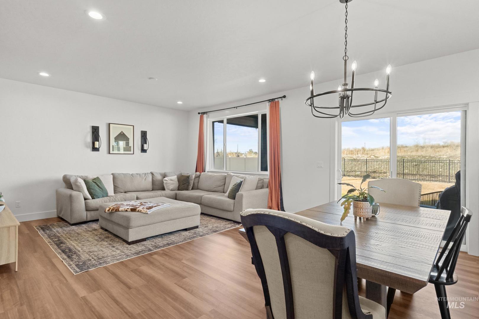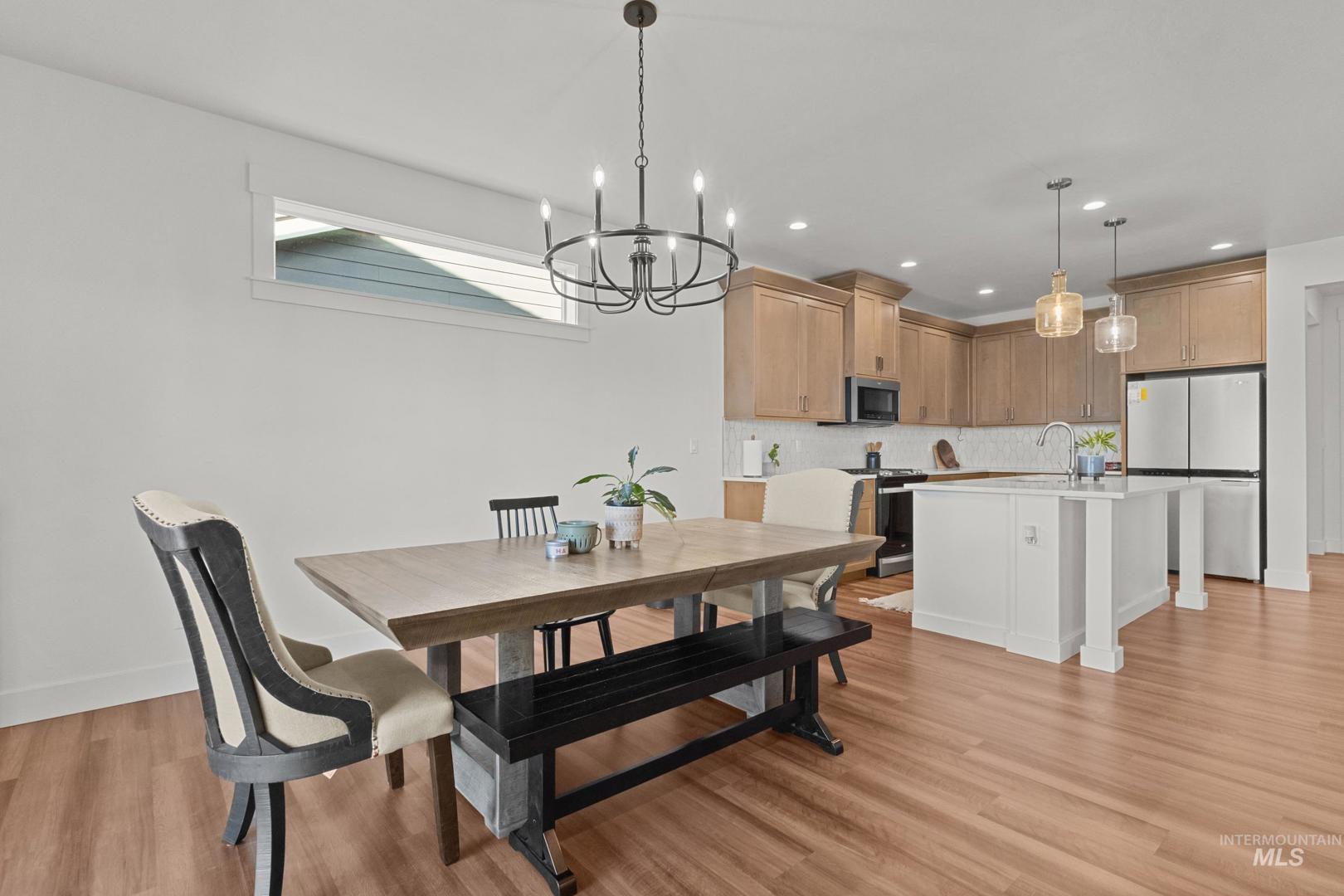 Welcome to this beautifully maintained, nearly new single-story home in desirable Heirloom Ridge! Built in 2023, this well-appointed residence offers 3 bedrooms, 2 bathrooms, plus an office and 1,648 sq ft of thoughtfully designed living space on a 6,795 sq ft lot. Step inside to an open-concept floor plan with abundant natural light flowing through the living room, kitchen, and dining areas — perfect for everyday living and entertaining. The modern kitchen features a generous island with breakfast bar, sleek quartz countertops, ample cabinetry, and easy access to the covered patio — ideal for indoor-outdoor living. The tranquil primary suite boasts a spa-like bathroom with dual-sink vanity, tile shower, luxurious garden tub, and a spacious walk-in closet. Two additional bedrooms offer comfortable space for family or guests. Enjoy a fully fenced backyard perfect for pets and outdoor gatherings, plus a 2-car attached garage. Located close to Star Middle School and within the acclaimed West Ada School District, this home combines modern comforts with convenience and community appeal. Heirloom Ridge offers a true neighborhood feel with resort-style amenities, including a community pool and clubhouse, pickleball courts, playgrounds, and walking paths throughout.