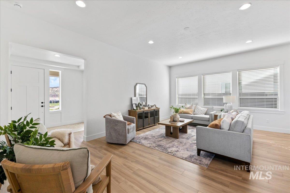The Mint” by Berkeley Building Co, a brand new single-level alley load floor plan home from the 2025 Fall Collection! This 3-bedroom, 2-bath design offers a flexible den, expansive great room, and a large covered patio for effortless indoor-outdoor living. Styled in Berkeley’s West Coast Casual Collection, the home features light, natural tones, upscale finishes, and upgraded appliances included as standard. Enjoy a 3-car garage and premium craftsmanship throughout. Ideally situated in Eagle’s highly anticipated new Valnova community, surrounded by foothill views and connected to nature trails, parks, and nearby Glencara Recreational Village with lake and beach amenities. Perfectly blending comfort, design, and location, this move-in ready home embodies the relaxed yet refined Eagle lifestyle. Come explore where “Life, Done Right” truly begins.