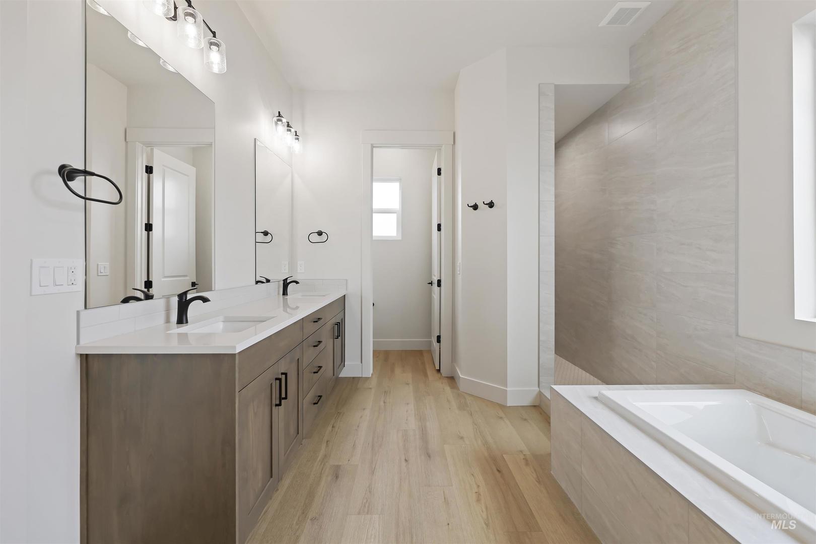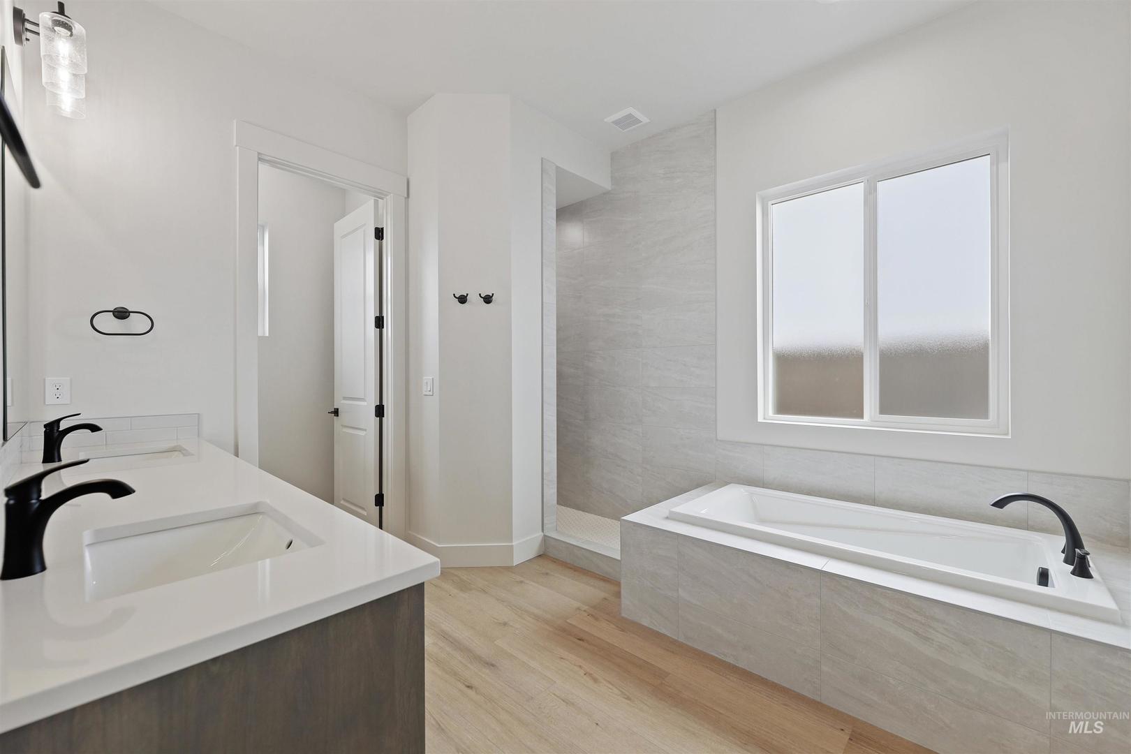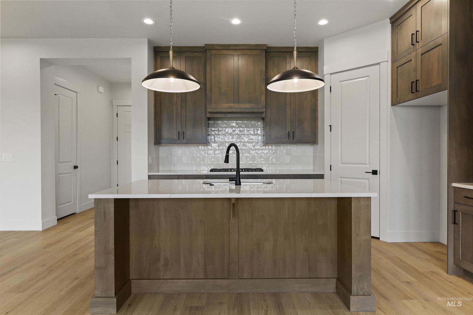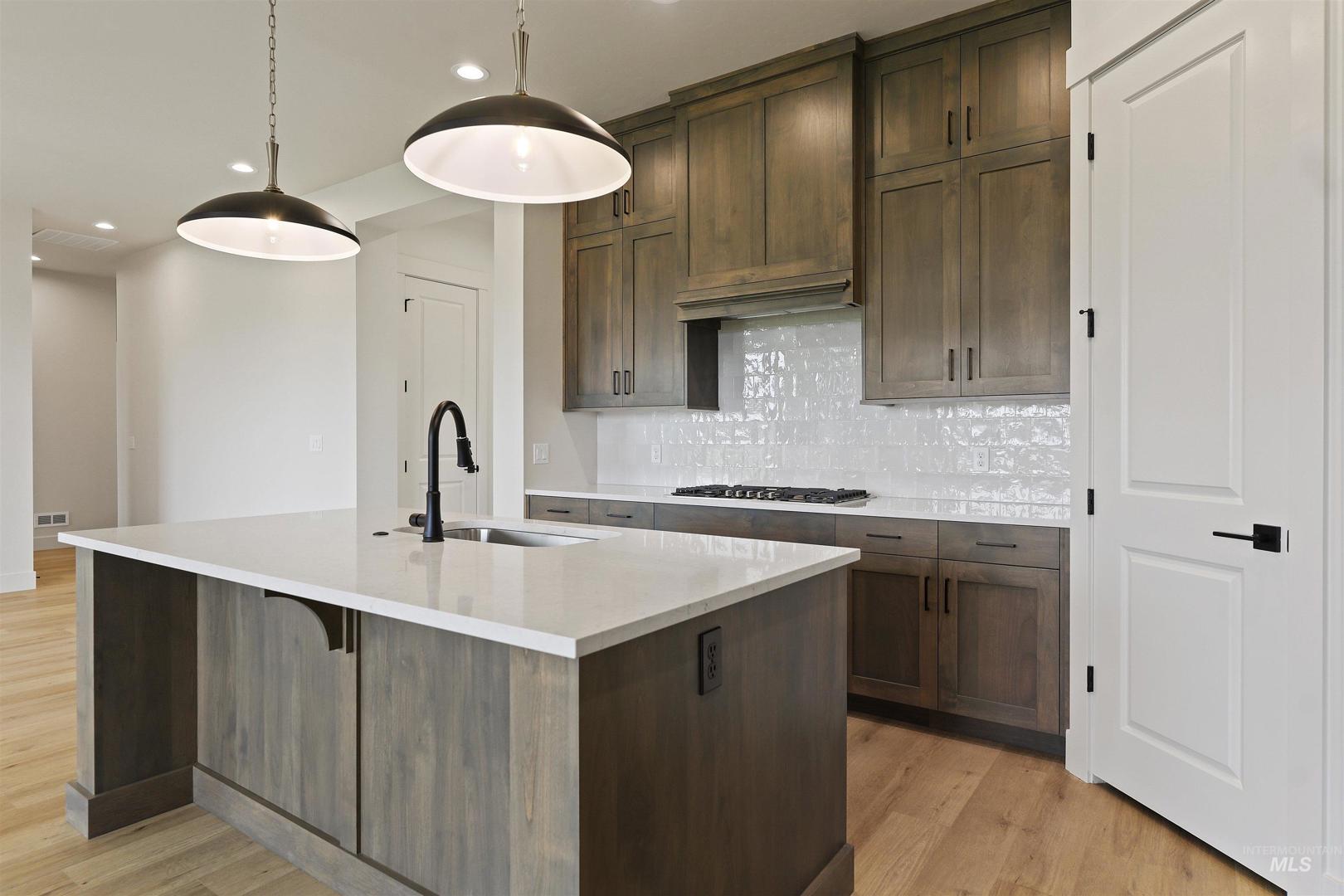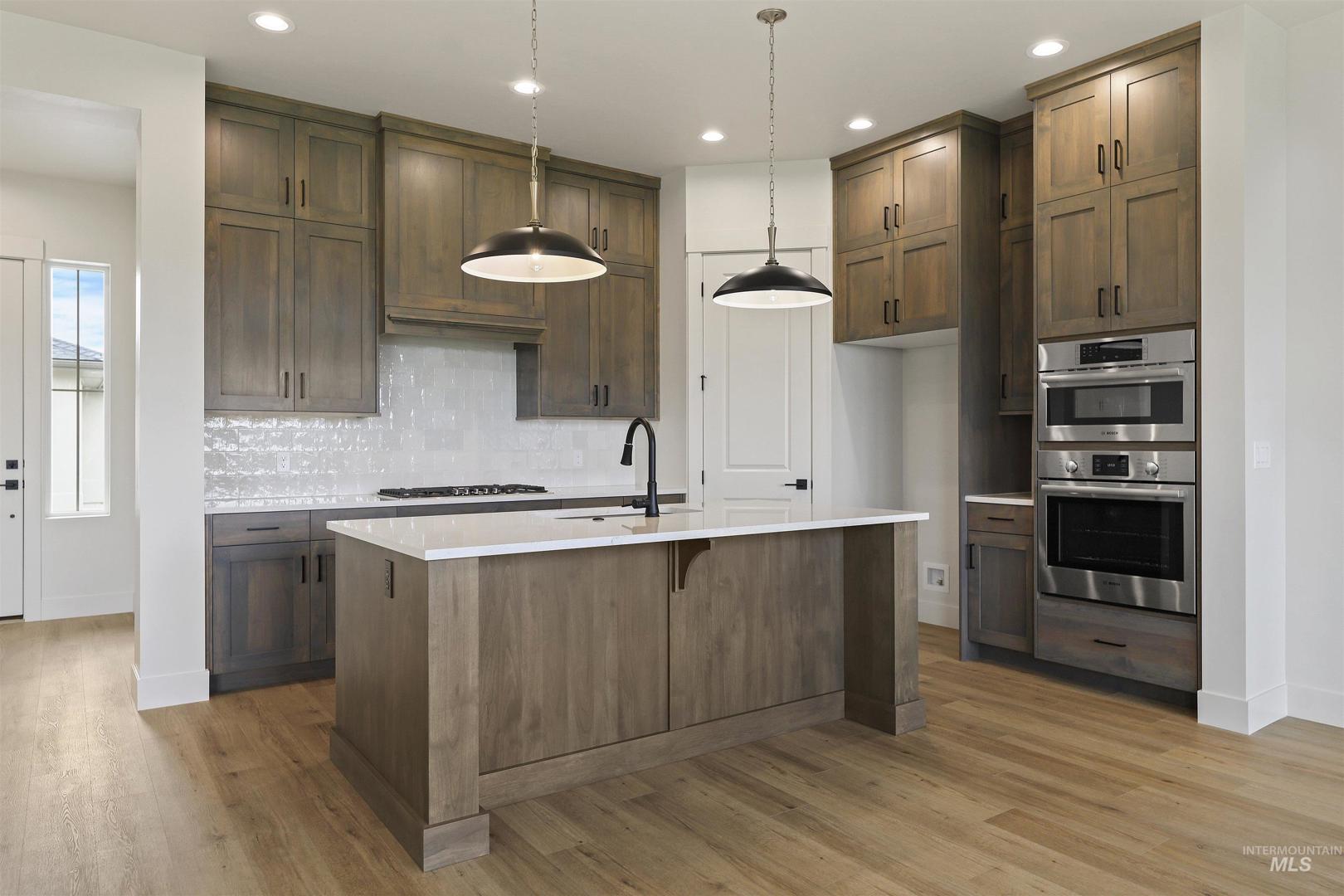Welcome to The Alder at Valor, where modern design meets the ultimate golfer’s paradise. This elegant single-level home overlooks the pristine fairways of the Falcon Crest Golf Course, offering stunning views. With 3 spacious bedrooms, a dedicated office, and 2 designer bathrooms, every detail has been crafted for comfort and sophistication. Enjoy an open-concept layout highlighted by hardwood flooring, soaring ceilings, and a dramatic floor-to-ceiling stone fireplace, perfect for relaxing after a round or hosting friends for dinner. The kitchen impresses with gorgeous stained cabinetry to the ceiling, quartz countertops, and premium Bosch appliances, blending beauty and function seamlessly. The spa-inspired primary suite features a standalone soaking tub, dual vanities, and a fully tiled walk-in shower. Outside, unwind in your private, low-maintenance backyard with turf and sweeping golf course views—ideal for morning coffee or watching the sunset over the greens. Located in Valor’s prestigious gated Medallion Greens community, residents enjoy resort-style amenities including pools, fitness centers, indoor golf simulators, pickleball, tennis, a clubhouse restaurant, and an 18-hole putting course. The Alder at Valor—where every day feels like a day on the course.