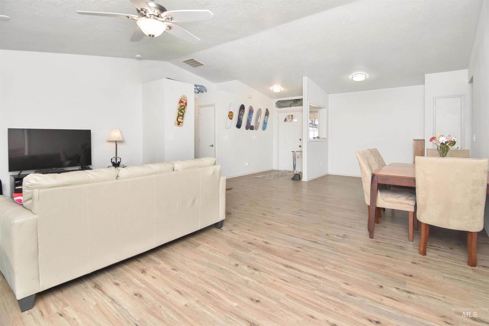 Rare opportunity to assume a VA home loan at just 3.5% interest with a monthly payment of just $1,777 — and you do not have to be a veteran to qualify. This well-maintained 3-bedroom, 2-bath home is tucked away in a quiet cul-de-sac in a desirable neighborhood that`s across the street from a golf course, offering both privacy and convenience just minutes from Mountain Home Air Force Base and the VA Hospital. Inside, you’ll find a spacious living room with a cozy gas fireplace, recently updated flooring throughout, fresh interior paint, upgraded LED lighting, and new hardware that gives the home a modern, refreshed feel. Outside, enjoy owned solar panels, RV parking with no CC&Rs and no HOA — giving you the freedom and flexibility today’s buyers are looking for. A rare combination of unbeatable financing, thoughtful updates, and an ideal location.