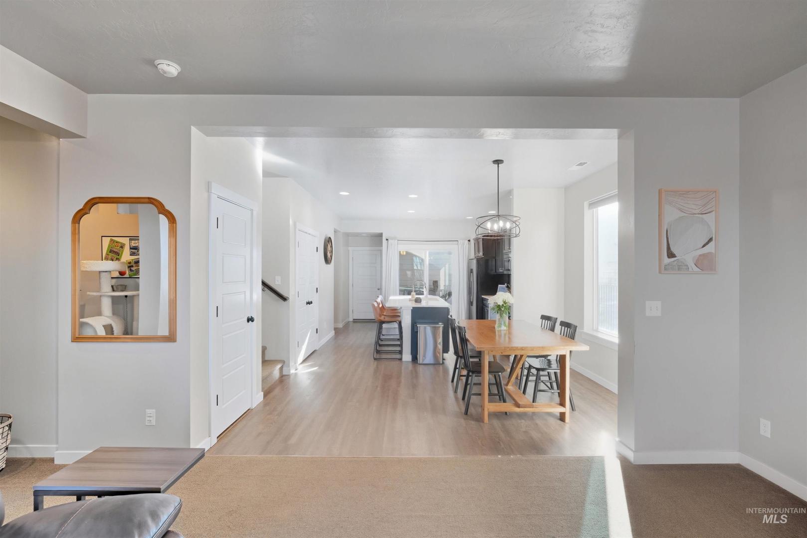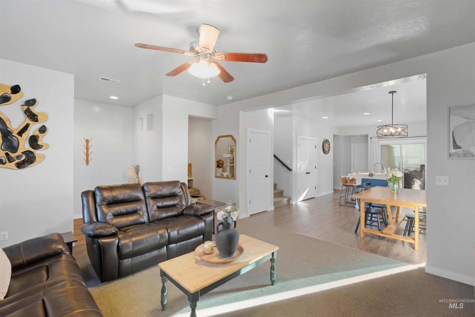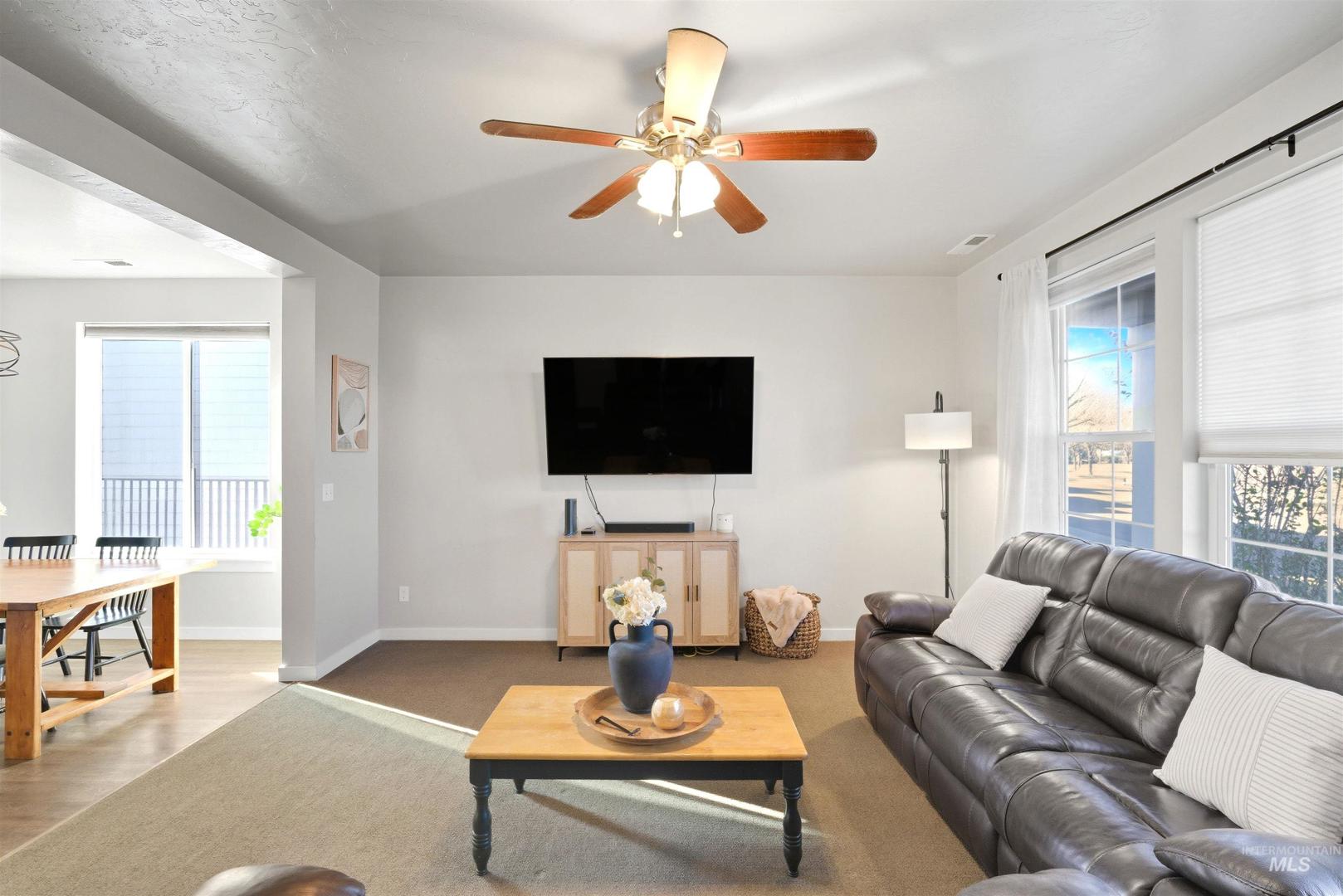 Perfectly positioned in the heart of the Treasure Valley, this beautifully laid-out Meridian home offers the kind of central location that makes everyday life just easier. With quick, convenient access to the freeway, you`re minutes from anywhere in the valley, whether it`s Boise, Nampa, or Eagle making this an ideal home base for busy families and professionals alike. Set on a desirable corner lot with a fully fenced yard and open space directly across the street, you`ll enjoy a rare sense of privacy and breathing room that`s hard to find. The open space views create a serene, more expansive feel the moment you pull up. Inside, the main level is designed for real life. The kitchen features an island perfect for morning coffee, weekend gatherings, or casual family dinners. The spacious family room flows seamlessly for entertaining or relaxing, and a dedicated tech desk area adds a thoughtful touch ideal for working from home or staying organized without sacrificing a whole room. Upstairs, the primary suite is your personal retreat. A dual vanity, built-in shelving, and a tub/shower combo make winding down at the end of the day something to look forward to. Two additional bedrooms offer flexibility for family, guests, or a dedicated office space. Back on the main level, you`ll find one of the most practical, and most loved, features of this home: a generously sized laundry room.