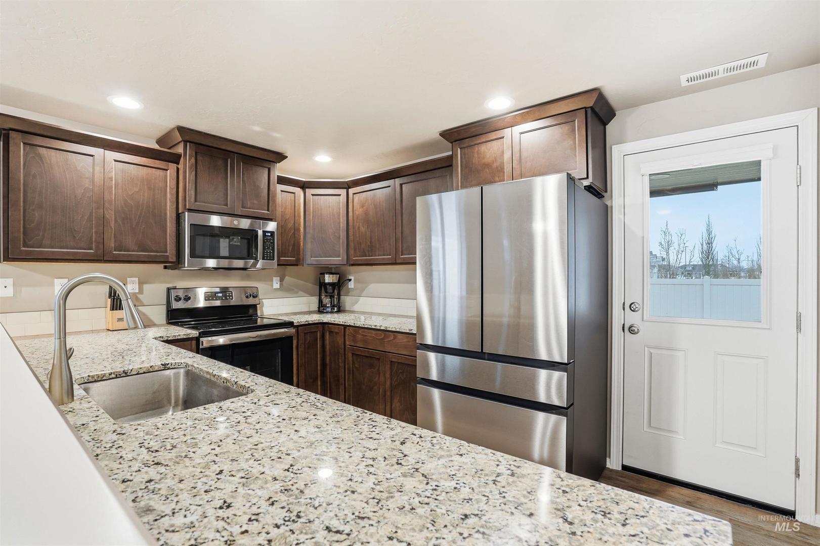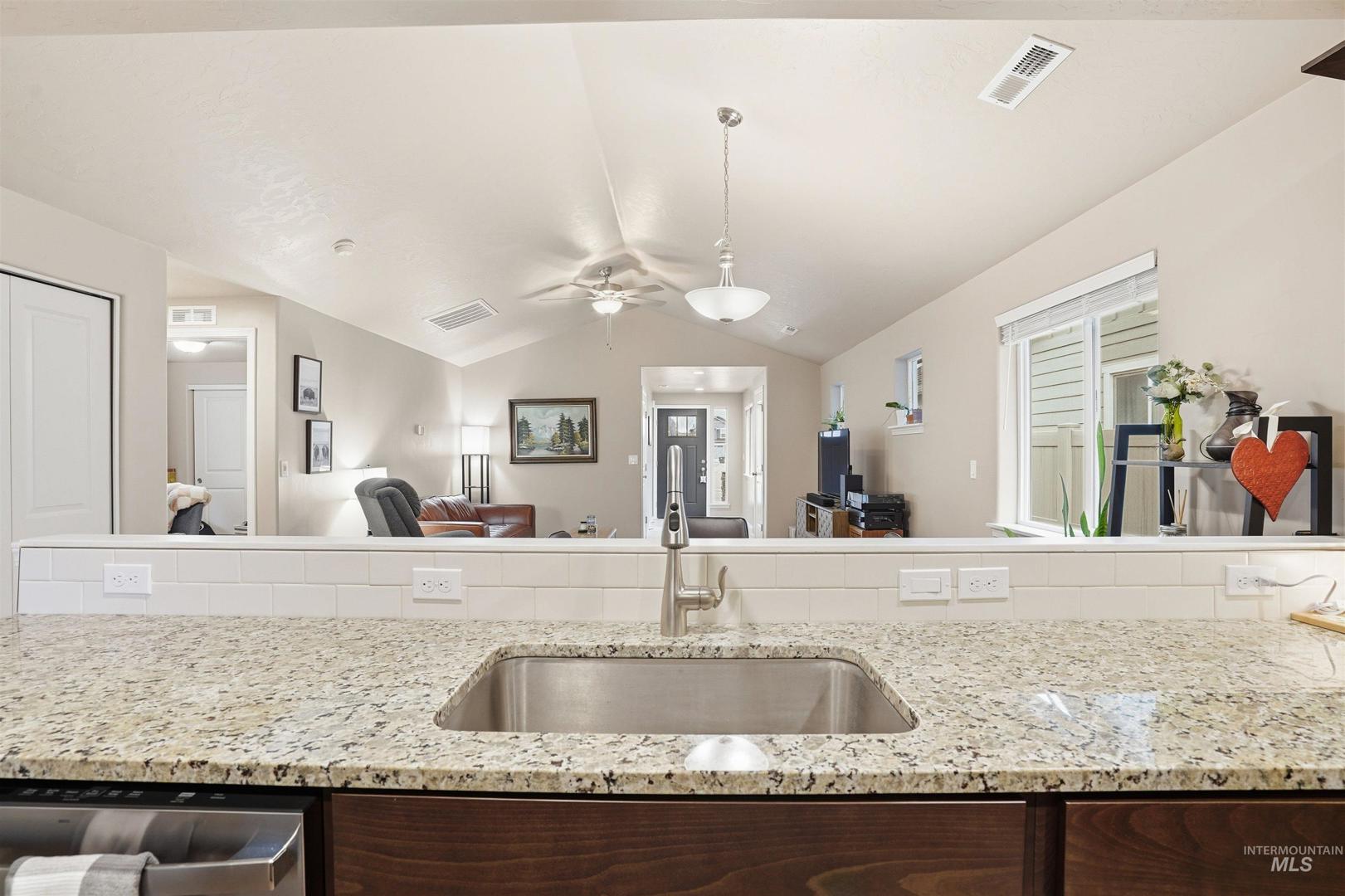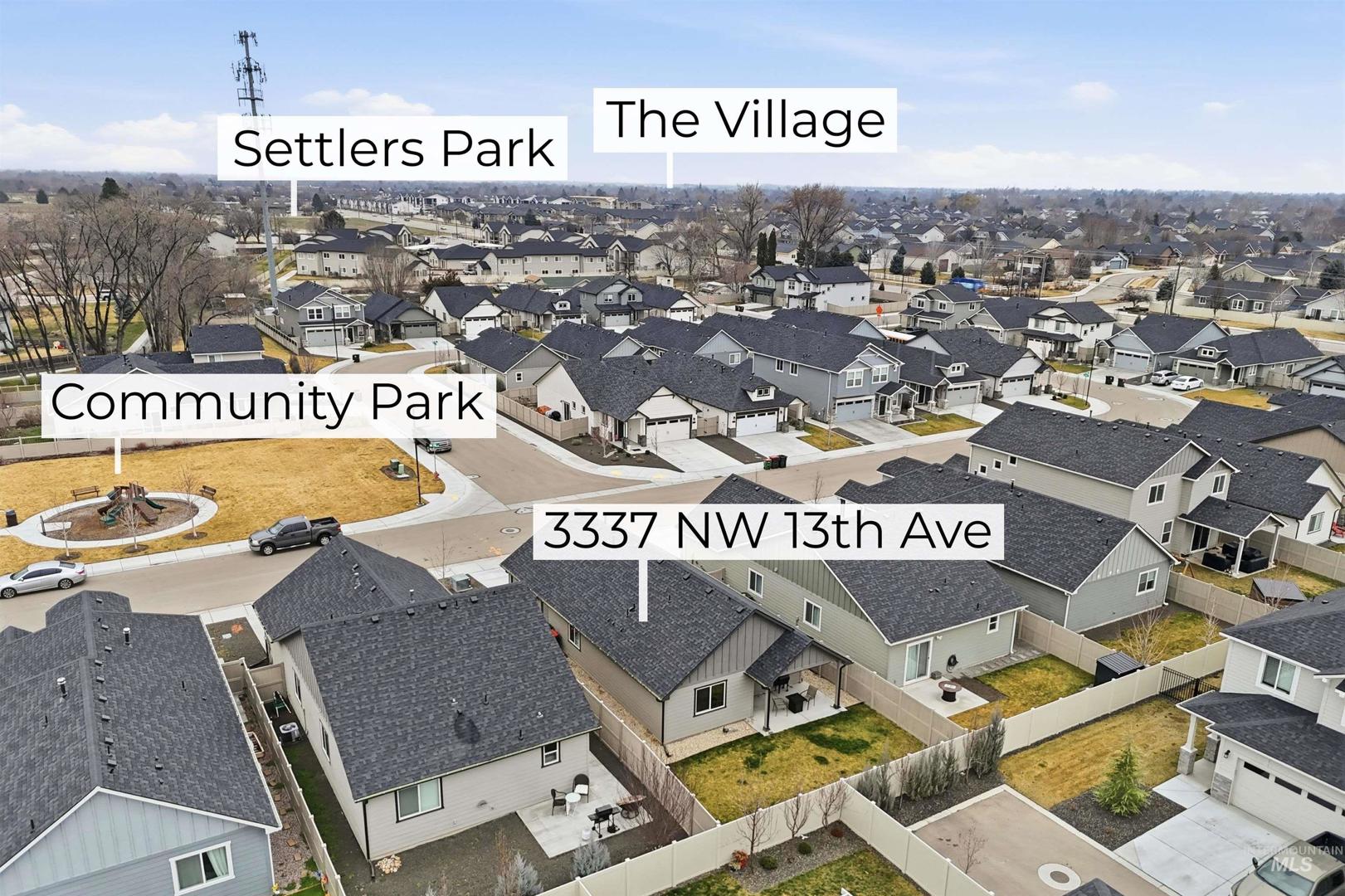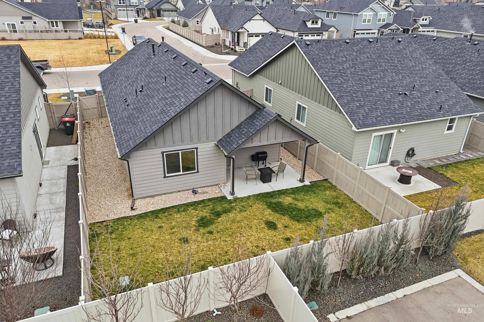 This charming 2 bedroom, 2 bath home is ideally located in the heart of Meridian, offering both comfort and convenience. Built just over two years ago, the Arlington plan by Hayden Homes features an open concept design with vaulted ceilings that create a bright and welcoming atmosphere. Thoughtful upgrades include tinted windows for added privacy, spacious granite countertops, durable Mohawk vinyl flooring, and plush carpet throughout. The home is also equipped with a gas hookup for the oven and a water softener rough-in for future ease. Step outside to a large covered patio with a built-in shade, perfect for relaxing on warm summer days. A low maintenance yard designed for easy living. The home sits directly across from a small community playground and is just 1/2 mile from Settlers Park. The Village in Meridian is less than five miles away, providing convenient access to shopping, dining, and entertainment. With such an unbeatable location, this home truly checks all the boxes. Sometimes GPS does not take you to the correct address. Home is located off Ustick Rd between Settlers Park (Meridian Rd) and N Linder Rd.