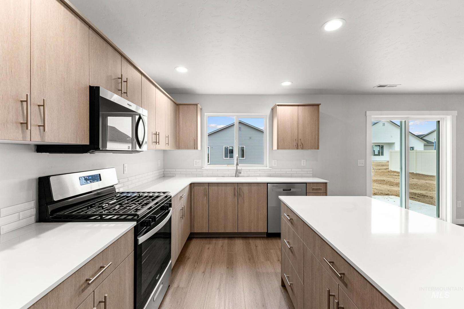 Get Lucky with 3.49% – promotional rate available! Ask a Sales Specialist for details. Embrace the comforts of a brand new home in Nampa, Idaho. The Lennox 2332 invites you into a beautifully balanced two-story design where comfort and style come together effortlessly, offering an upstairs retreat with the primary suite, three additional bedrooms, and a bright loft that feels like a private escape at the end of the day. The main level opens into a spacious living, dining, and kitchen area that flows seamlessly, complemented by a generous flex room perfect for an office, library, or creative space. The kitchen boasts upgraded finishes, including stainless steel appliances, a gas range, and stylish solid surface countertops. Easy access to the patio enhances indoor-outdoor enjoyment, creating the ideal setting for relaxing or entertaining. A thoughtfully designed laundry area adds even more convenience, while modern finishes throughout bring a refined touch to every corner. With its intentional layout and inviting atmosphere, the Lennox 2332 delivers a home that feels both sophisticated and effortlessly livable. Potential RV parking available. Photos are of the actual home!